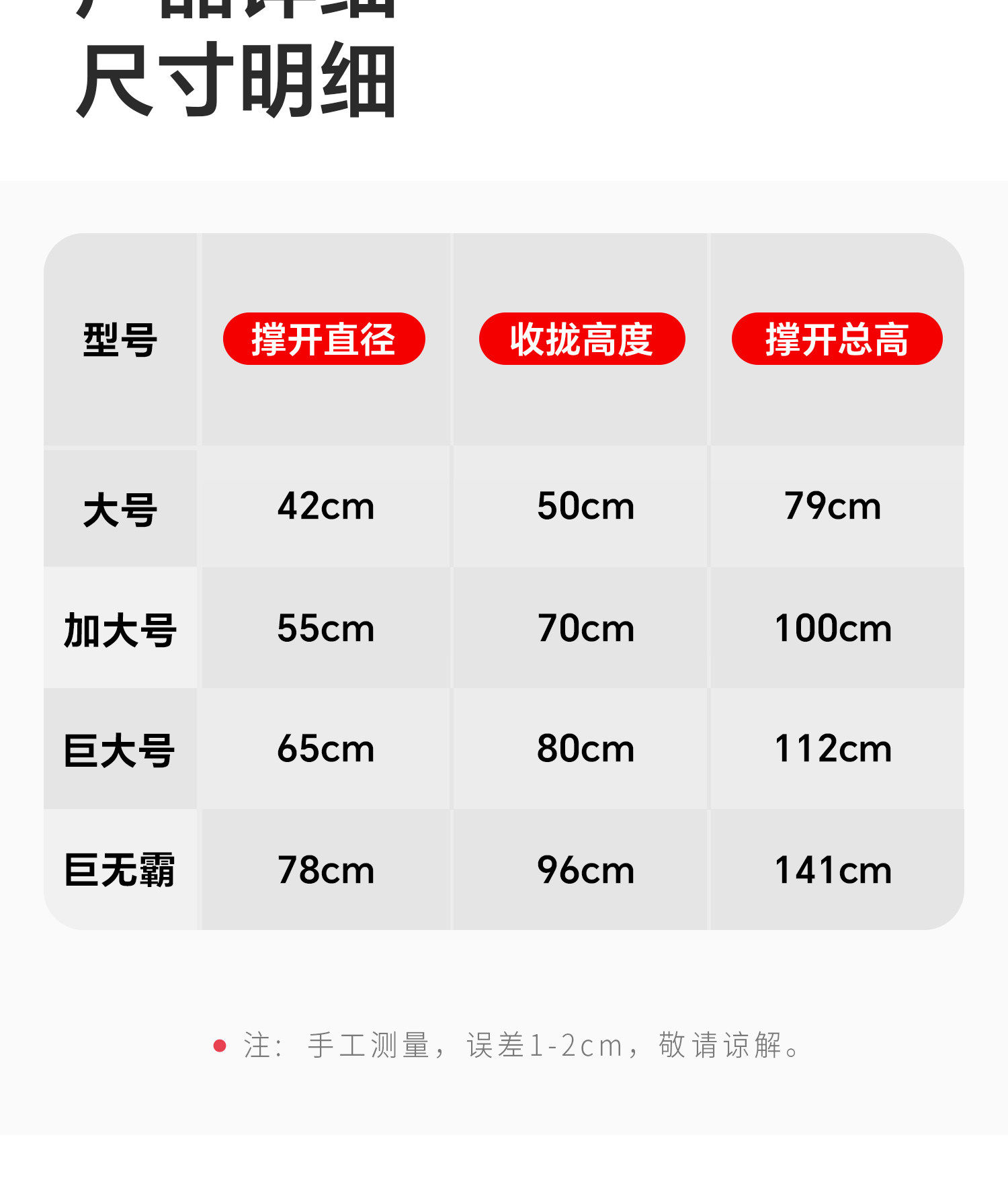 Size (cm) 42 44 46 48 50