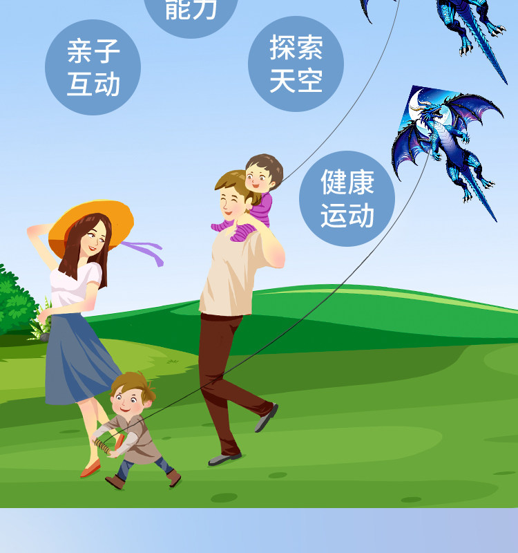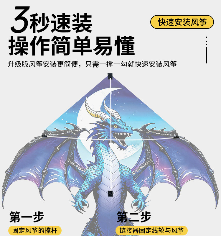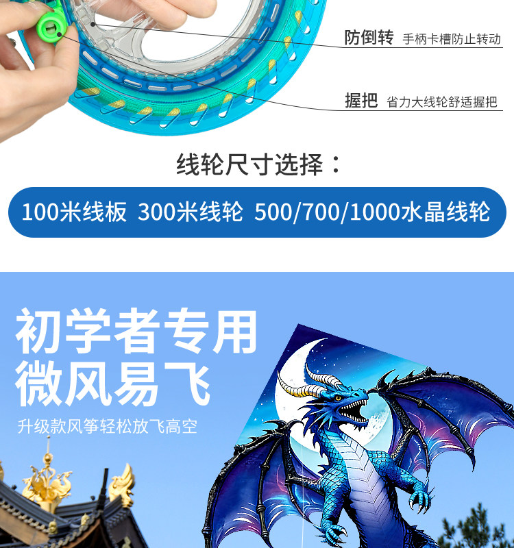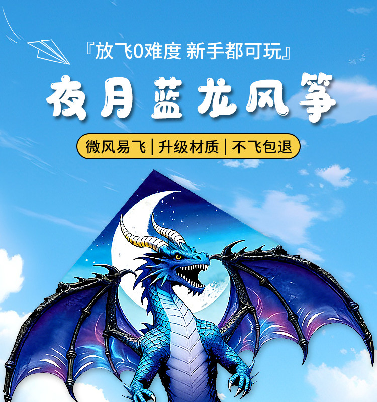 Night Moon Blue Dragon Kite 2026 New Cartoon Style Children's Kite, Easy to Fly in Breeze, High-End Outdoor Weifang Kite for Children