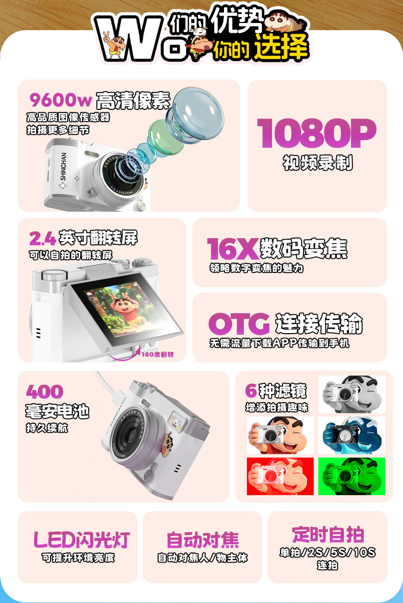 Echtes Crayon Shin-chan CCD-Digitalkamera-Geburtstagsgeschenk für Mädchen zum Verschicken an Freundin, Studentenparty, beste Freundin, Valentinstag