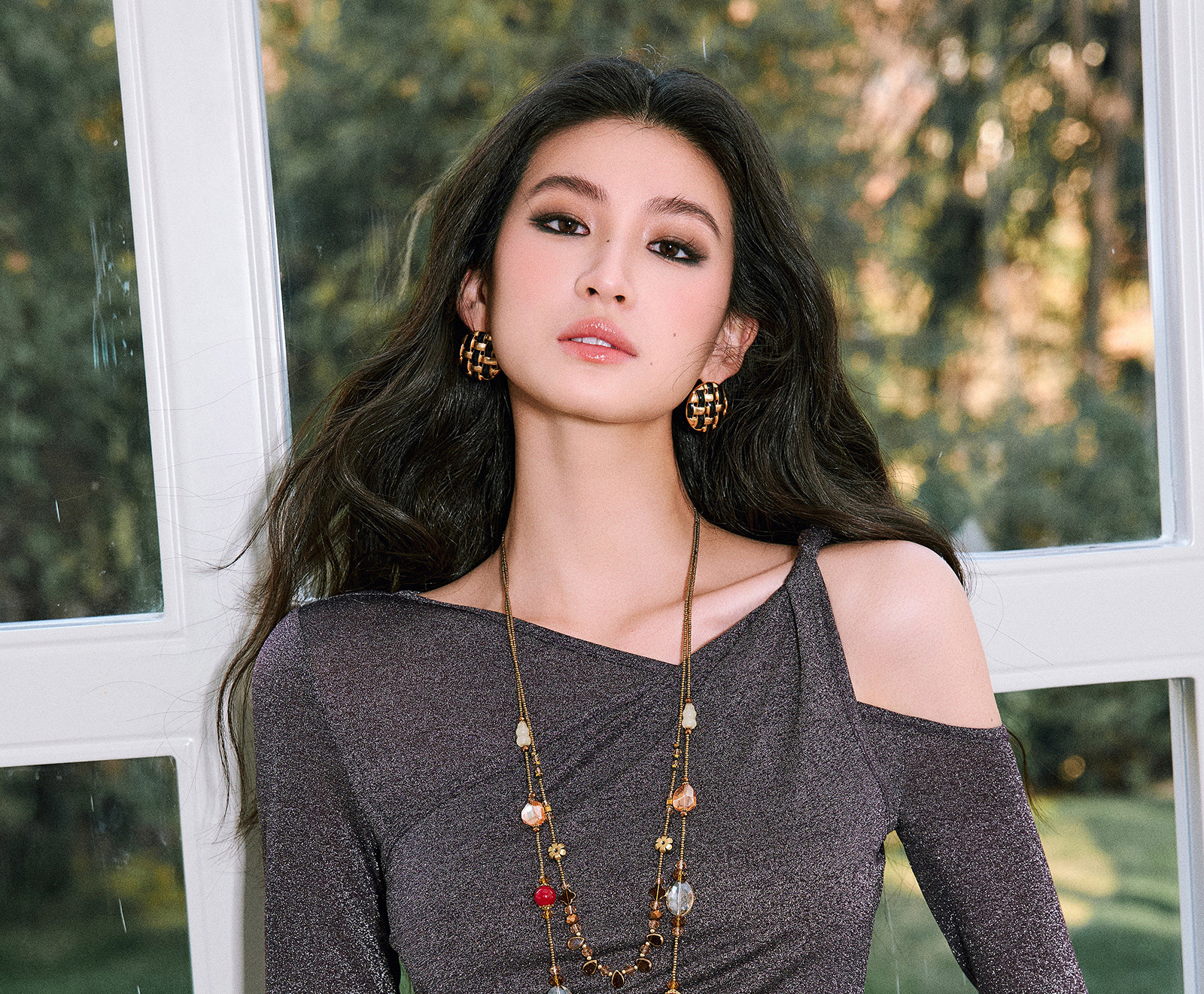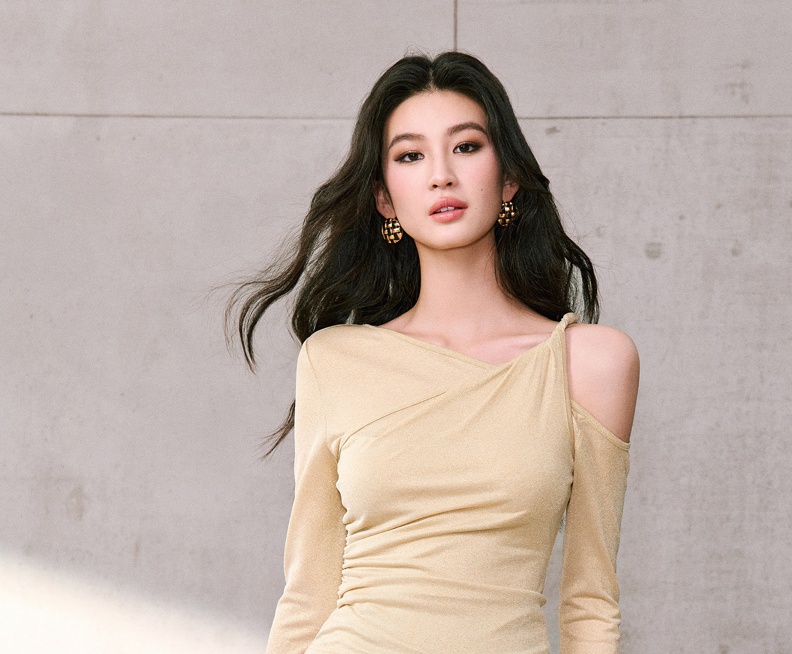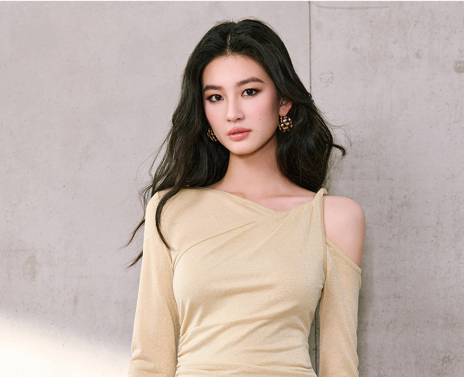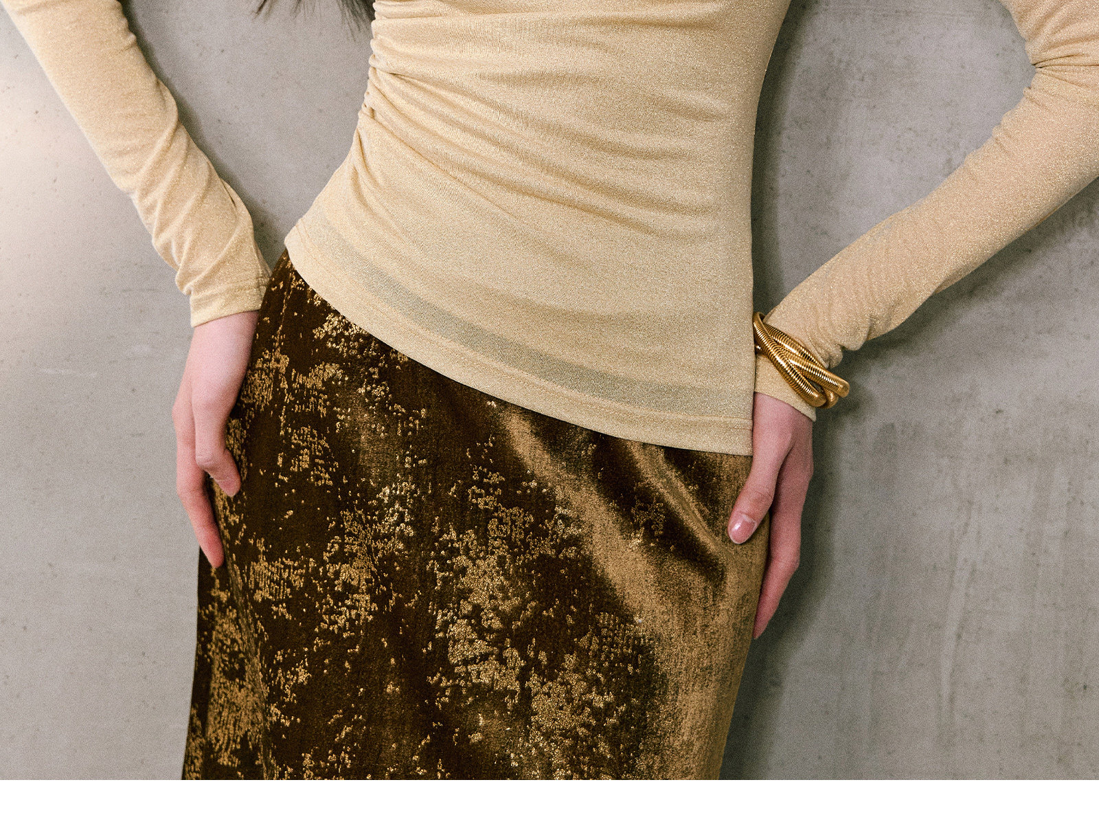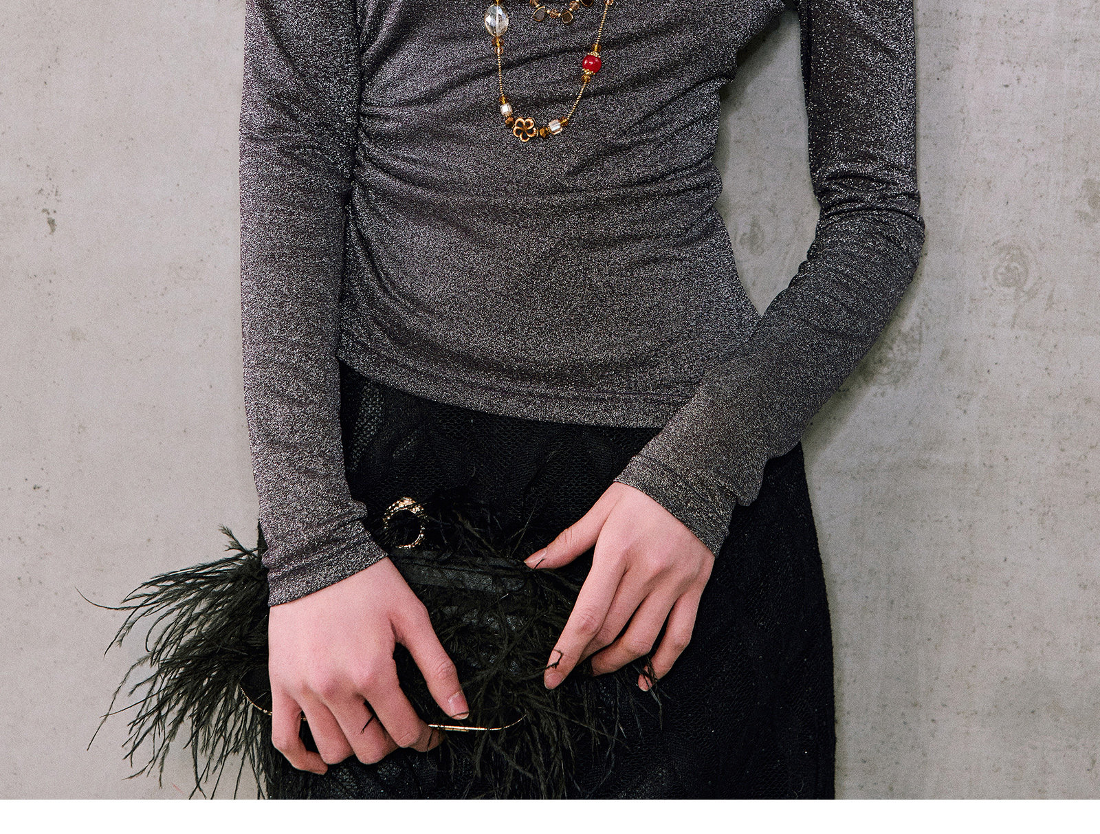 Wangxo[01/20 20:00Pm New Arrival 5% off]Fake Two-Piece Twisted Asymmetrical Shoulder Shiny Knit Top