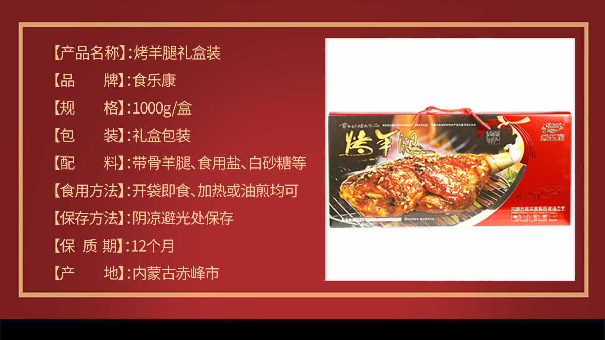 Shilekang Roasted Lamb Leg 1kg Gift Box Inner Mongolia Specialty Cooked Food New Year Spring Festival Gift Lamb
