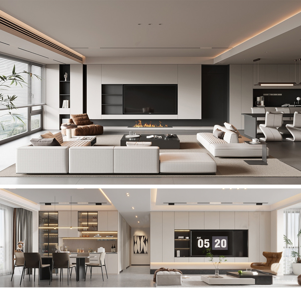 2026 modelo 3d minimalista moderno decoración del hogar diseño de interiores sala de estar comedor dormitorio cocina biblioteca modelo 3dmax