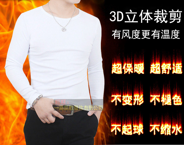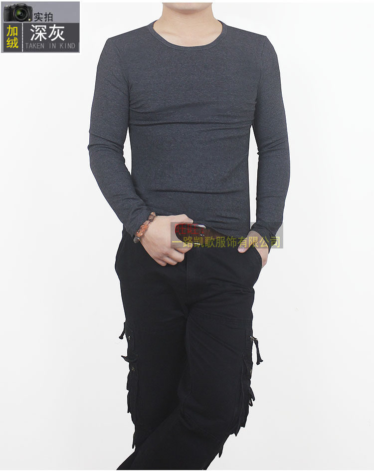 冬季男装大码长袖t恤加绒加厚纯棉男士打底衫贴身内衣保暖体恤潮