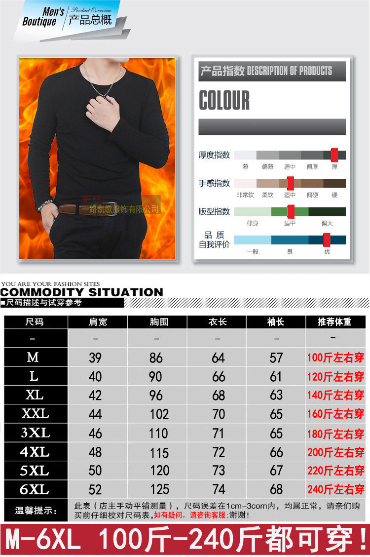 尺码 M (100斤左右穿),L (120斤左右穿),XL (140斤左右穿),2XL(160斤左右穿),3XL(180斤左右穿),4XL(200斤左右穿),5XL(220斤左右穿),6XL(240斤左右穿)
