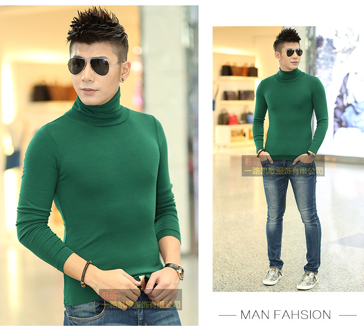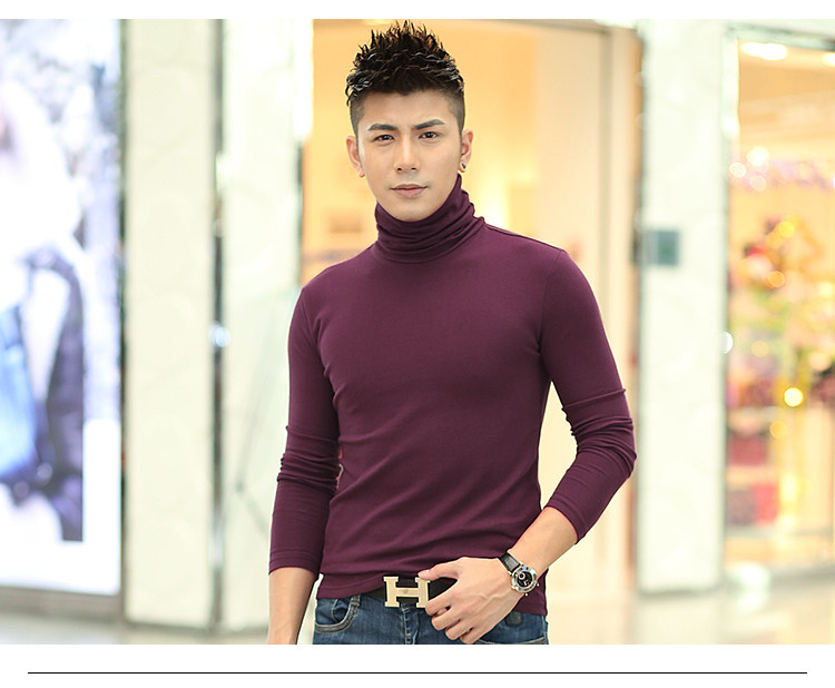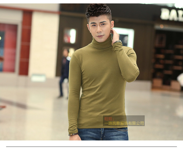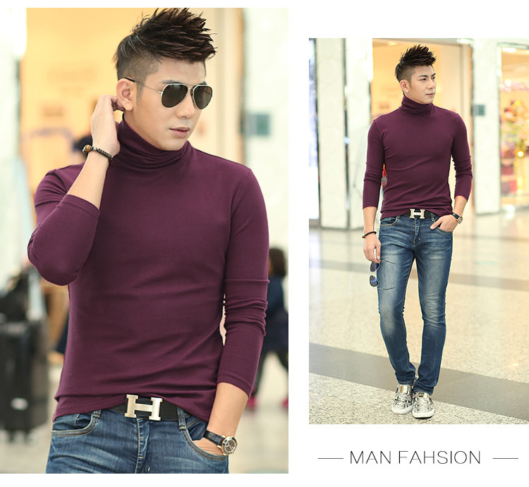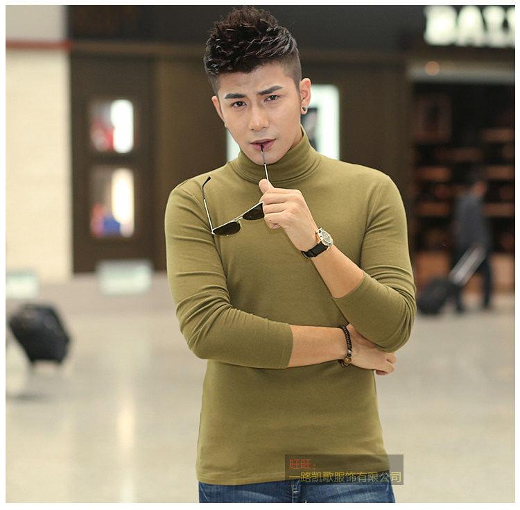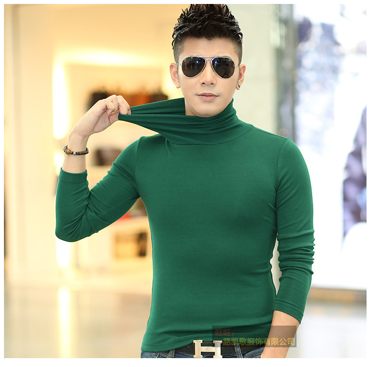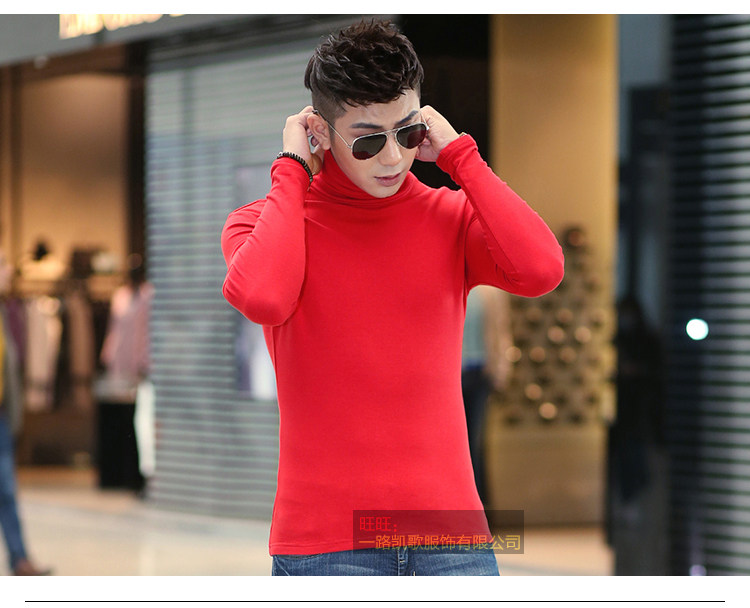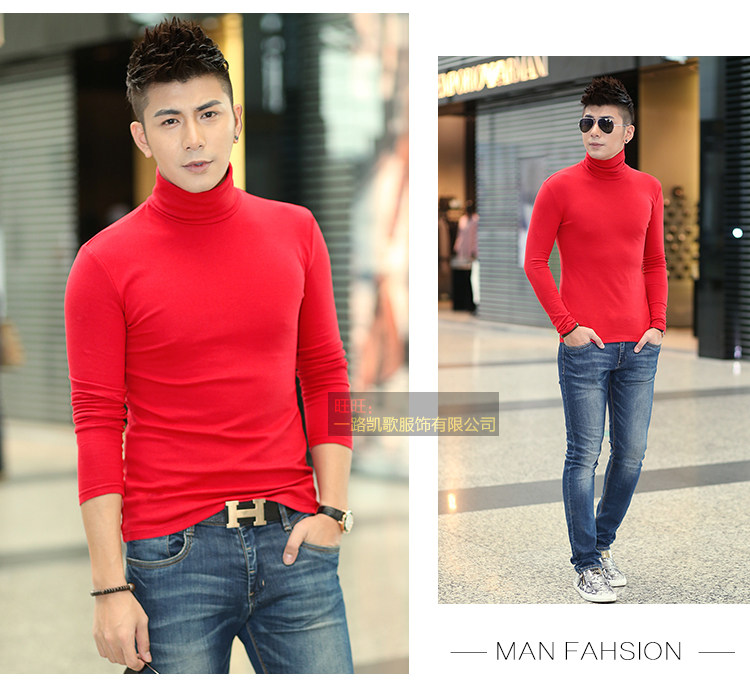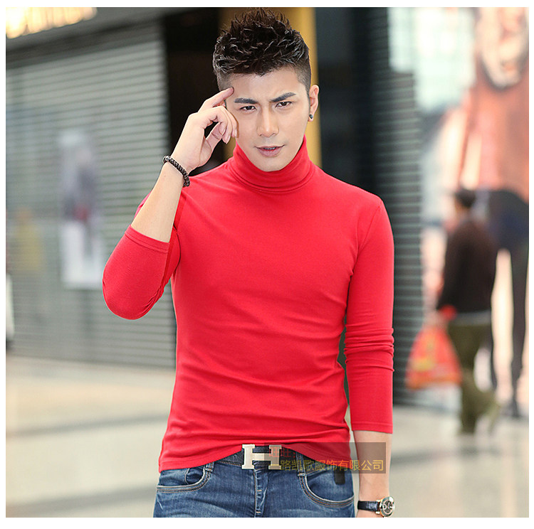 Original autumn Korean style men's bright red turtleneck long-sleeved T-shirt trendy slim casual top bottoming shirt T-shirt