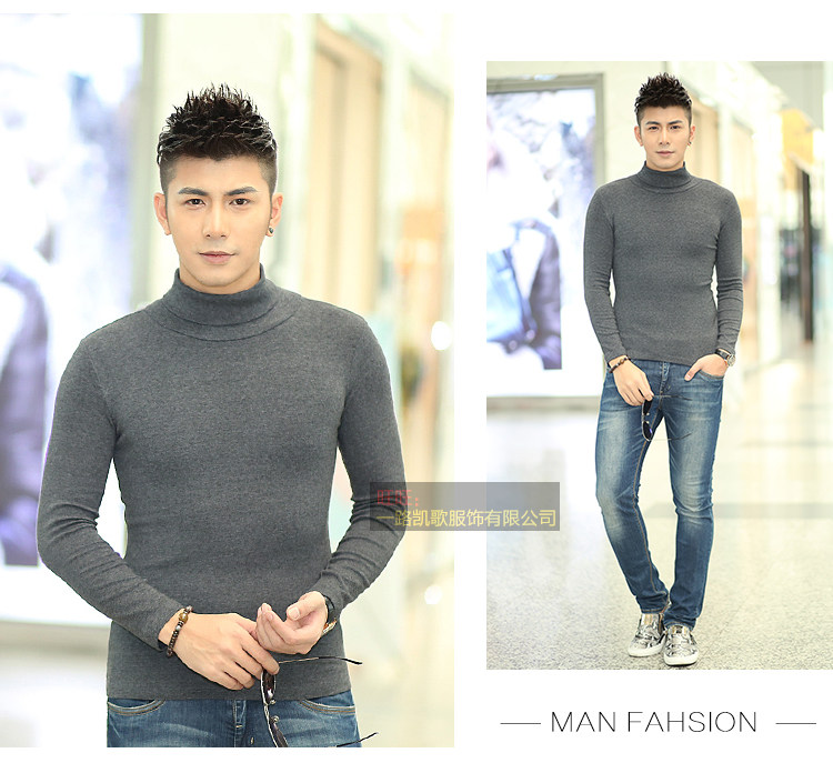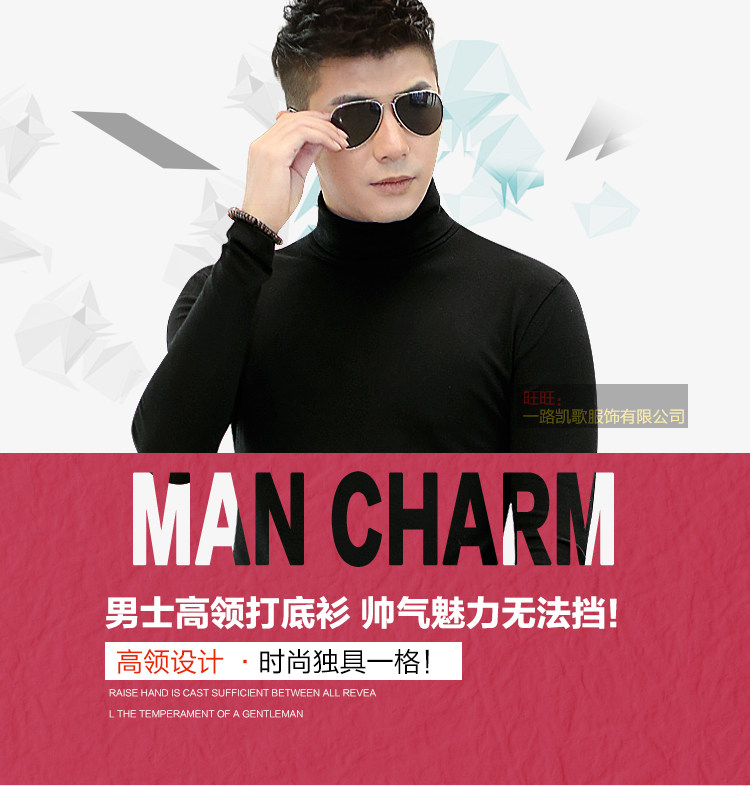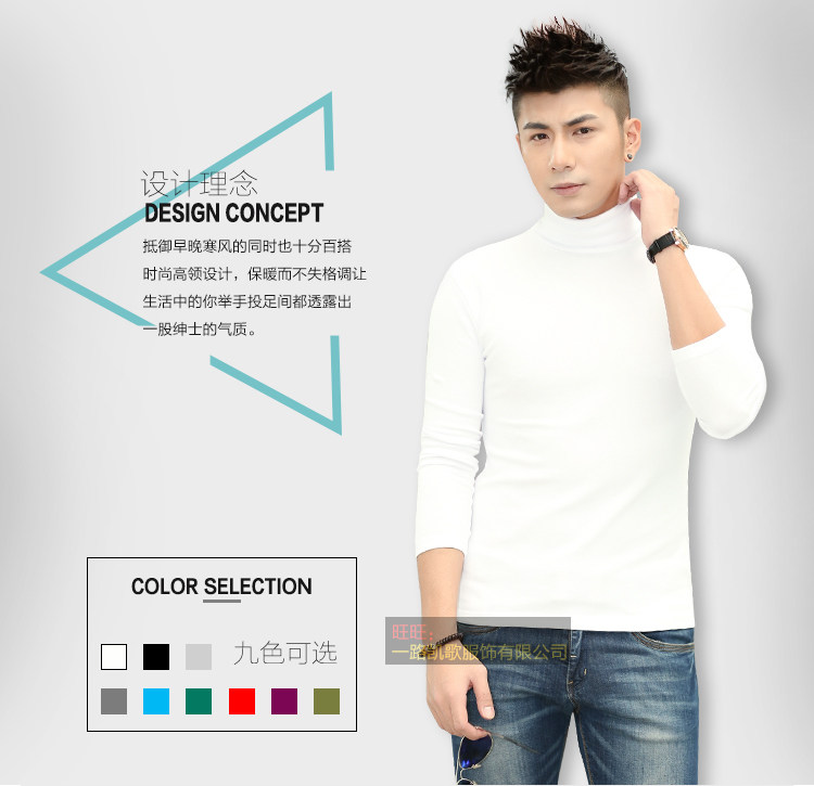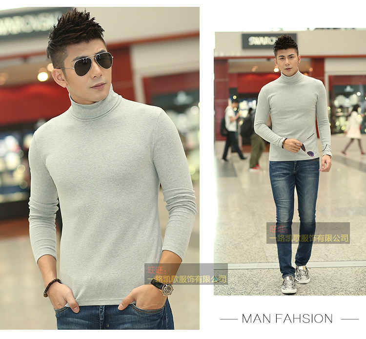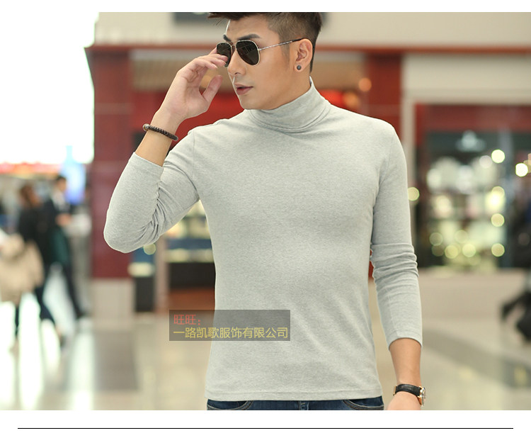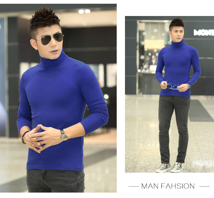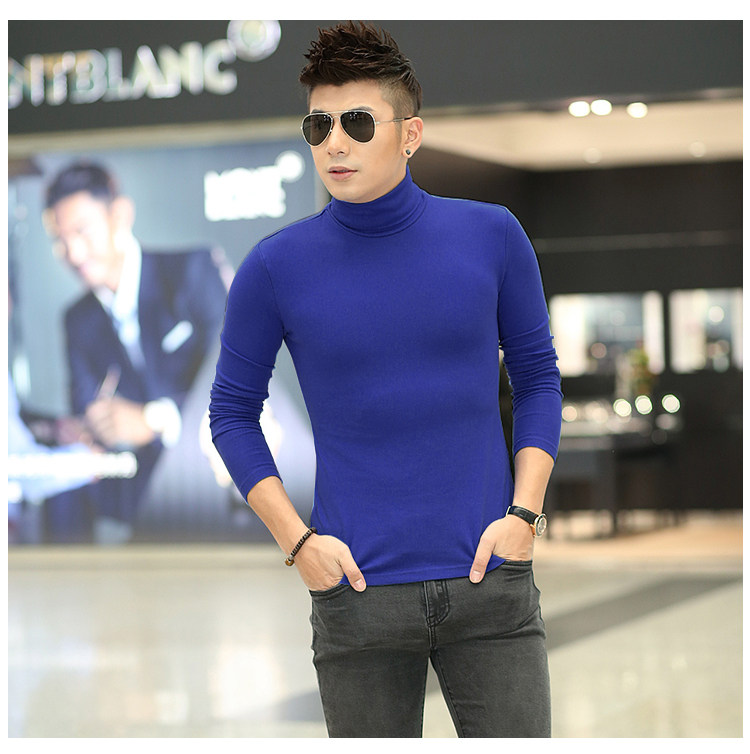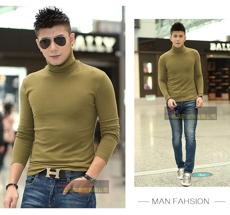 Original autumn Korean style men's bright red turtleneck long-sleeved T-shirt trendy slim casual top bottoming shirt T-shirt