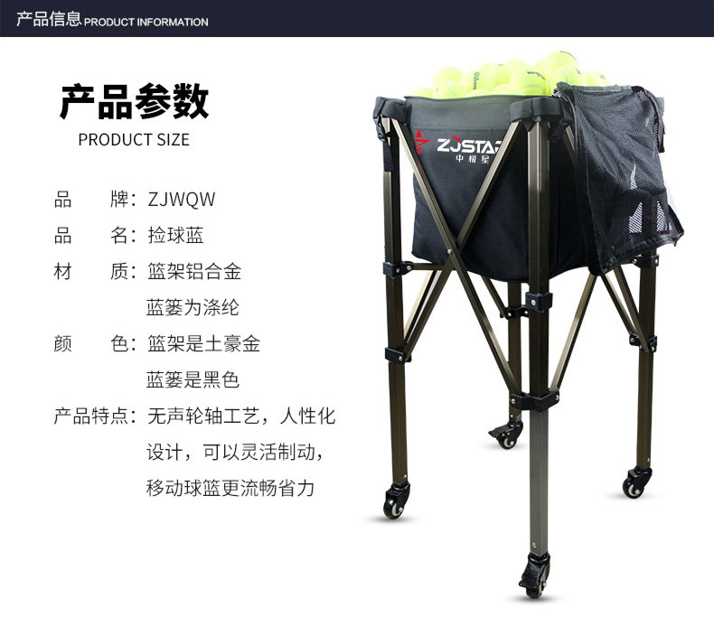 中极星网球捡球神器网球车框捡球筐推车拾球器篮子拾教练车收纳筐