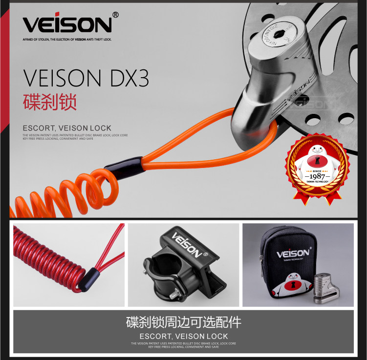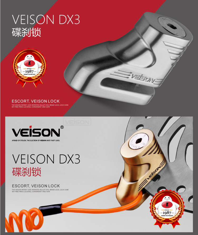 VEISON/威臣 碟刹锁摩托车山地车自行车锁摩托车锁电动车电瓶车锁