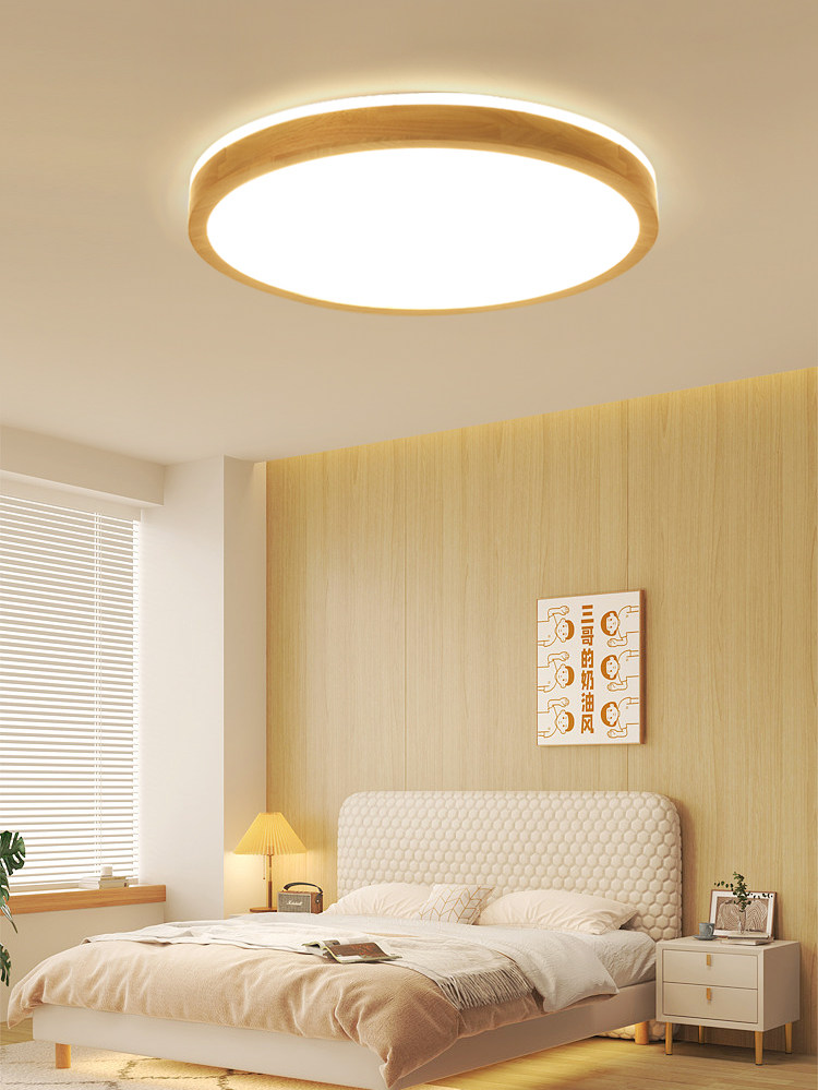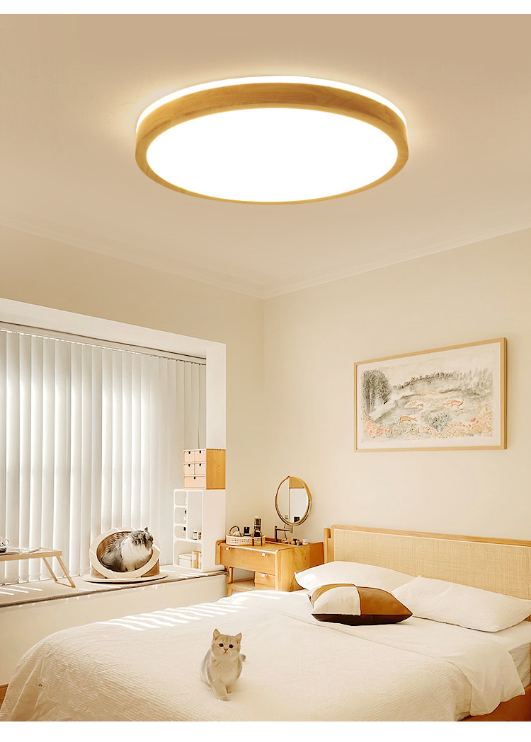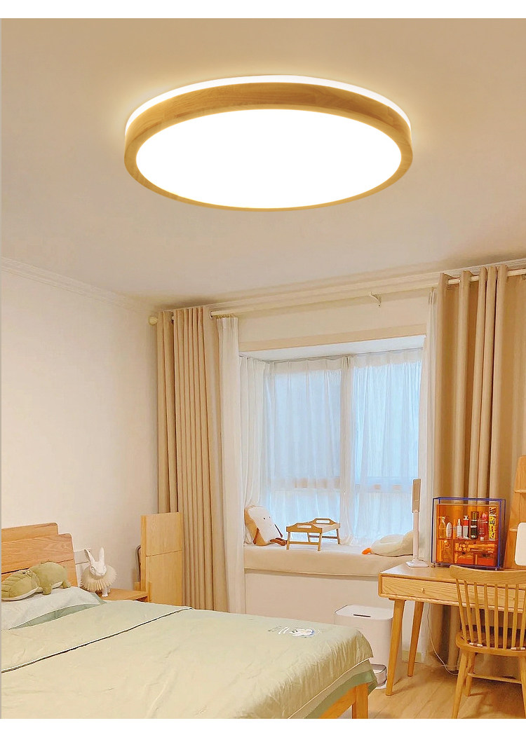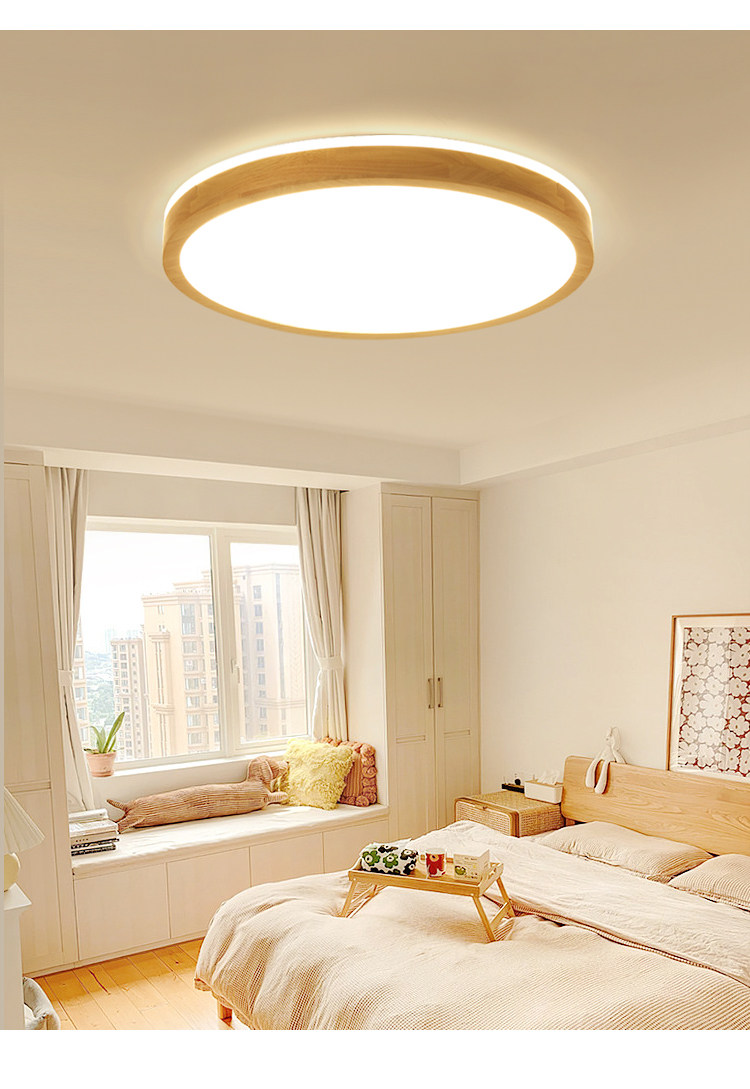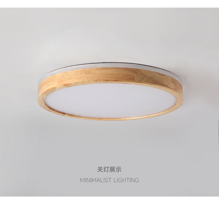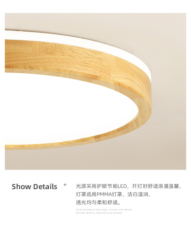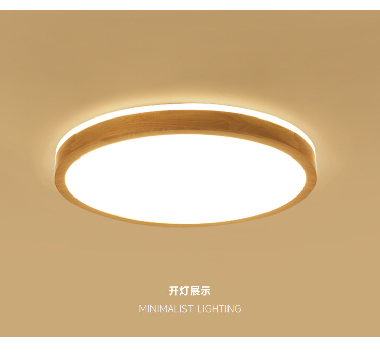 原木风卧室灯led吸顶灯木质圆形现代简约房间阳台日式灯实木灯具