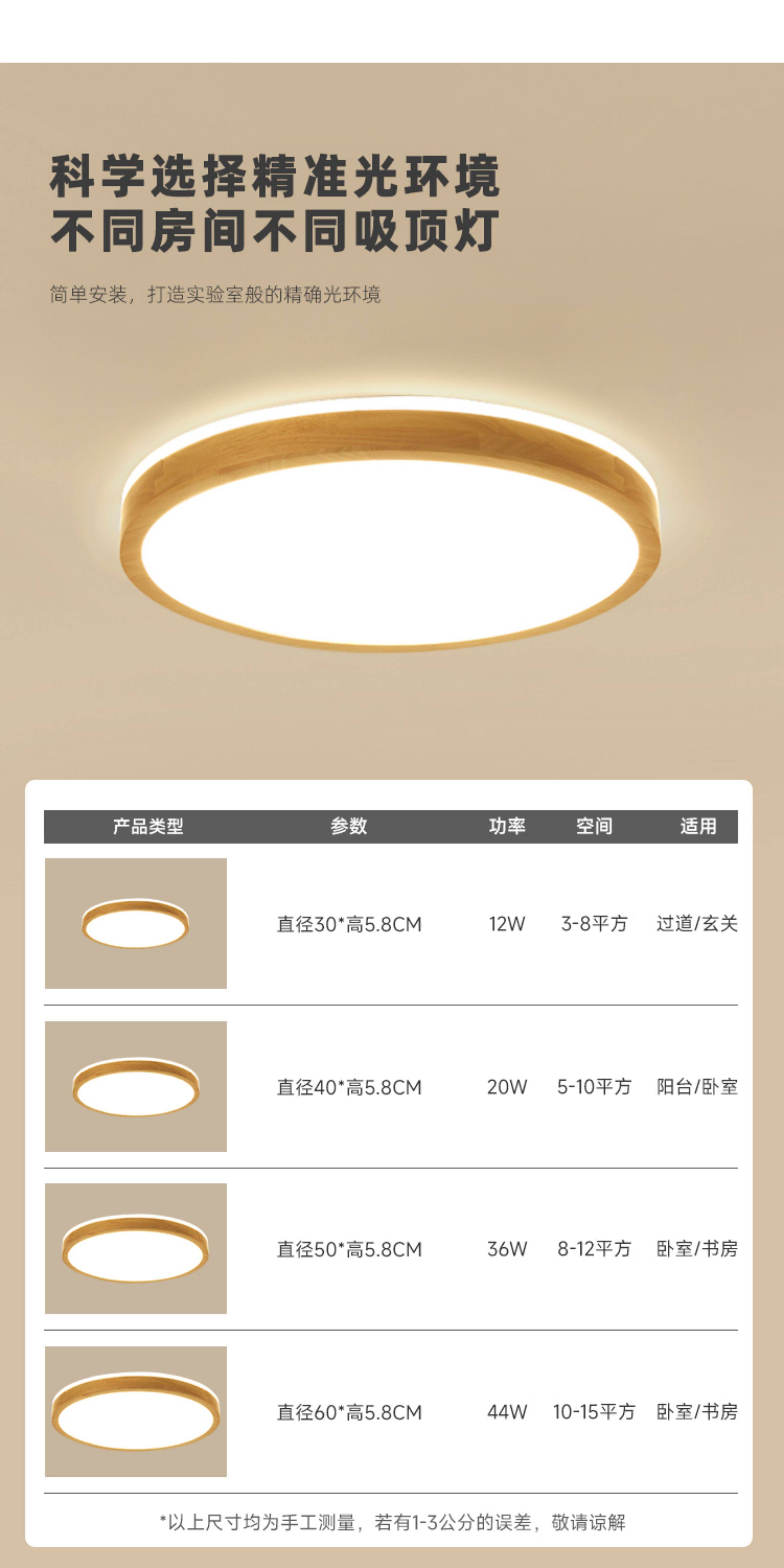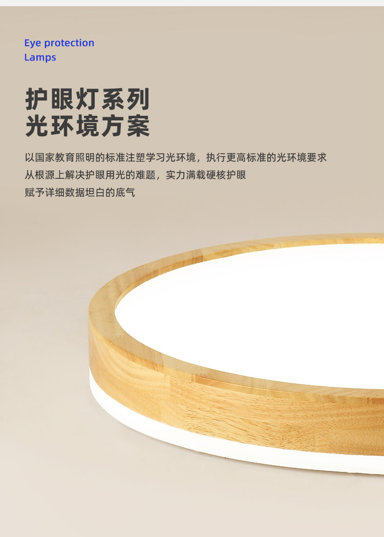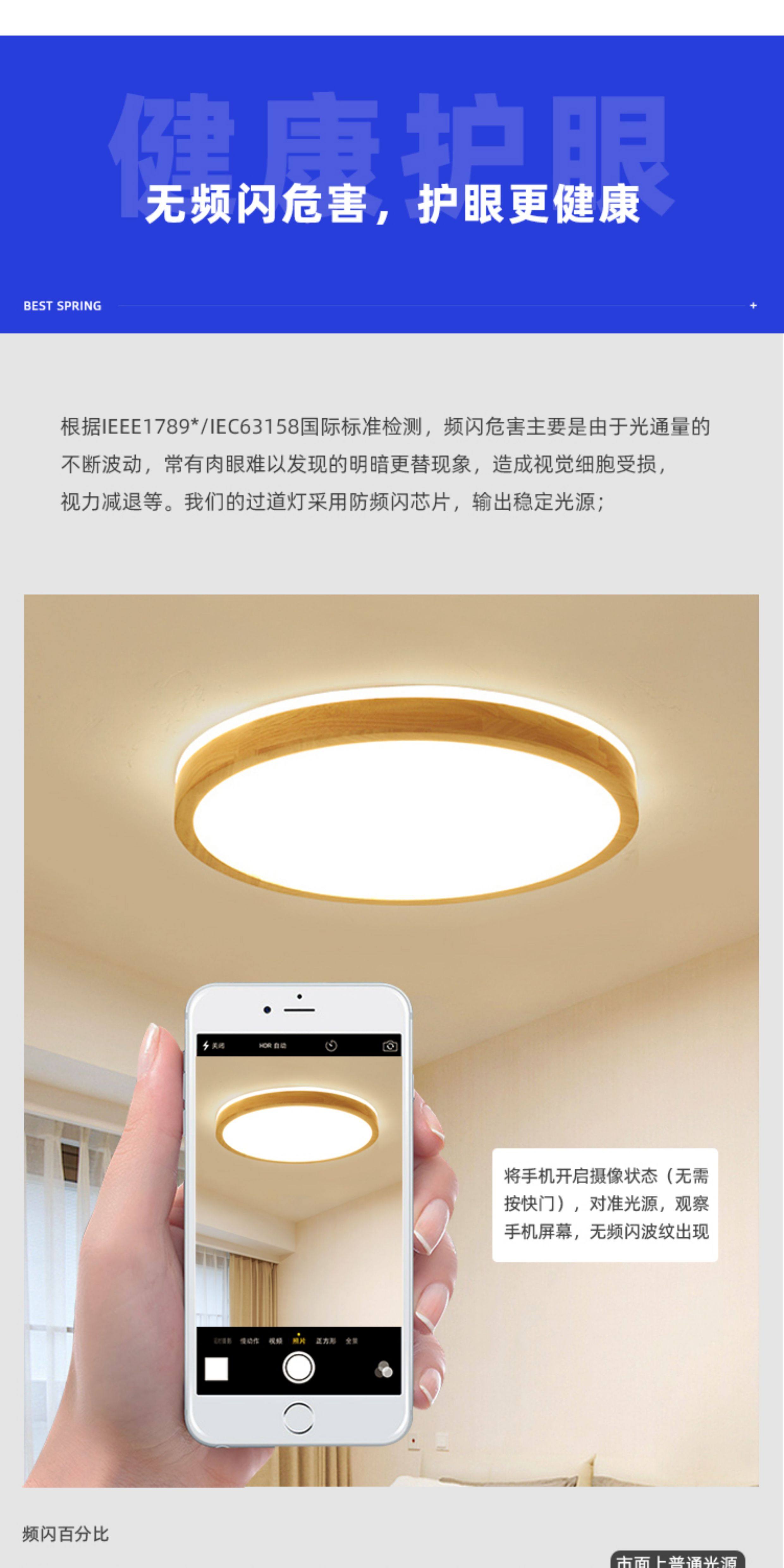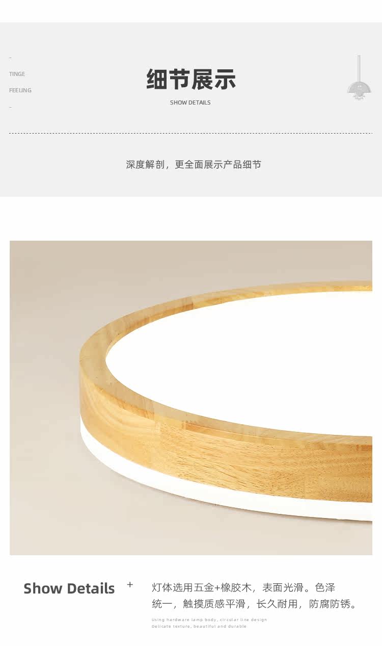 原木风卧室灯led吸顶灯木质圆形现代简约房间阳台日式灯实木灯具