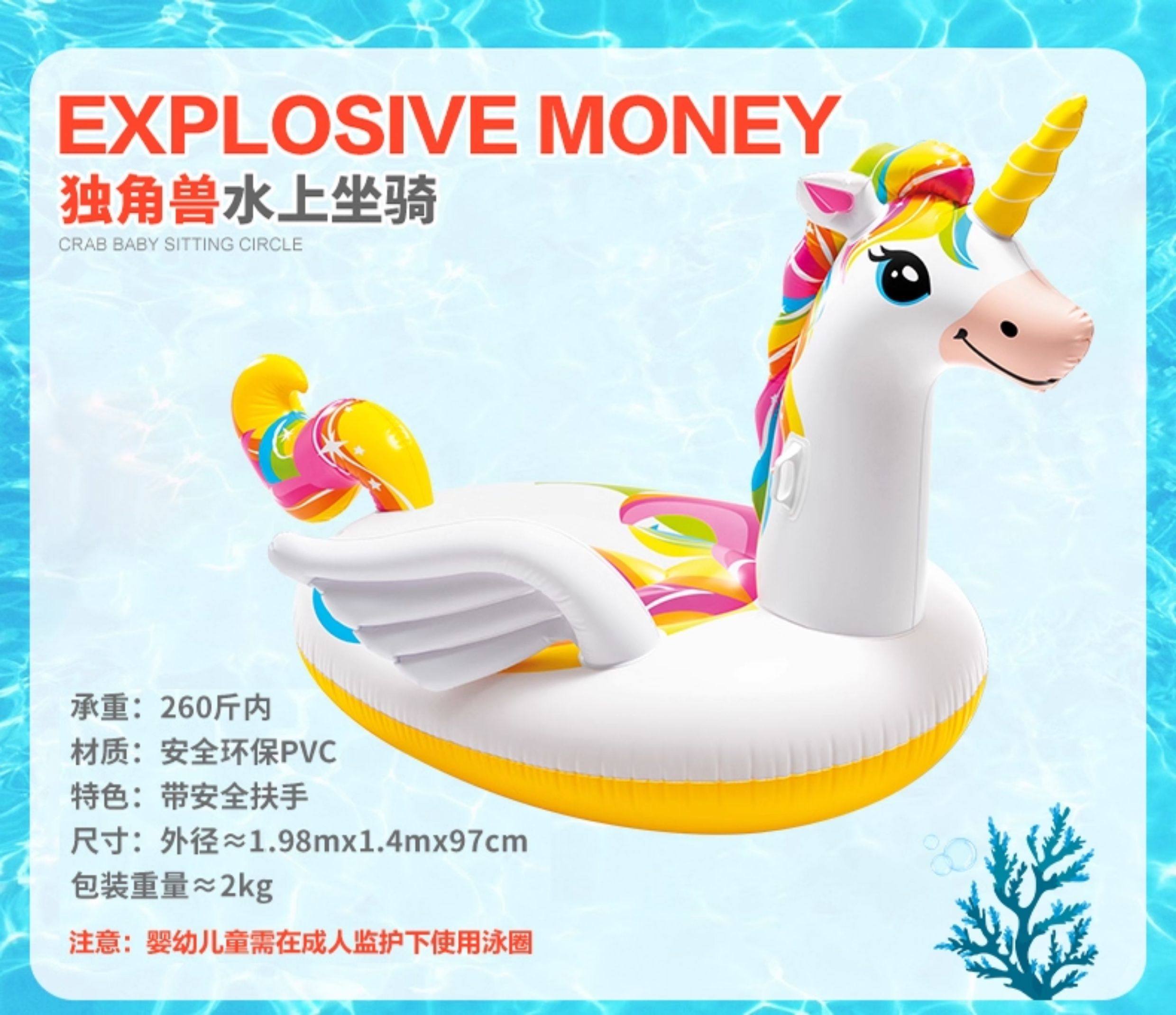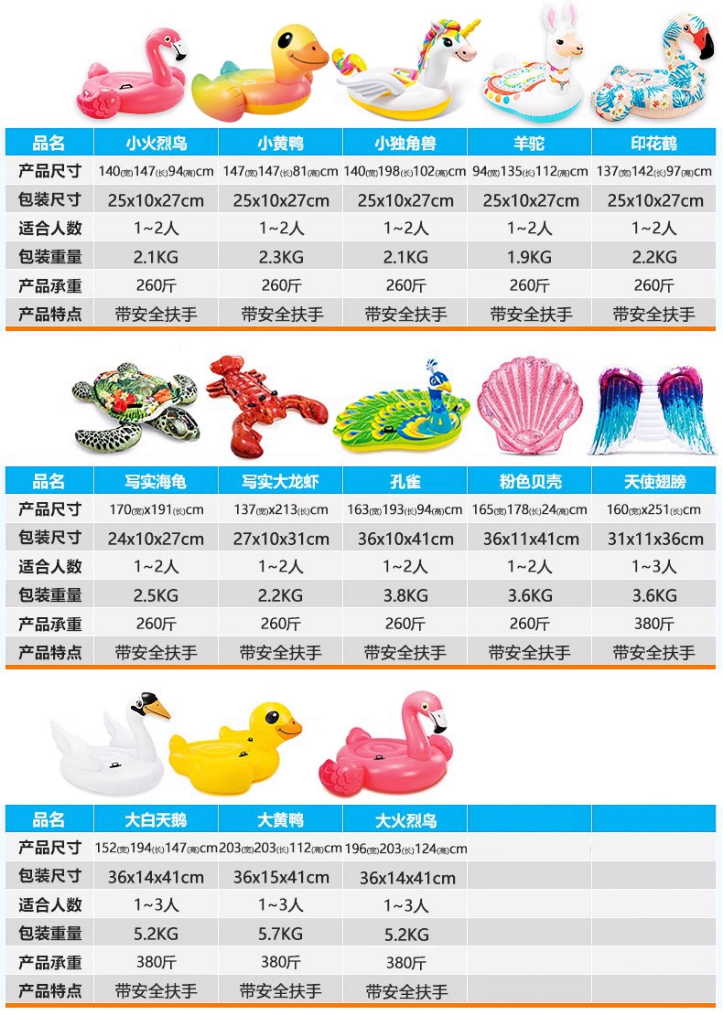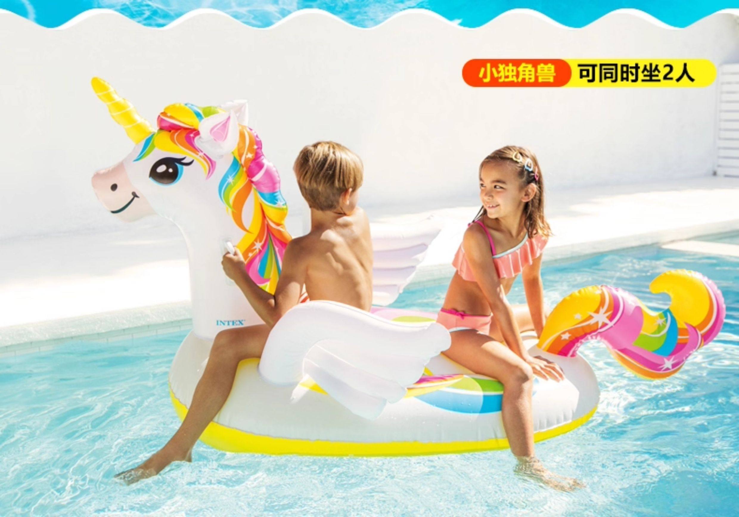 INTEX成人水上坐骑火烈鸟游泳圈玩具儿童独角兽浮排泳池充气浮床