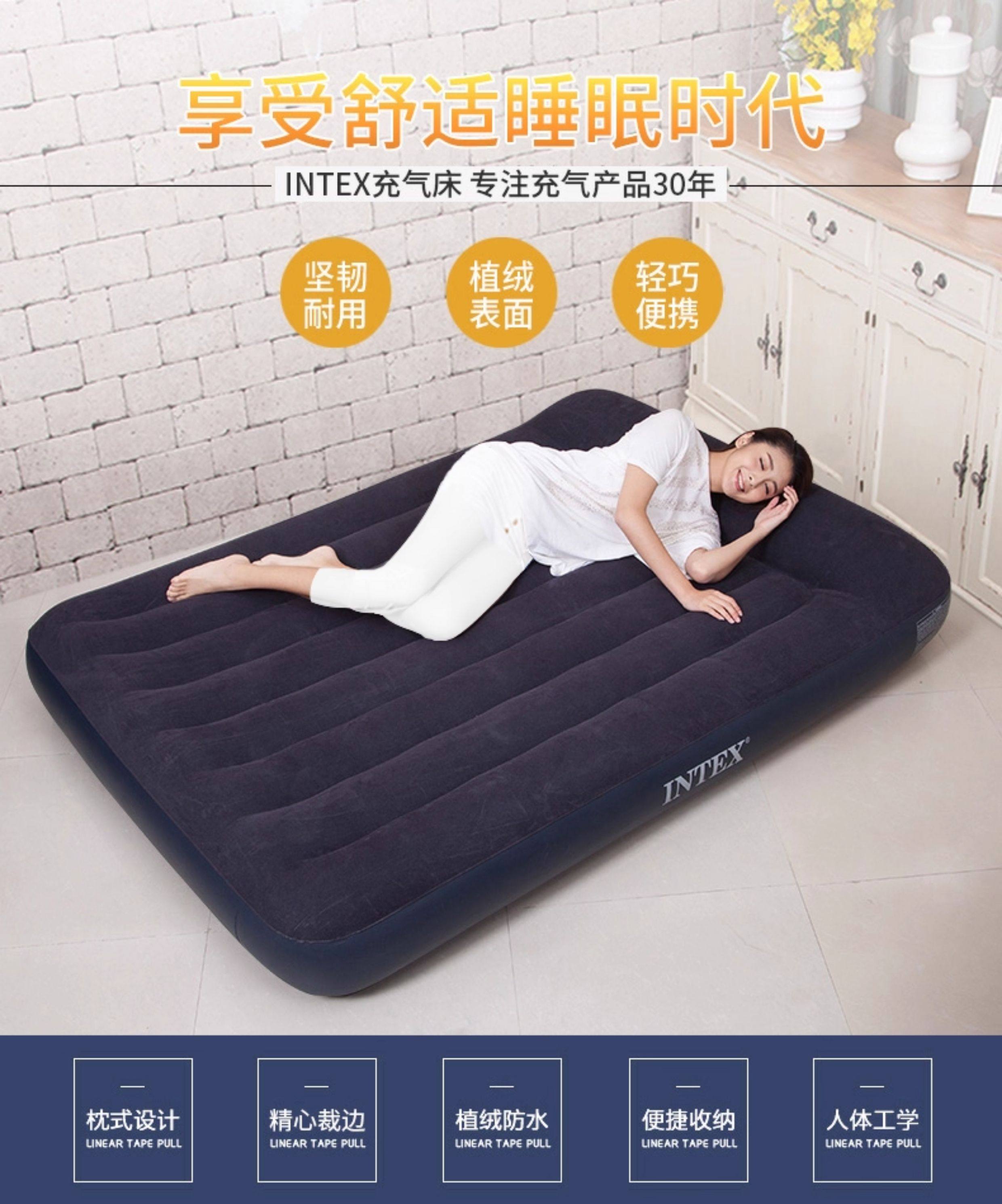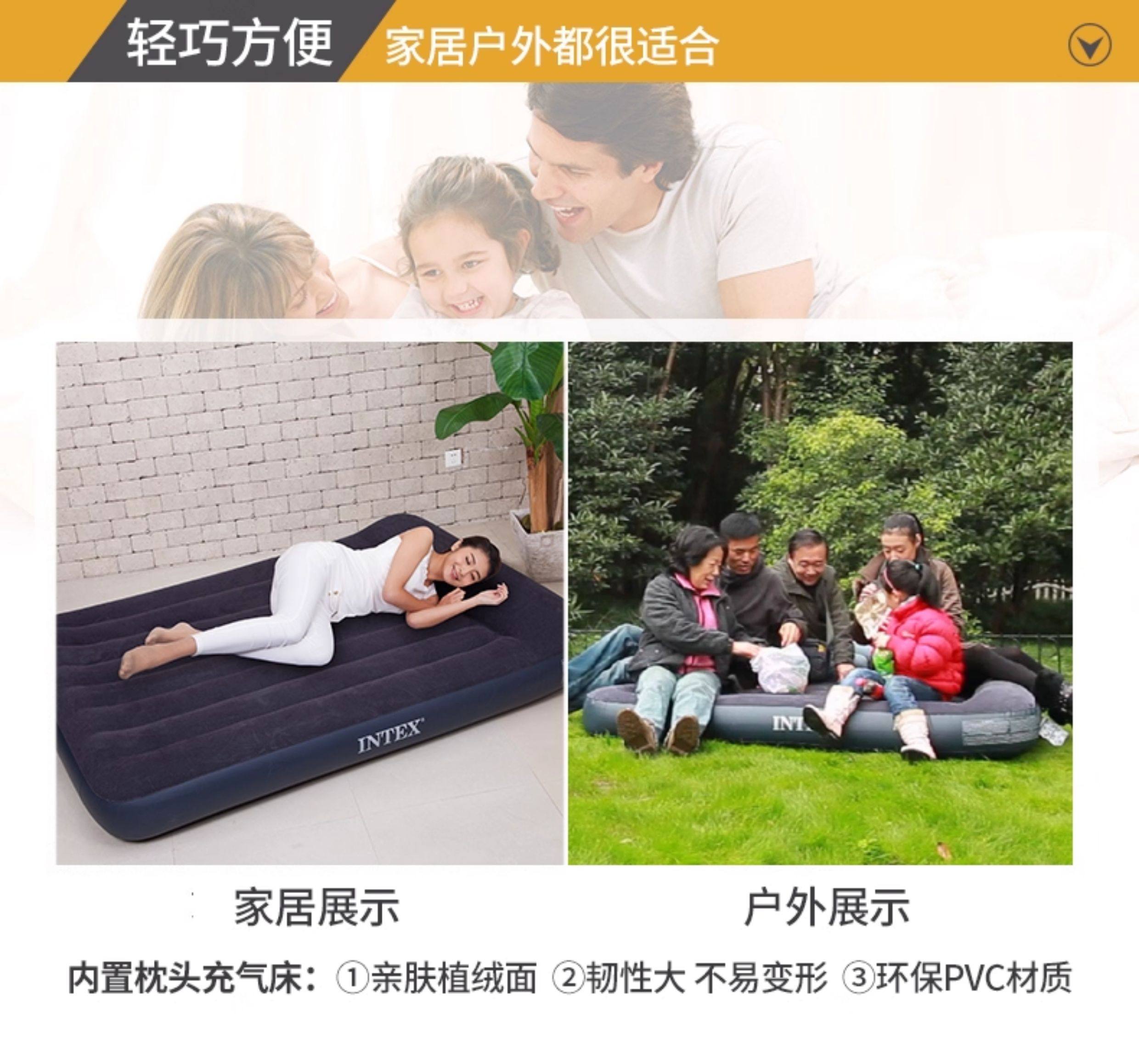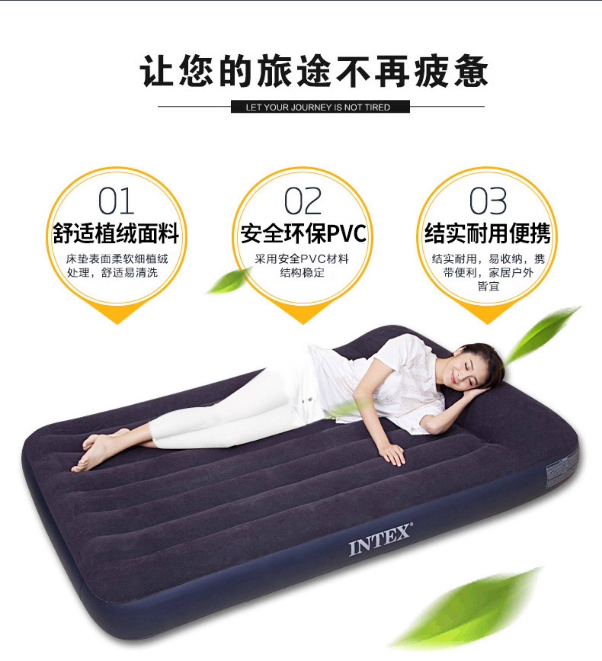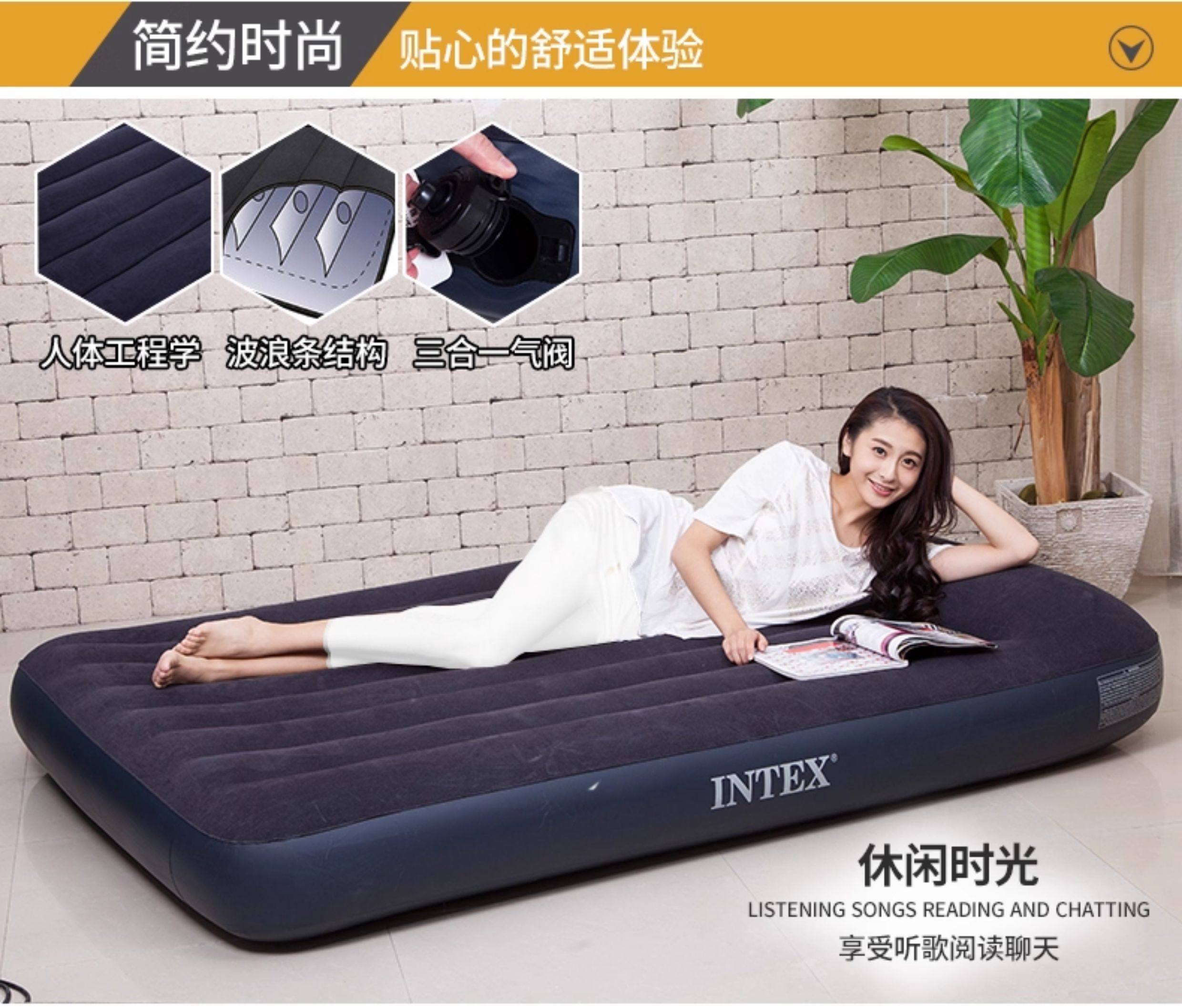 Надувной матрас INTEX для домашнего использования, двойной утолщенный надувной матрас, односпальная портативная надувная кровать для палатки, складная.