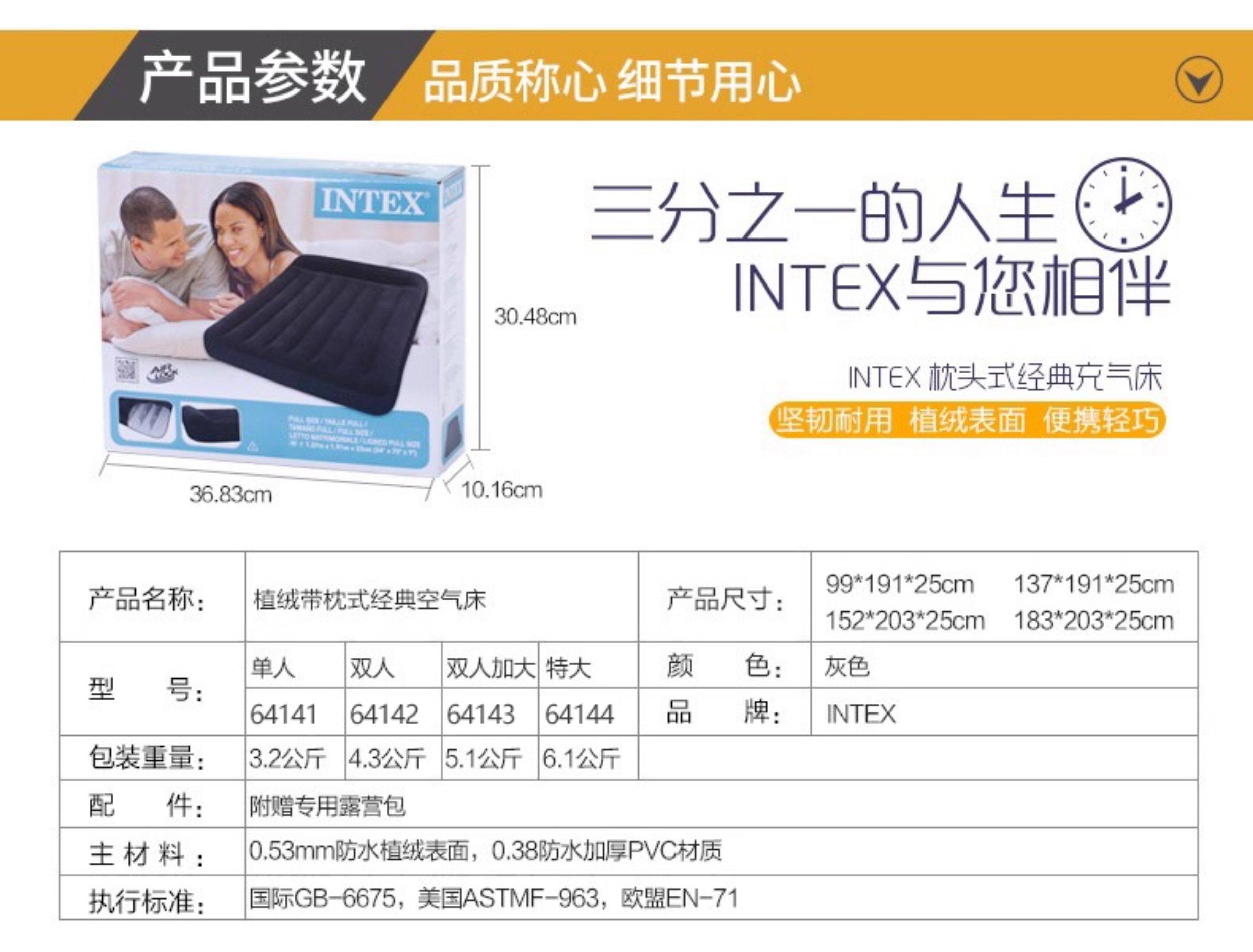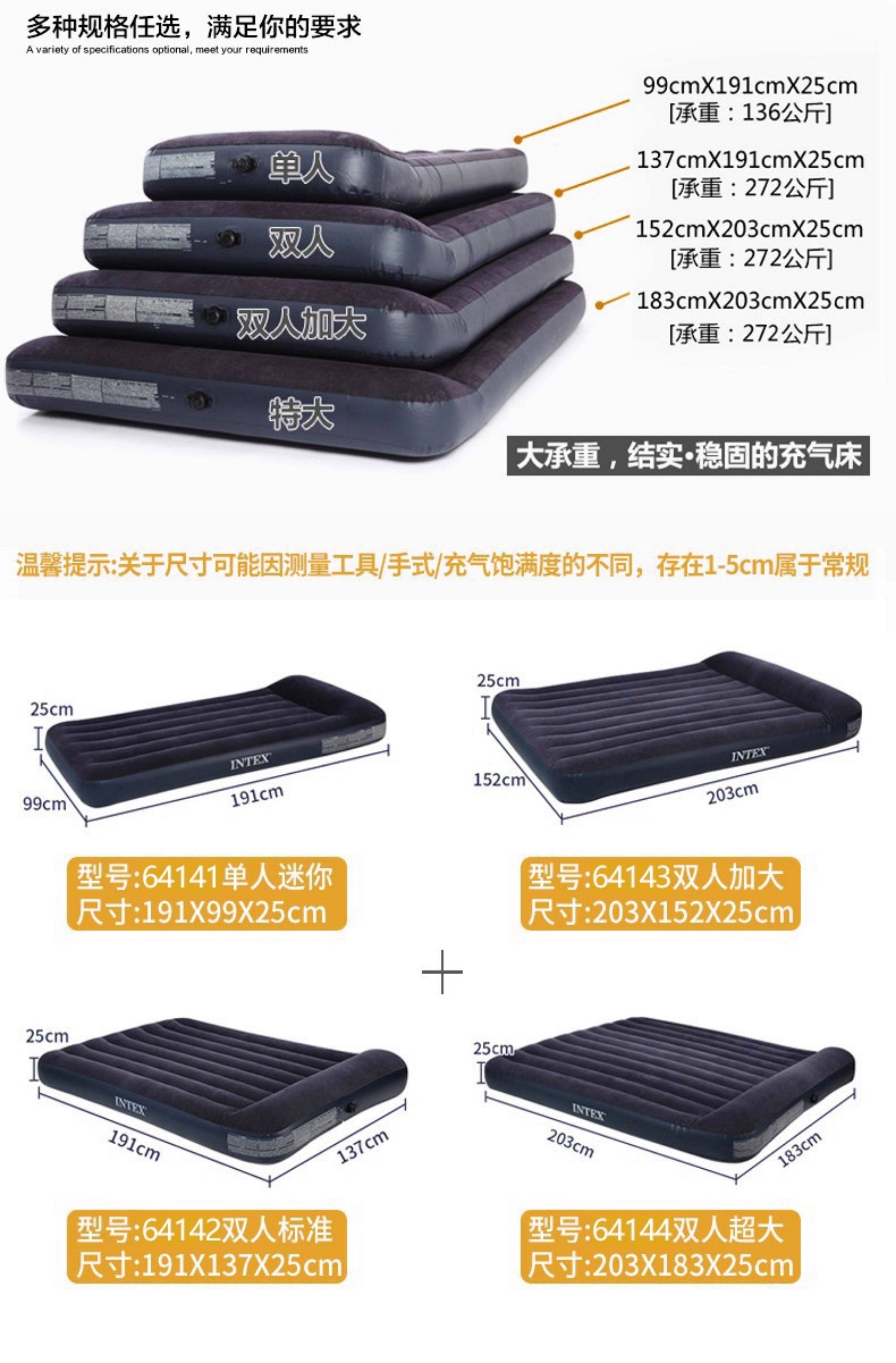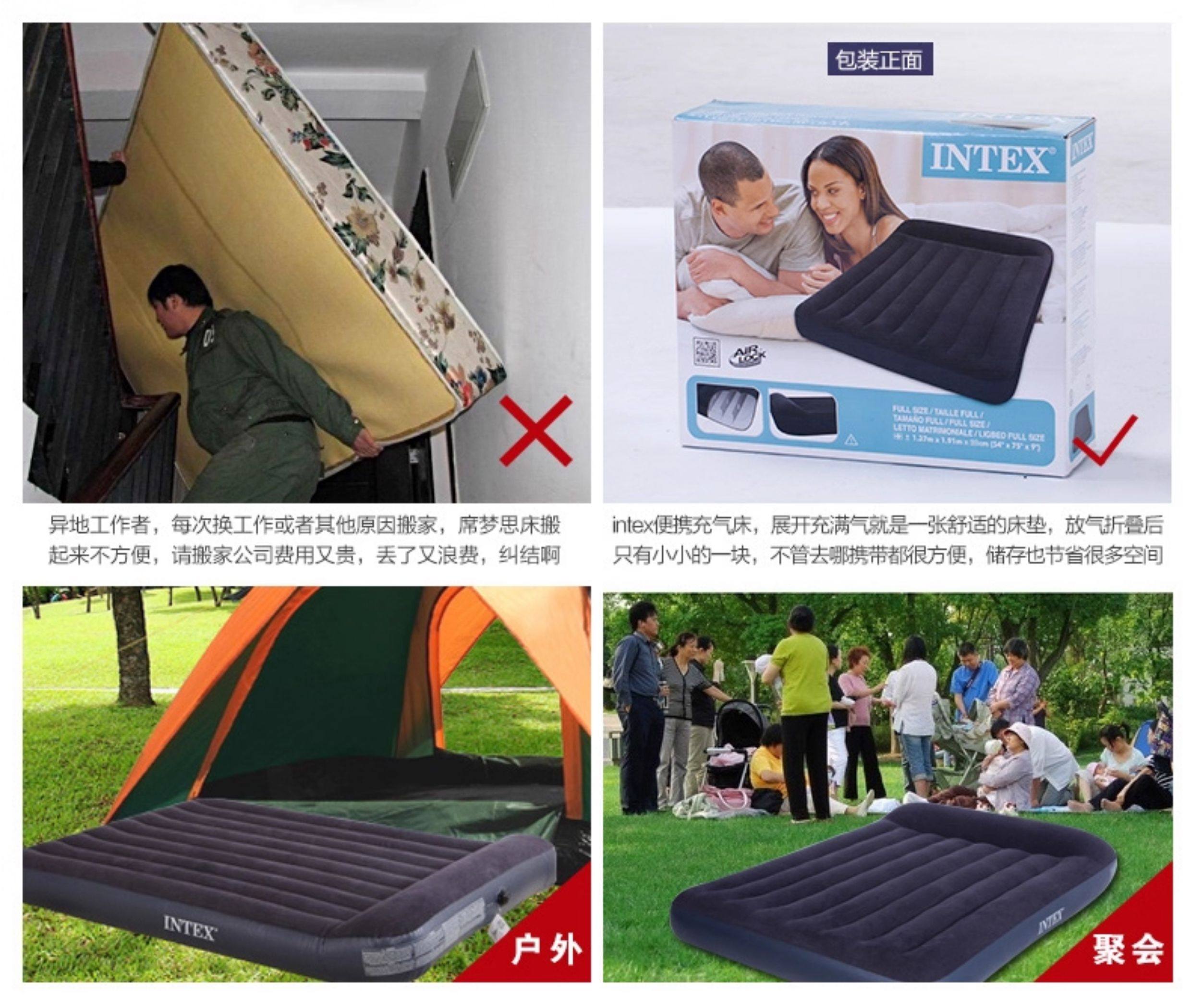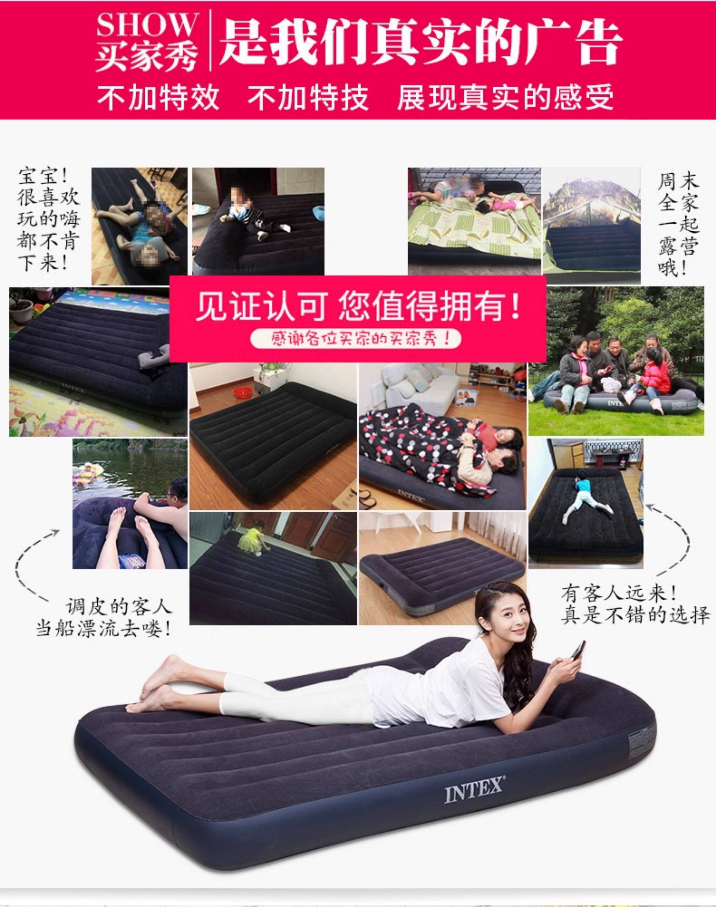 Надувной матрас INTEX для домашнего использования, двойной утолщенный надувной матрас, односпальная портативная надувная кровать для палатки, складная.