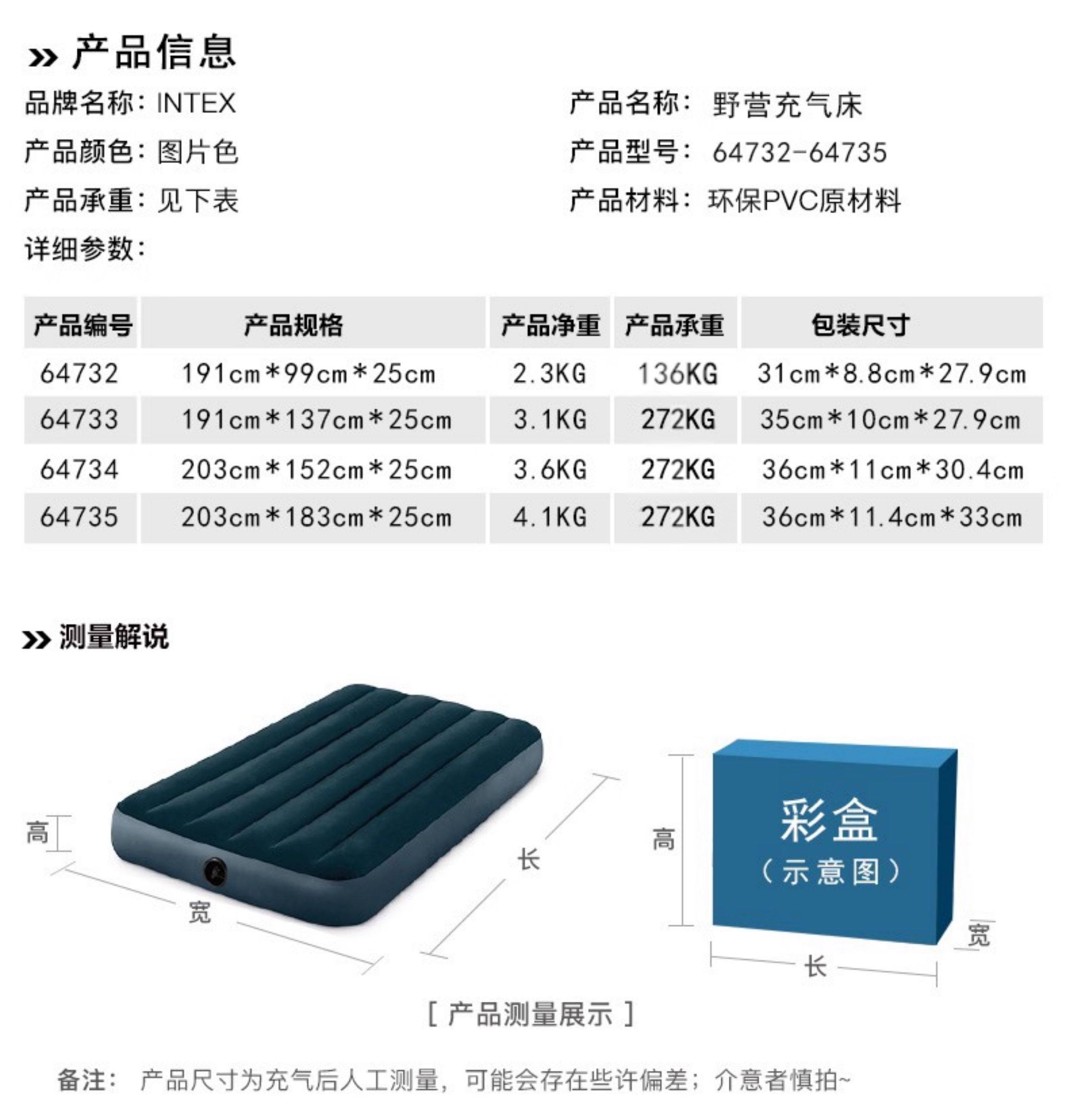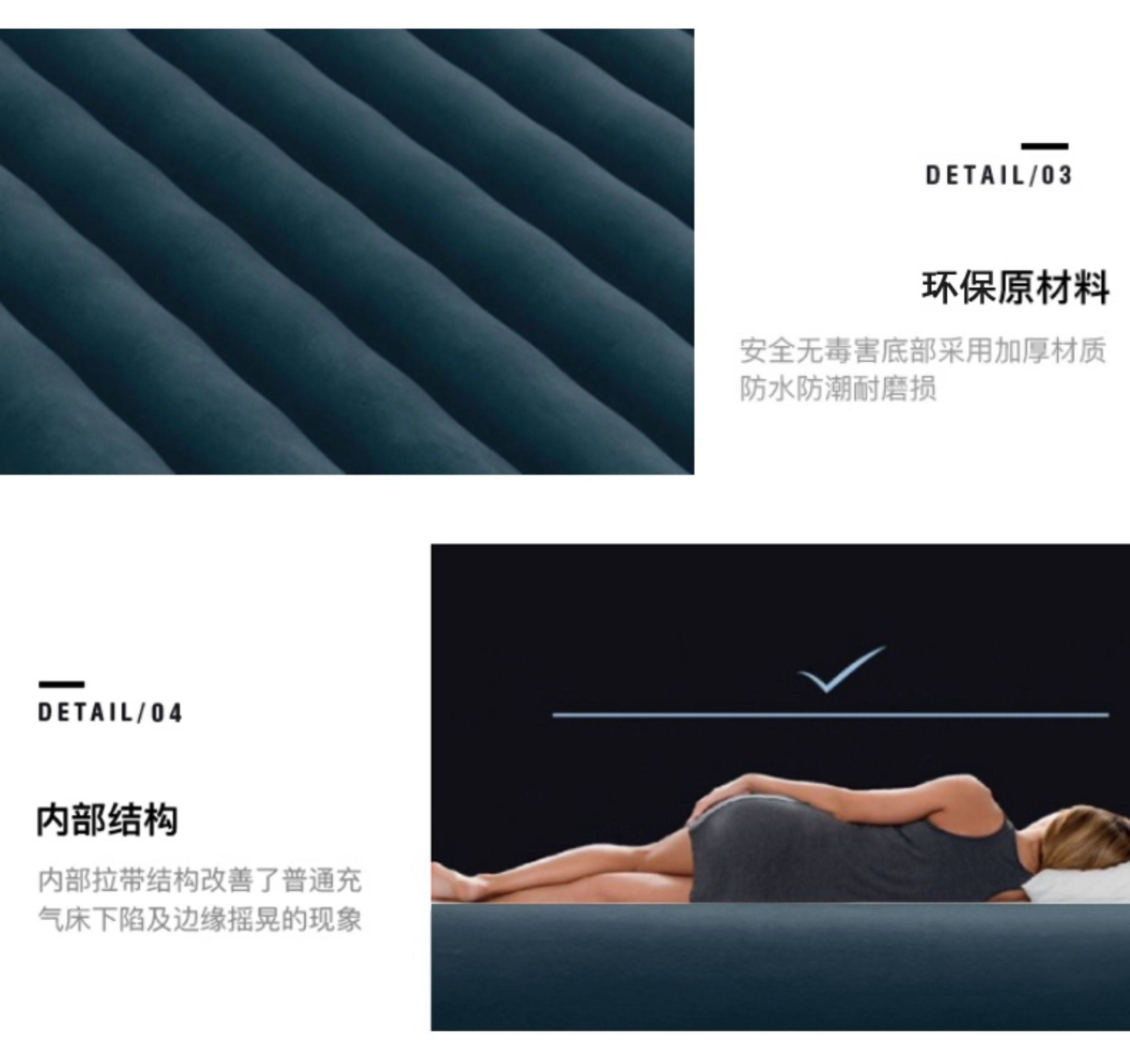Intex Inflatable Mattress for Home Use, Double Air Mattress, Single Thickened Outdoor Portable Inflatable Folding Bed