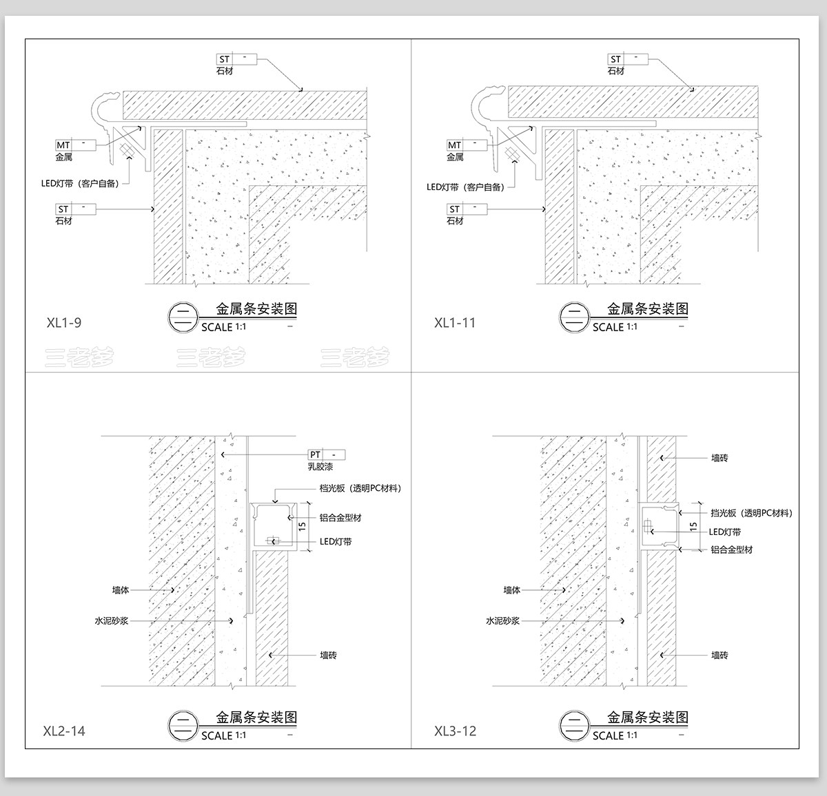 Led Linear Light Cad Construction Drawing Embedded Linear Light Detailed Diagram Node Large Sample Diagram Cross-Section Diagram Process Source File Library