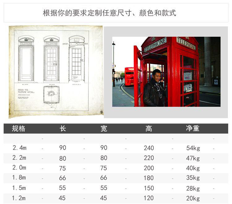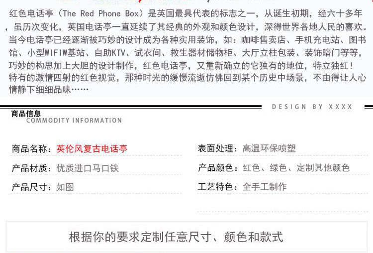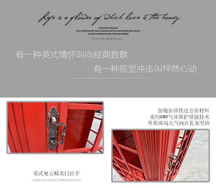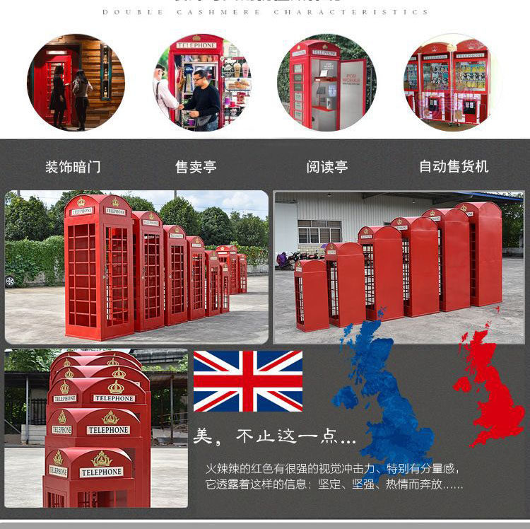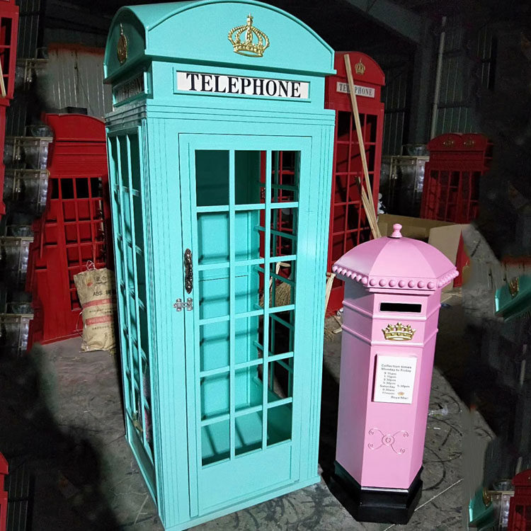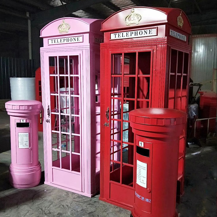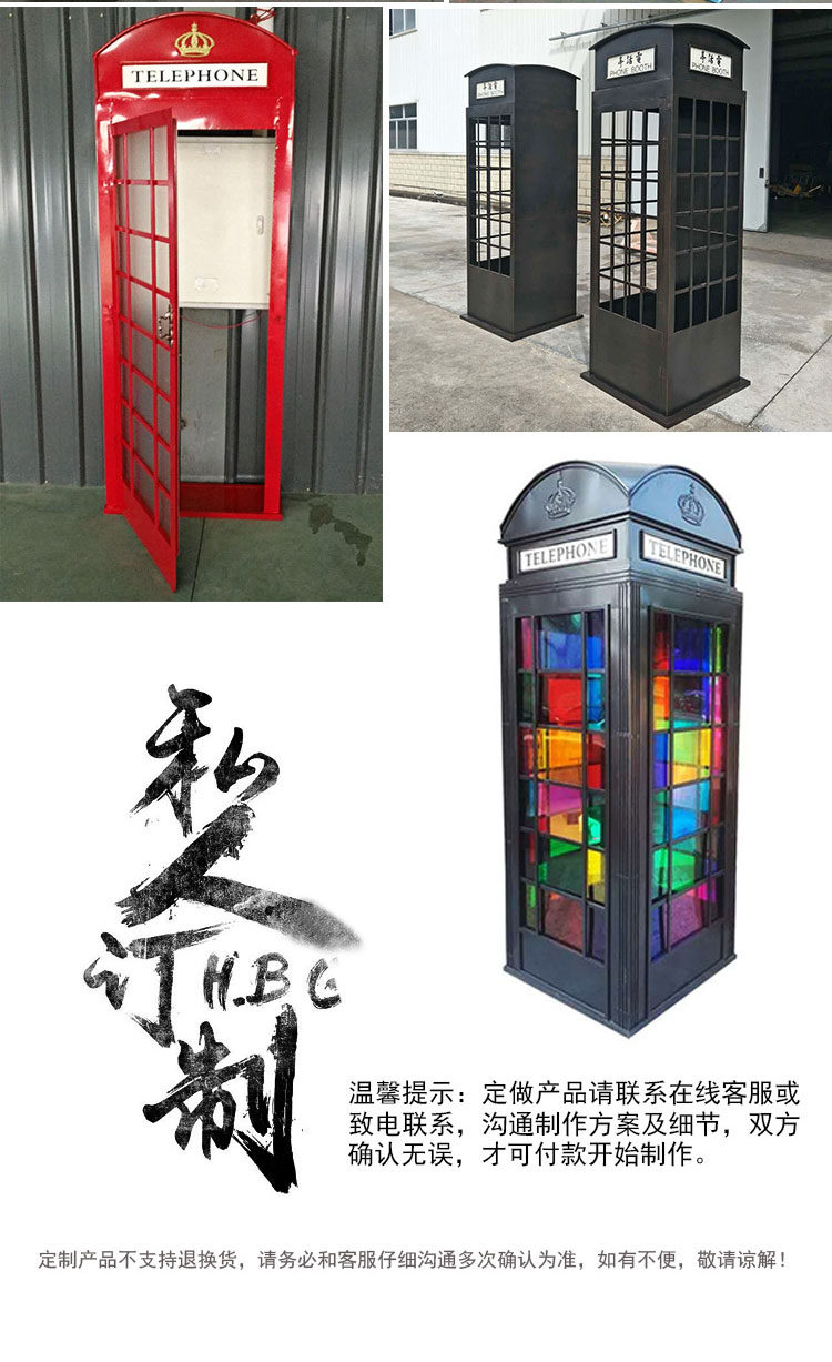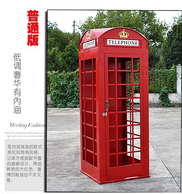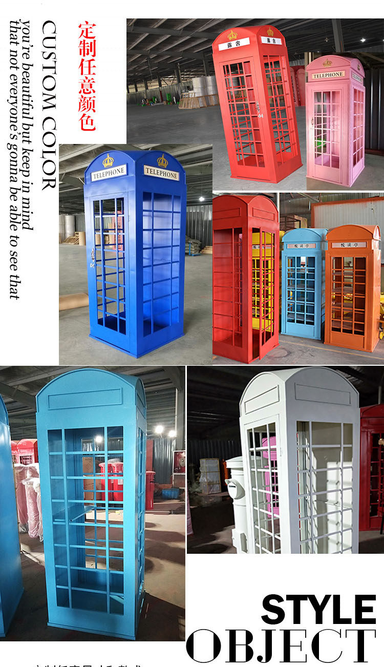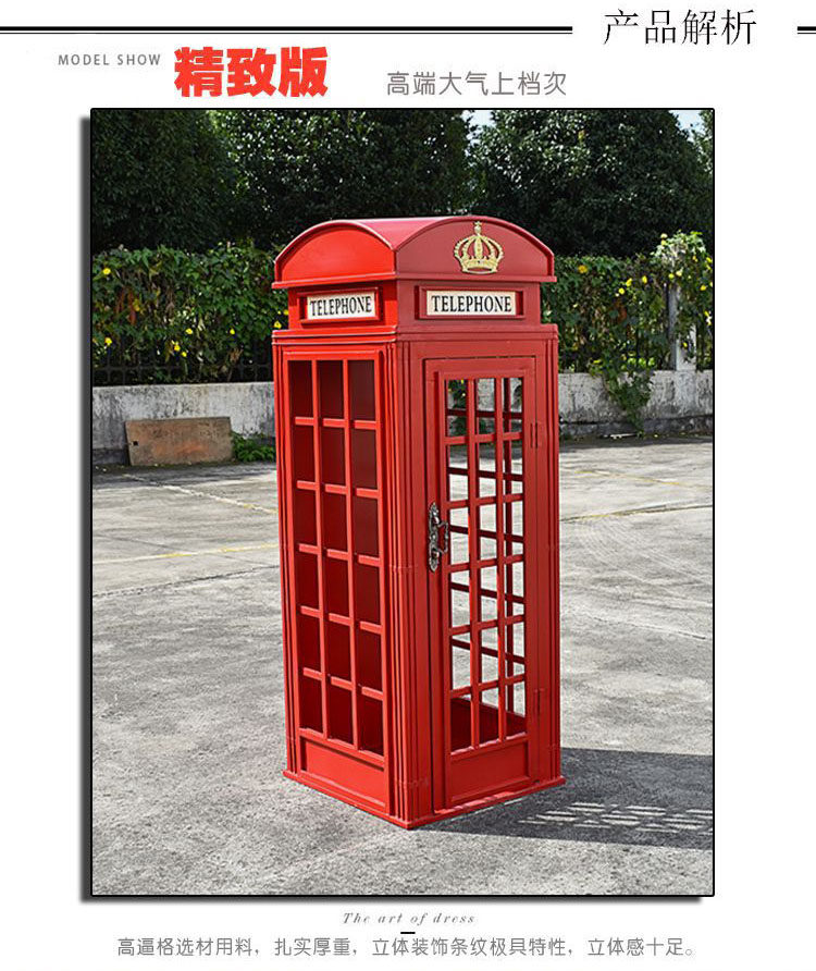 British Industrial Style Retro Telephone Booth Storage Cabinet, Large Floor-Standing Decorative Item for Trendy Restaurants and Bars,