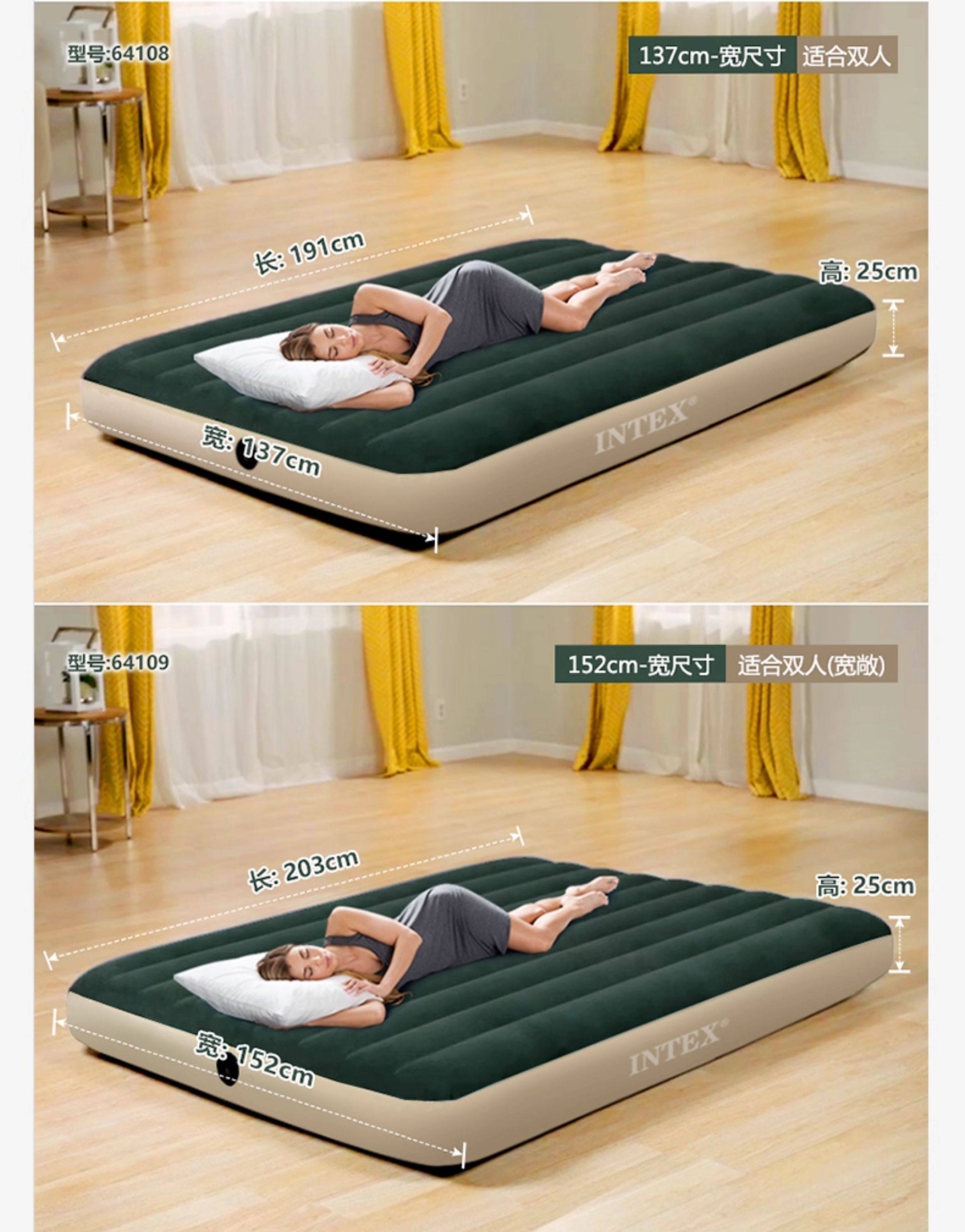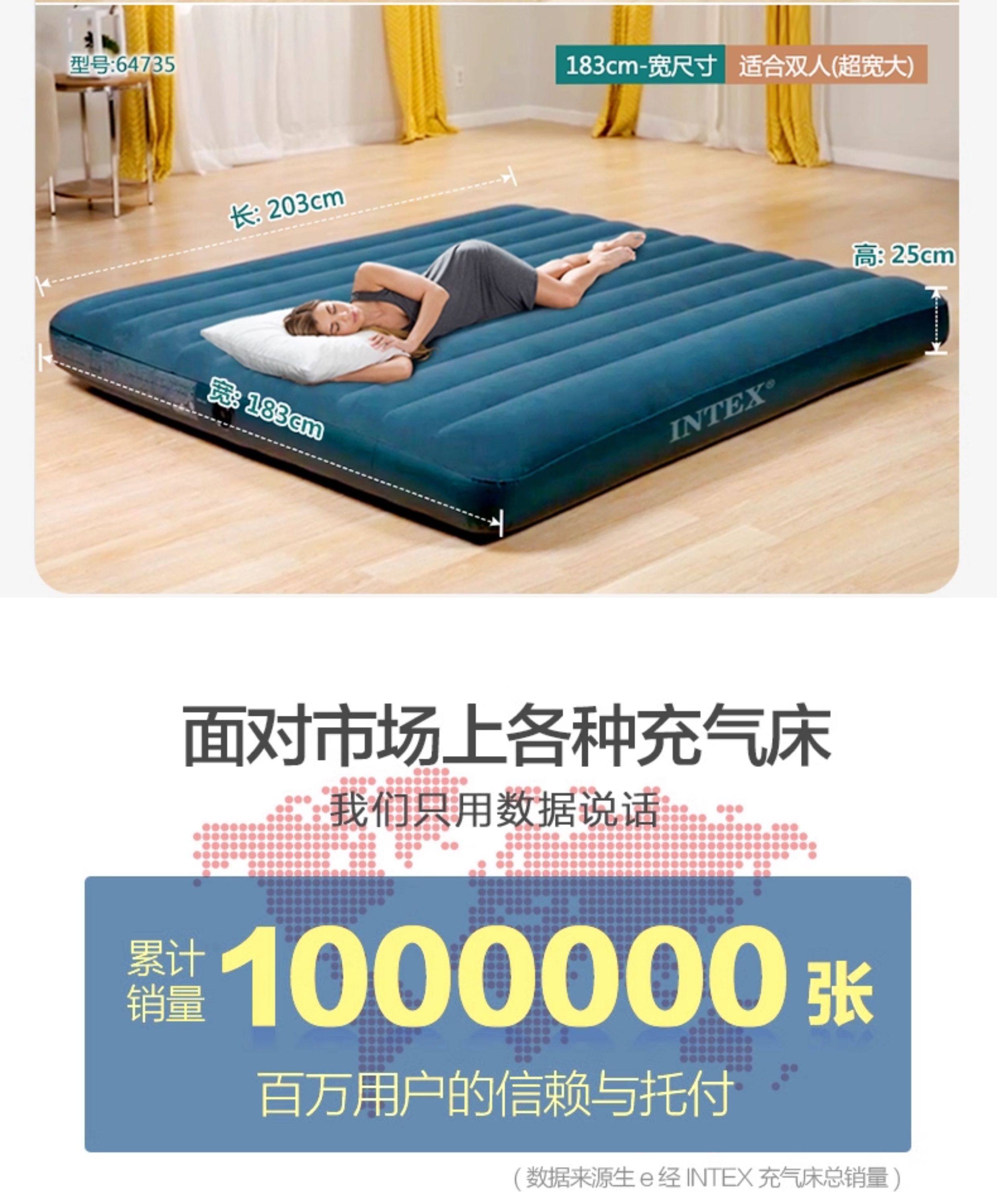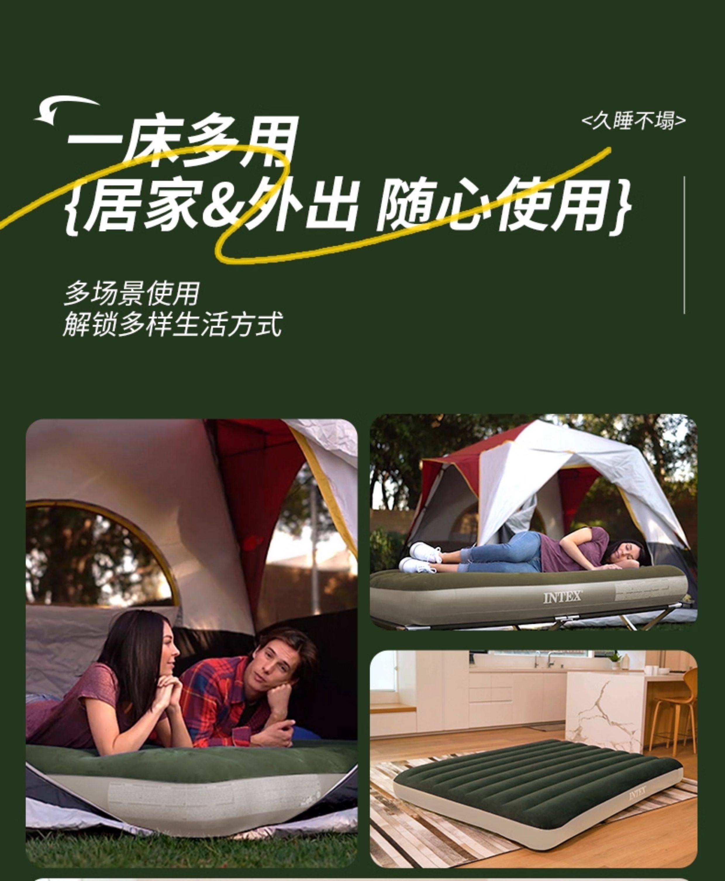 INTEX露营充气床野餐气垫床户外自动床家用便携打地铺床帐篷地垫
