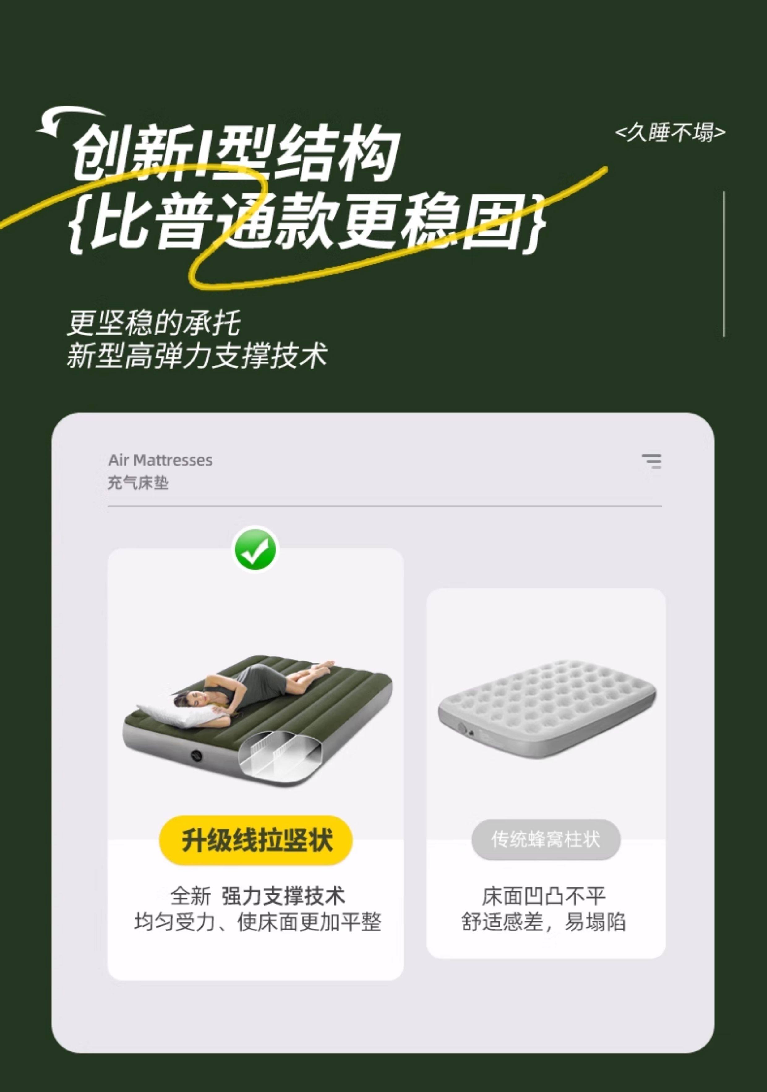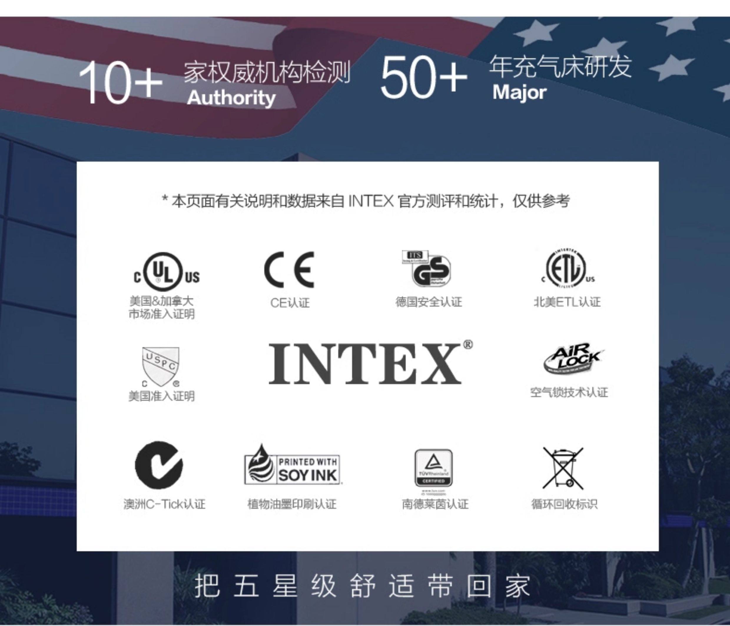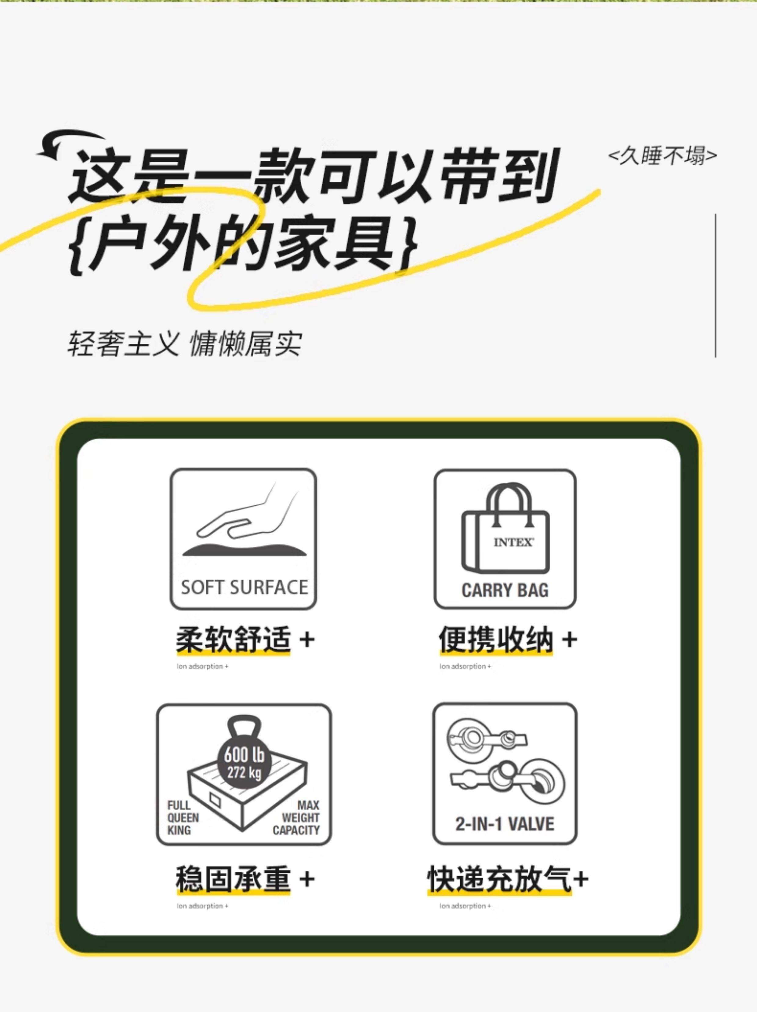 INTEX露营充气床野餐气垫床户外自动床家用便携打地铺床帐篷地垫