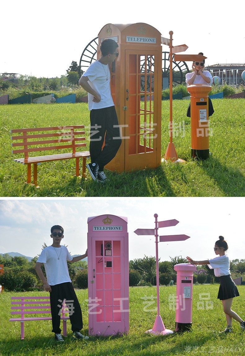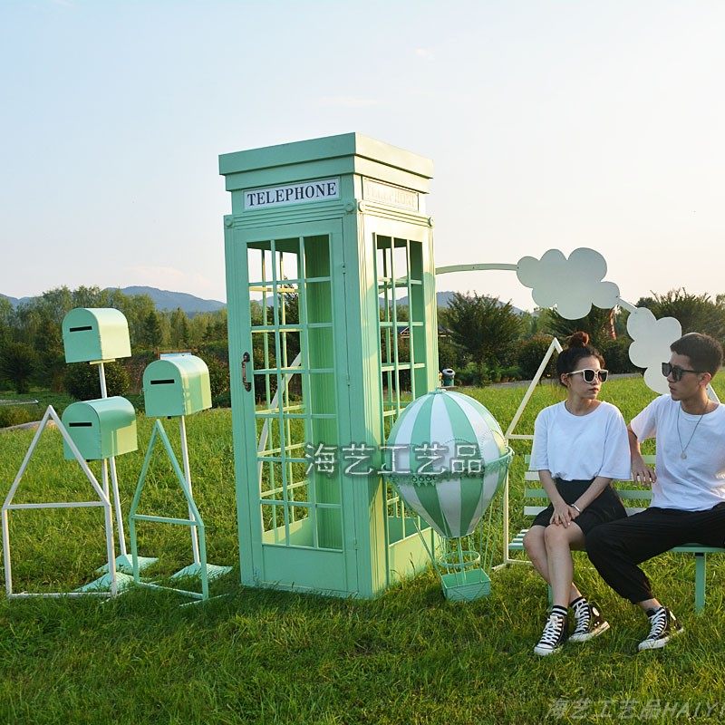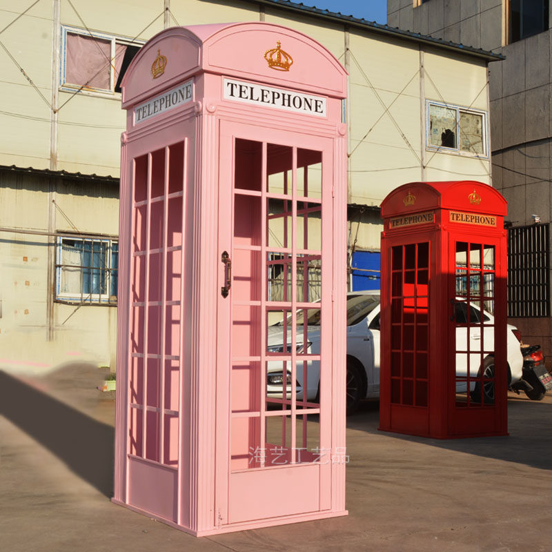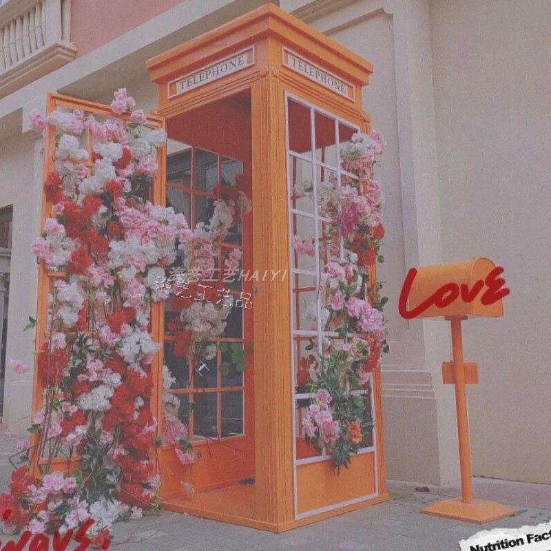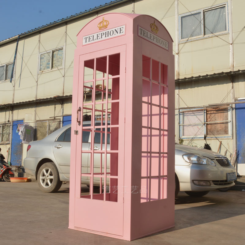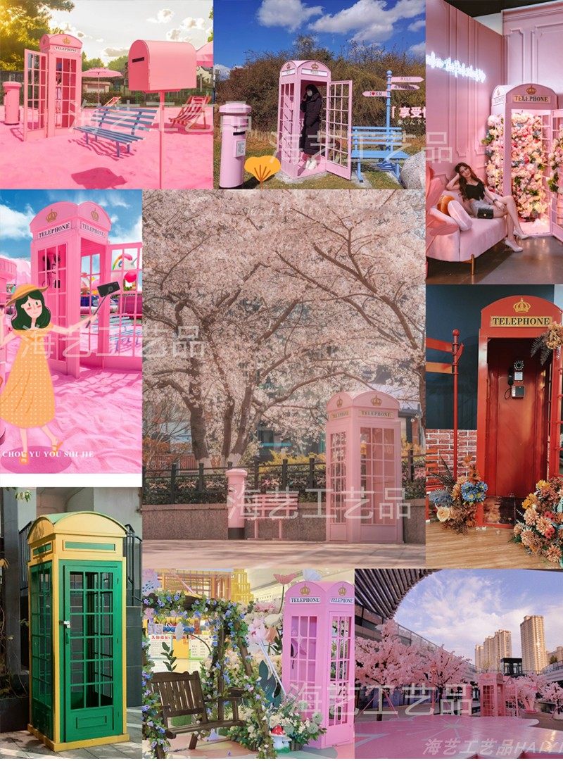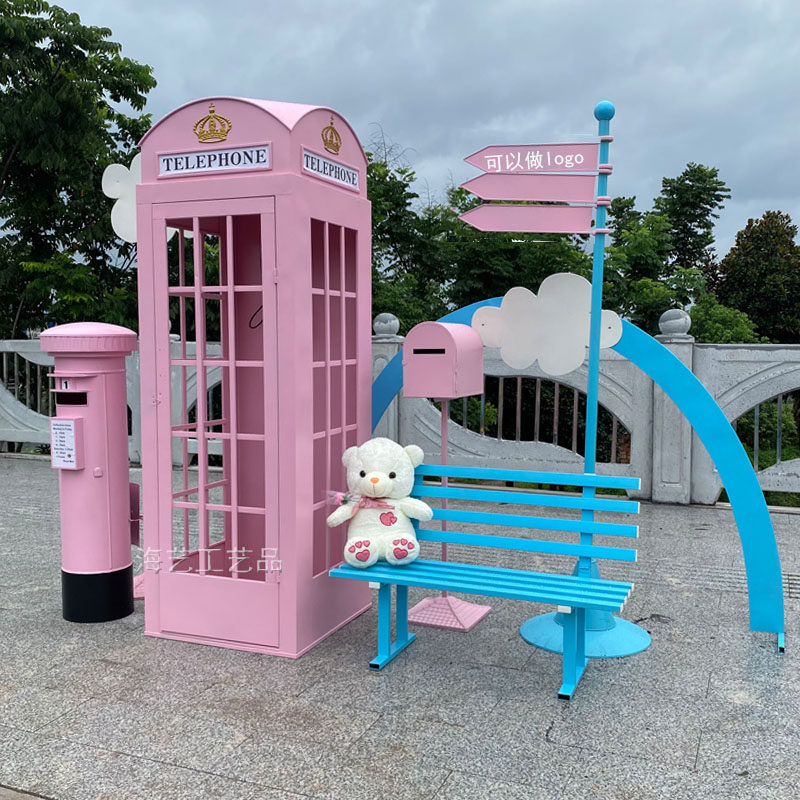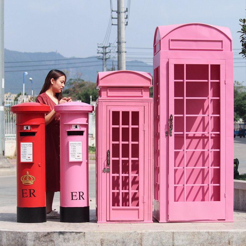 Large Iron Art Mall Display Props, Pink Telephone Booth Mailbox Ornaments, Holiday Supermarket Floor-Standing Soft Decoration
