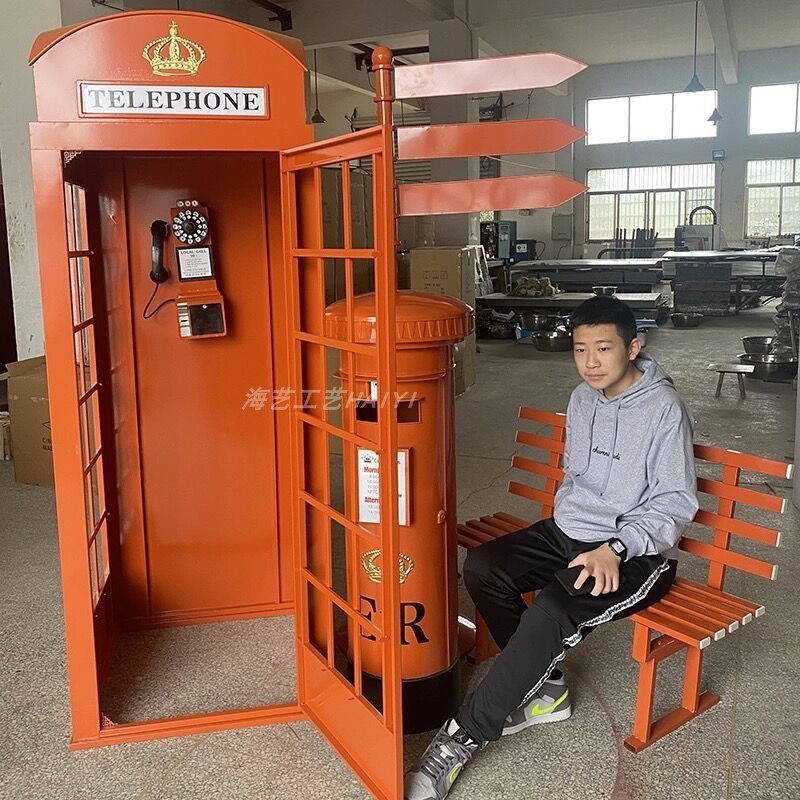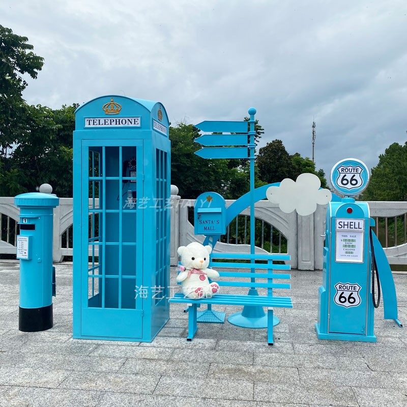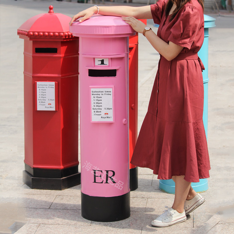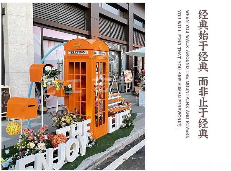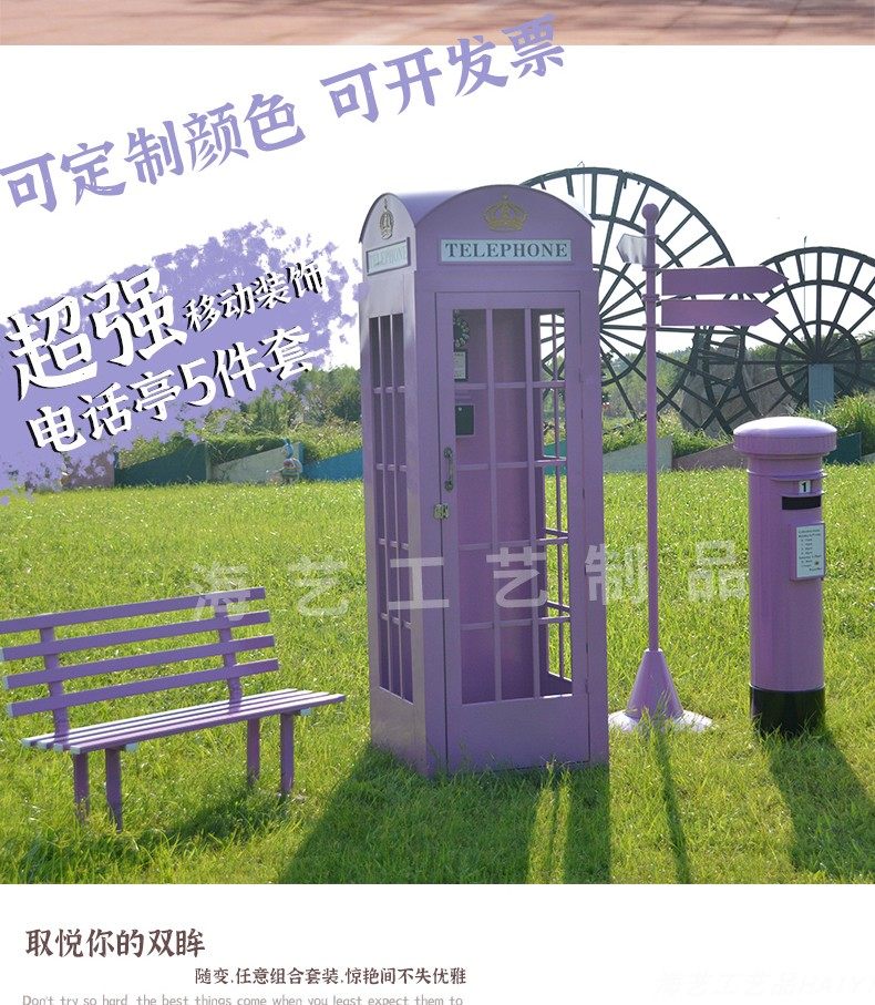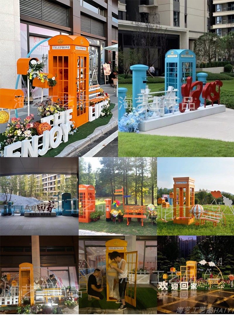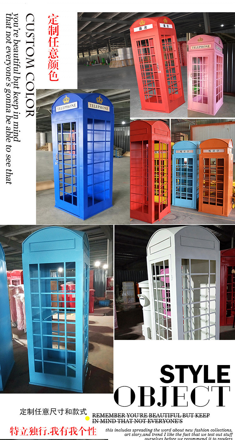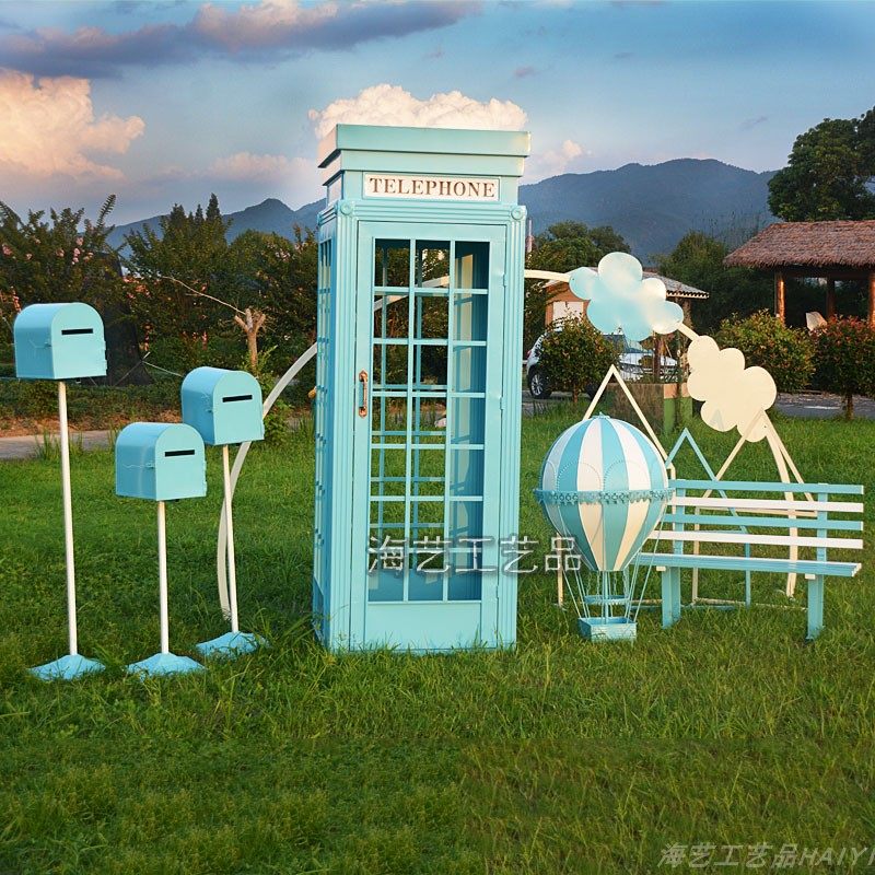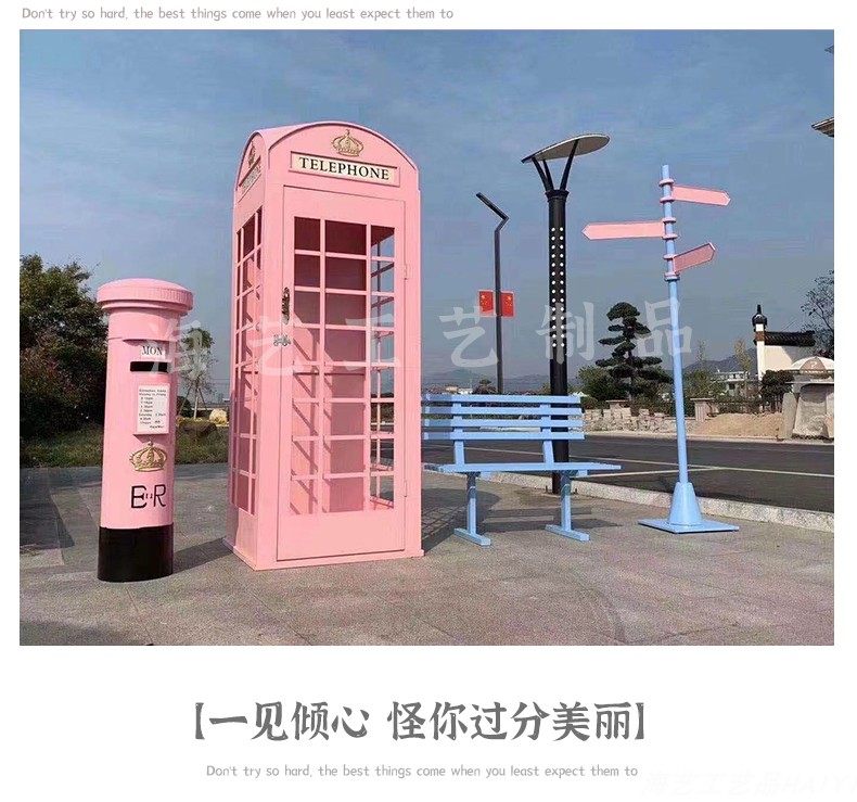 Large Iron Art Mall Display Props, Pink Telephone Booth Mailbox Ornaments, Holiday Supermarket Floor-Standing Soft Decoration
