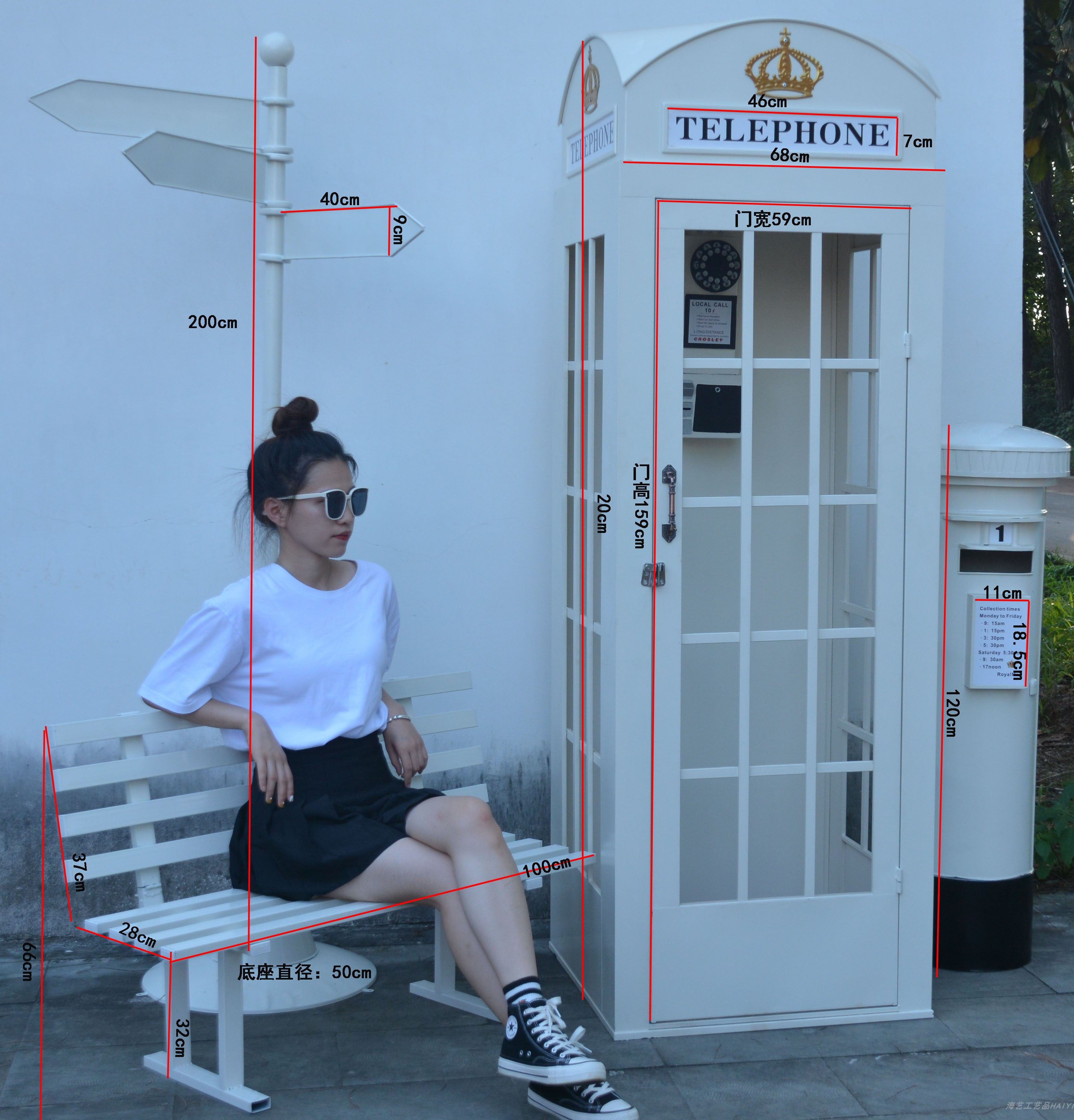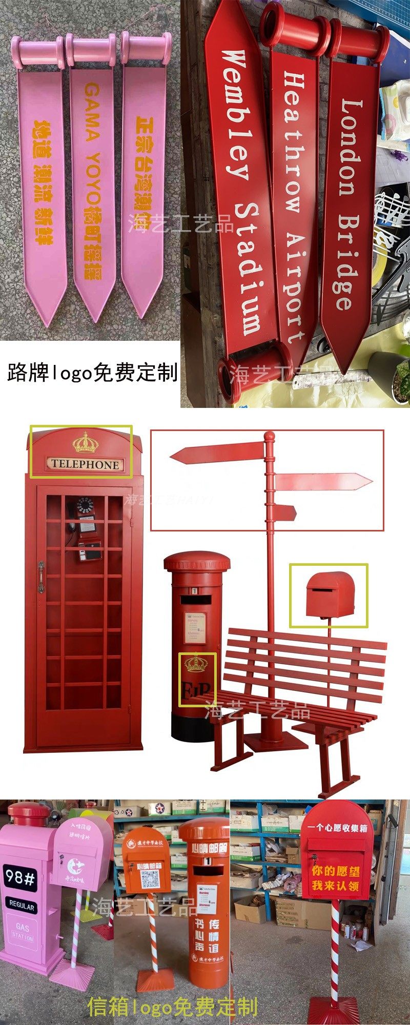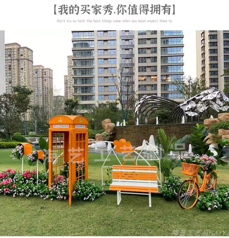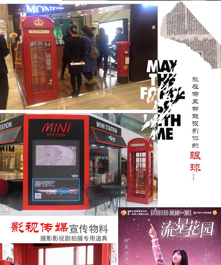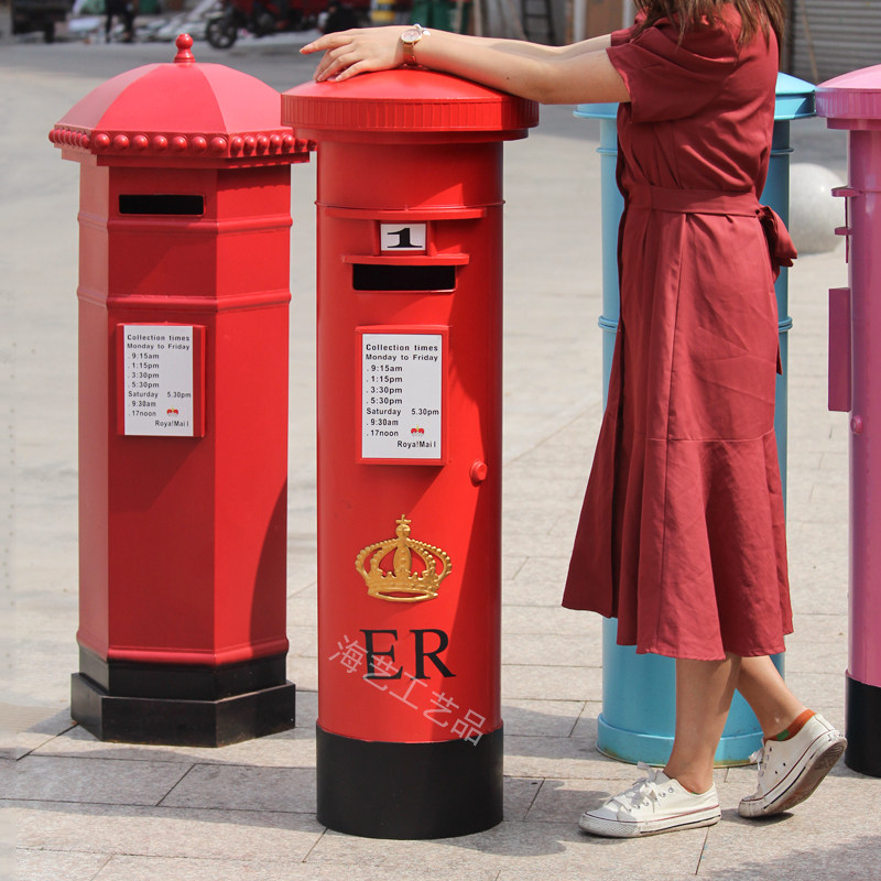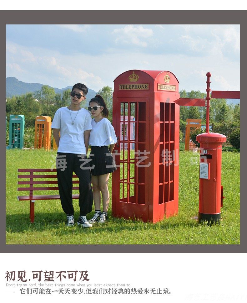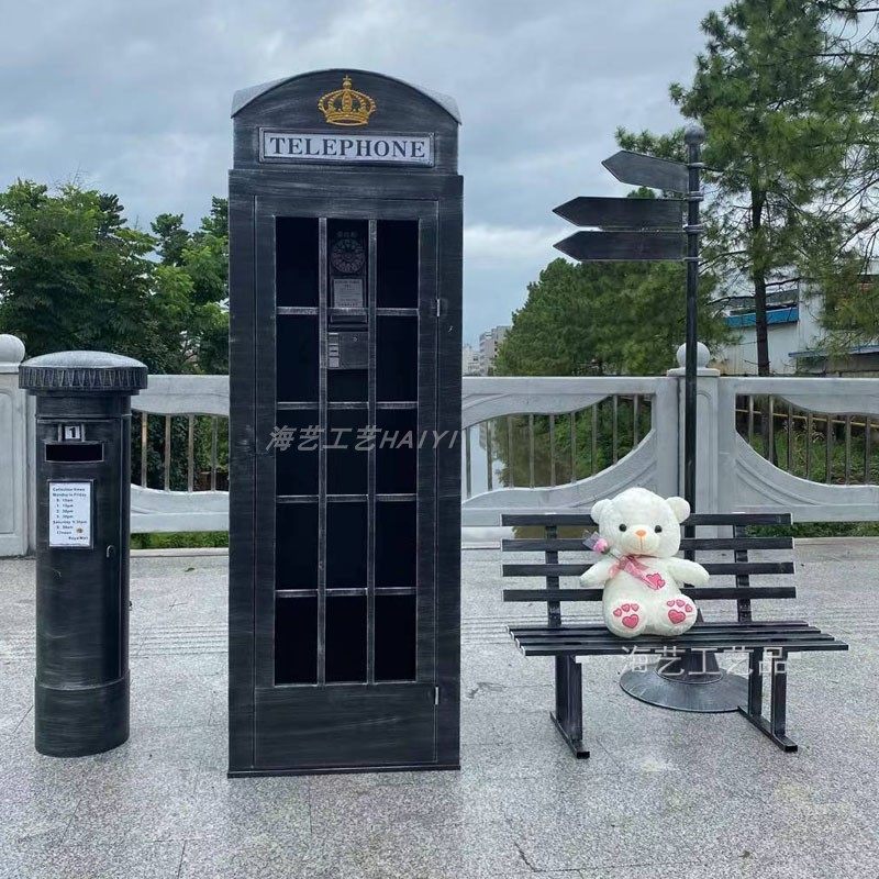 Large Iron Art Mall Display Props, Pink Telephone Booth Mailbox Ornaments, Holiday Supermarket Floor-Standing Soft Decoration