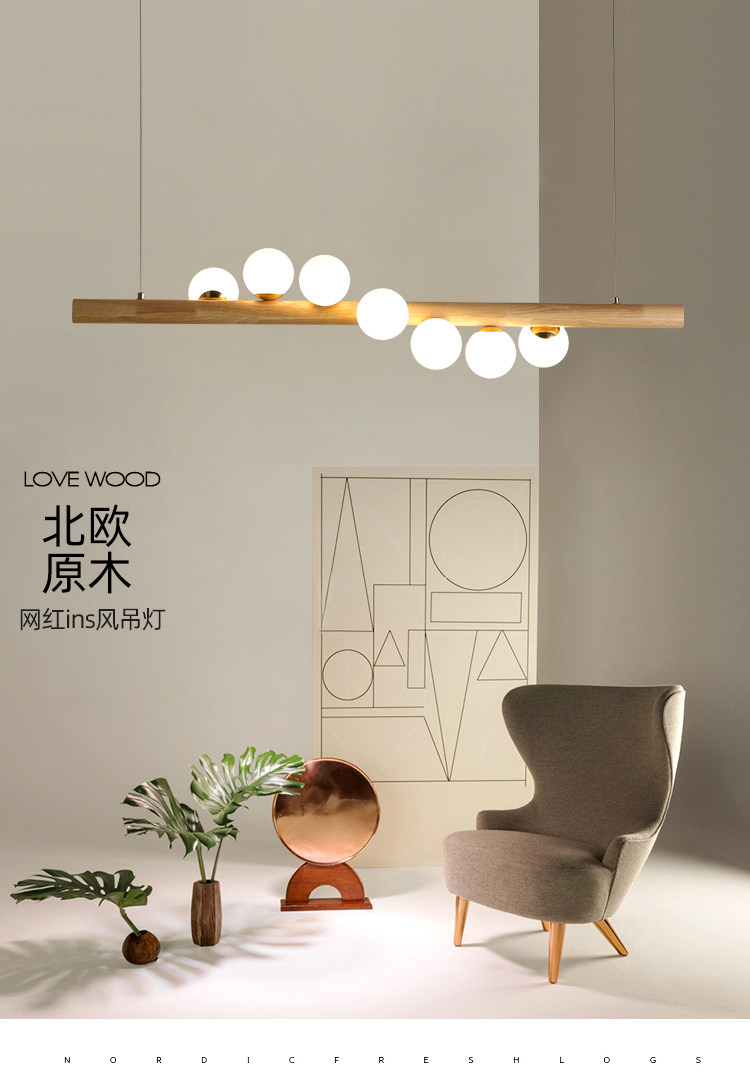 Ресторанная люстра в скандинавском стиле, молекулярная лампа, простая современная, в деревянном кремовом стиле, «волшебная боба», высококачественное освещение для обеденного стола
