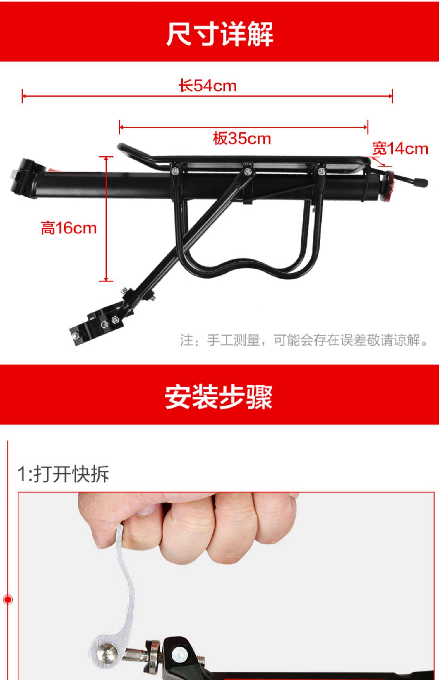 颜色分类 多功能货架(高碳钢/有绑带),多功能货架(铝合金/有绑带)铝合金更轻/赠工具,全快拆多功能货架【铝合金 可徒手安装 配工具】无绑带,多功能货架(铝合金)+货架绑带-黑红外出绑东西更方便,多功能后货架(铝合金)+后座脚踏板解放无放安放双脚,多功能货架(铝合金)+飞鱼泥板【仅加9.9元】,多功能货架(铝合金)+货架坐垫坐着更加舒适,多功能货架(铝合金)+黑色靠背坐垫坐着靠背更舒适,多功能货架(铝合金)+货架坐垫+后座脚踏板舒适+方便套餐,多功能货架(铝合金)+靠背坐垫+后座脚踏舒适度升级套餐,金属折叠车篮-黑色+多功能货架(铝合金)容量更大/携带方便,多功能货架(铝合金)+后置车框黑色大容量/外出更方便,★★★30天无理由退换货/赠运费险/免费试用★★★,★★★厂家直发/质保6月/以换代修/售后无忧★★★