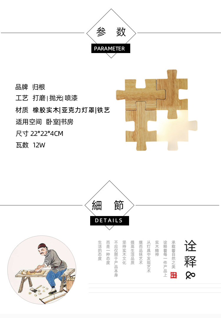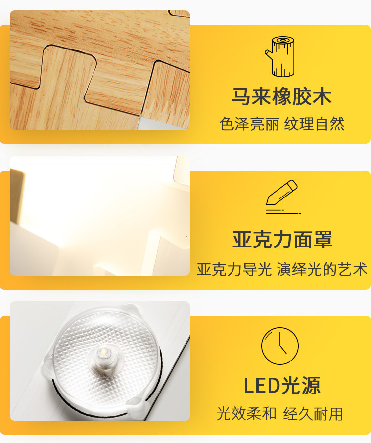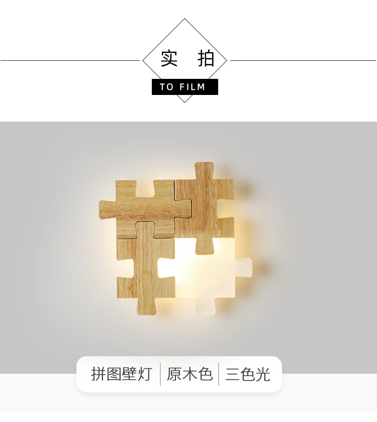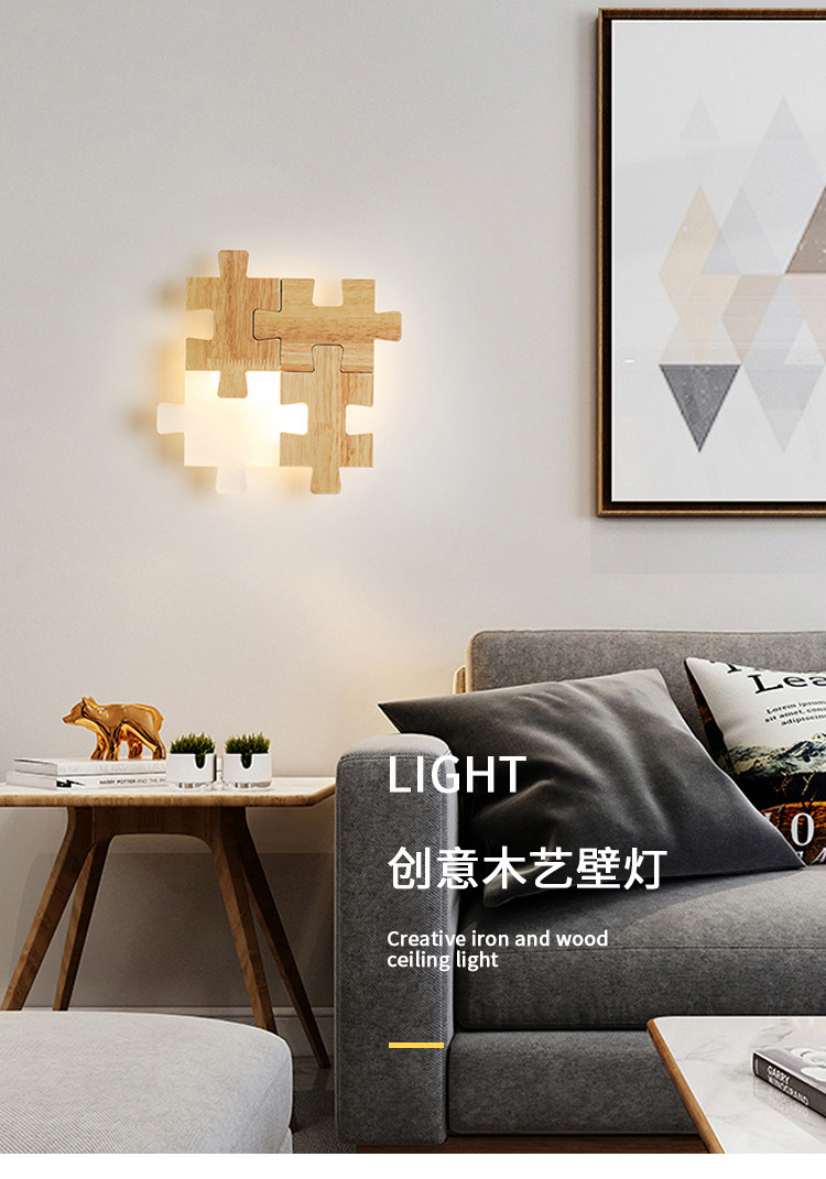 北欧床头过道LED壁灯组合拼图个性创意实木卧室房间超薄原木灯具