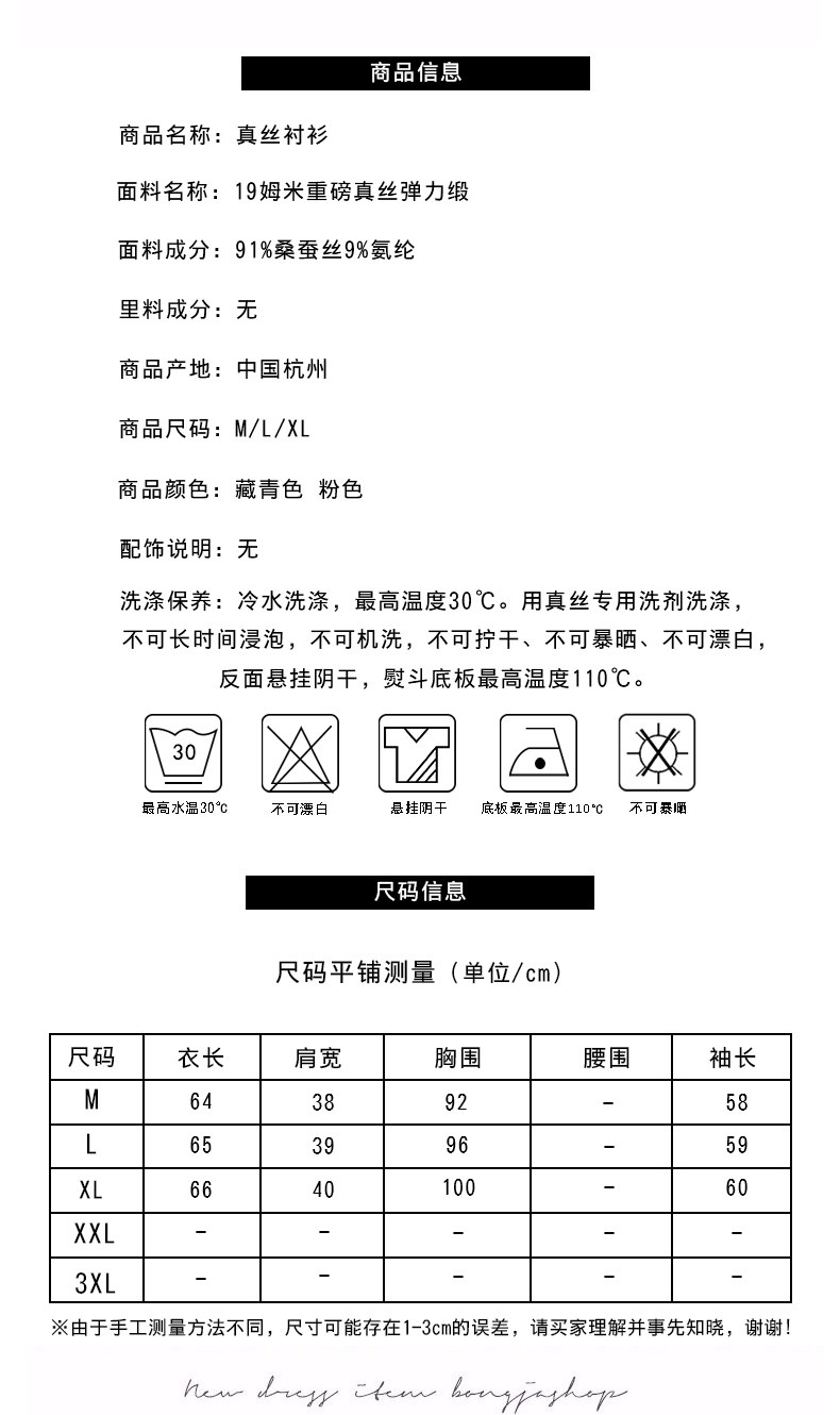 Material Composition 91% Mulberry Silk, 9% Spandex (Elastane)