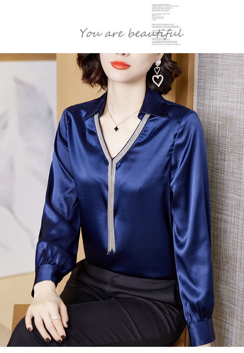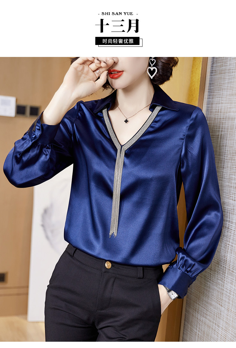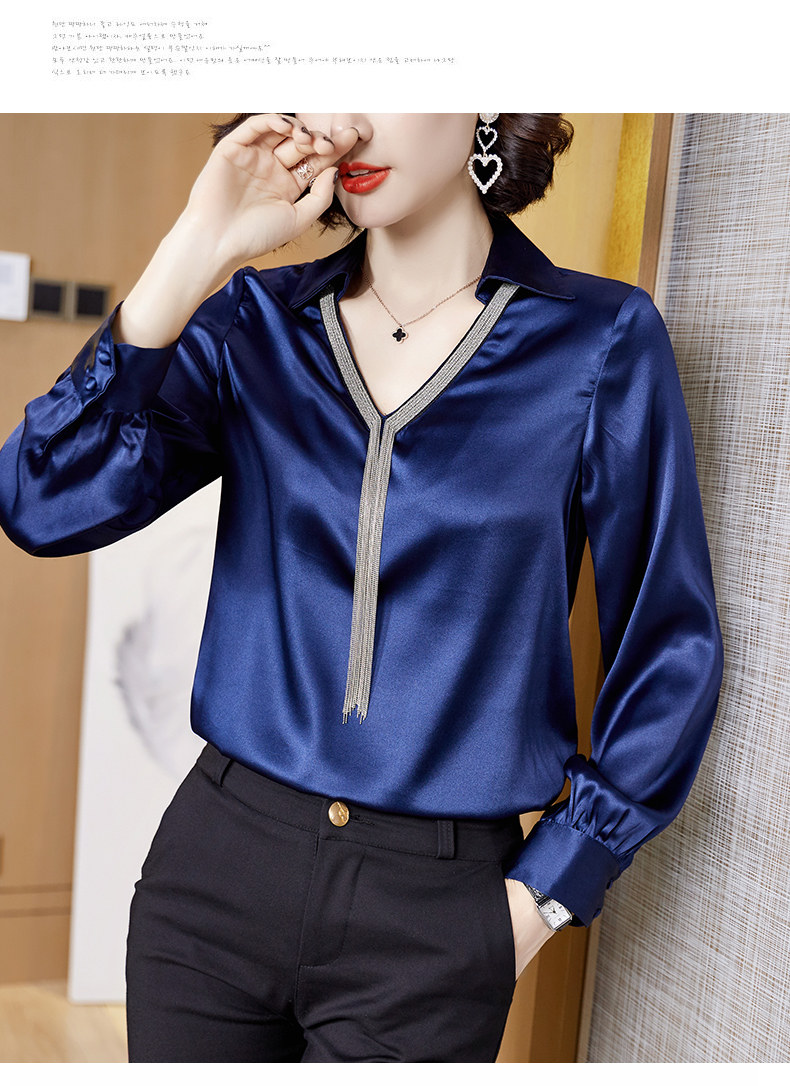 2025 Autumn New Korean Style Super Fairy Women's Shirt, Fashionable V-Neck Tassel Loose Silk Top Satin Shirt