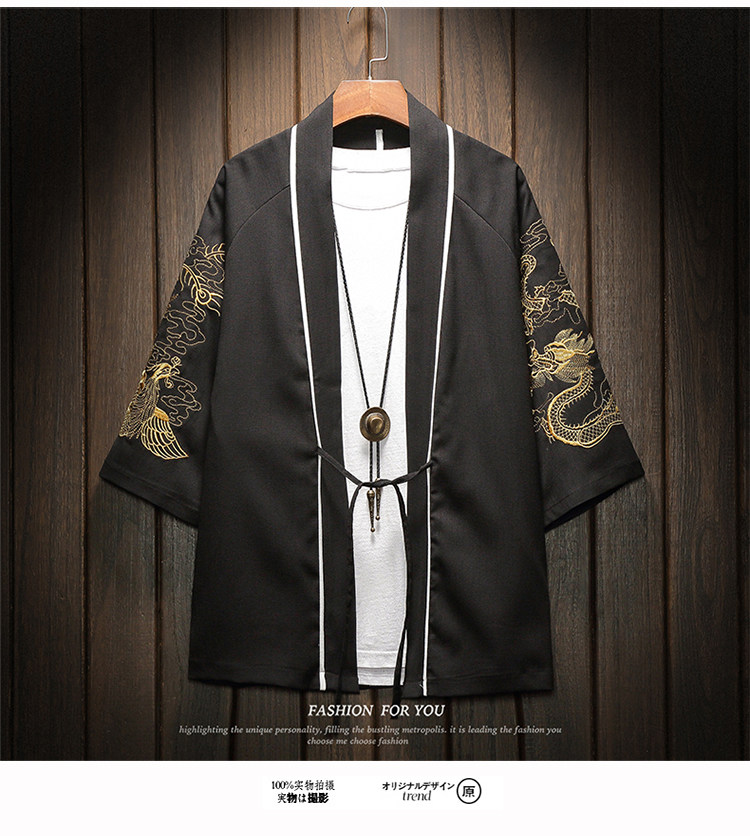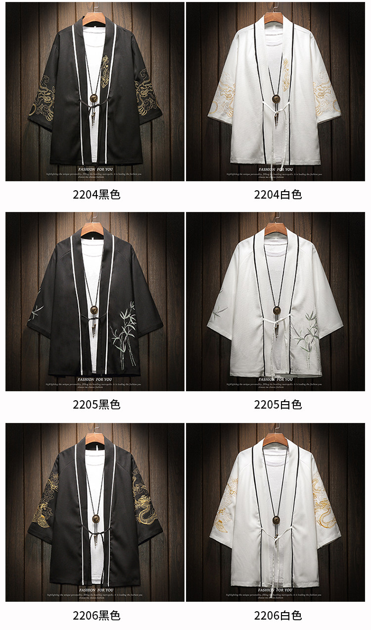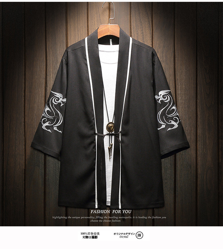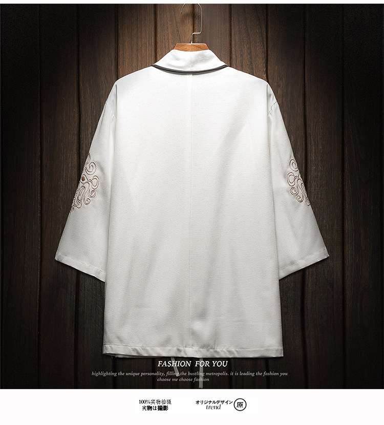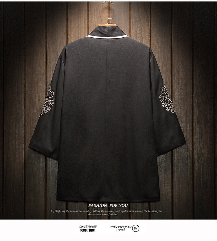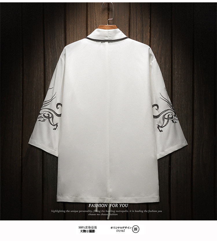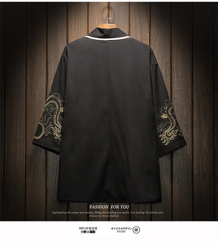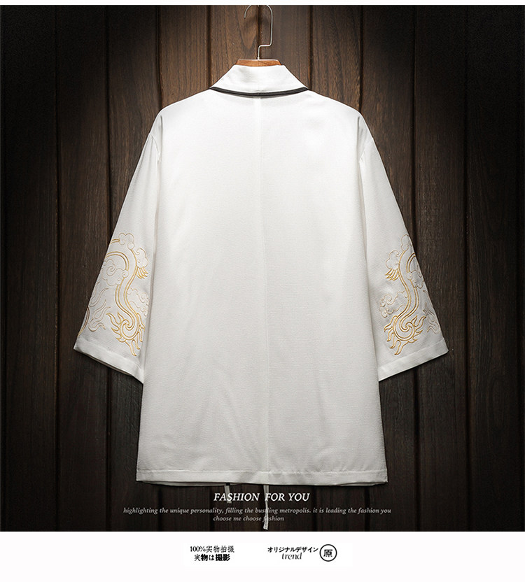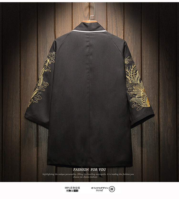 中国风刺绣龙袍开衫冰丝薄外套男夏季七分袖衬衫防晒衣服大码汉服