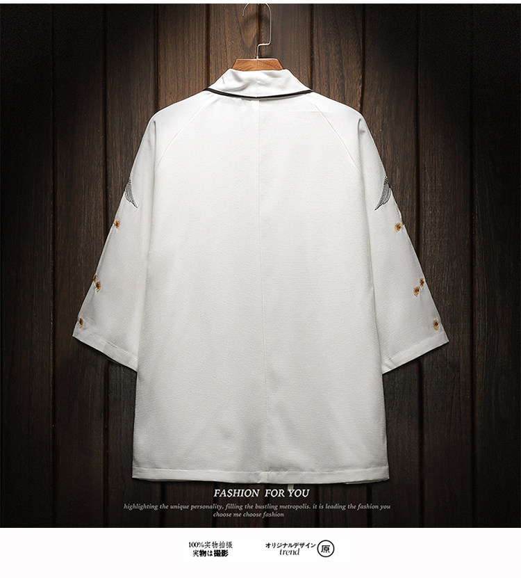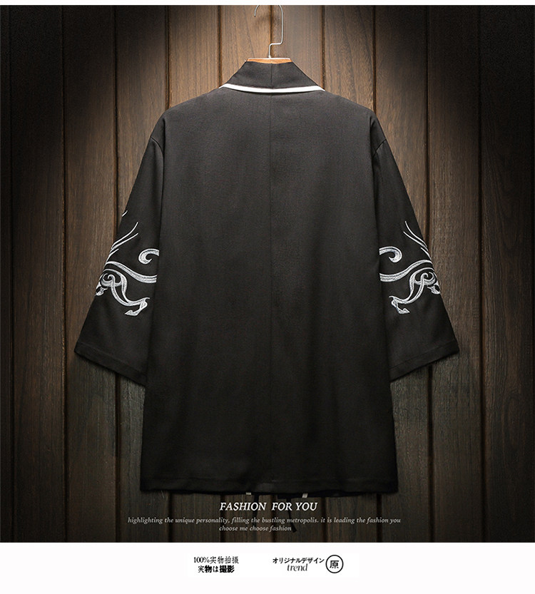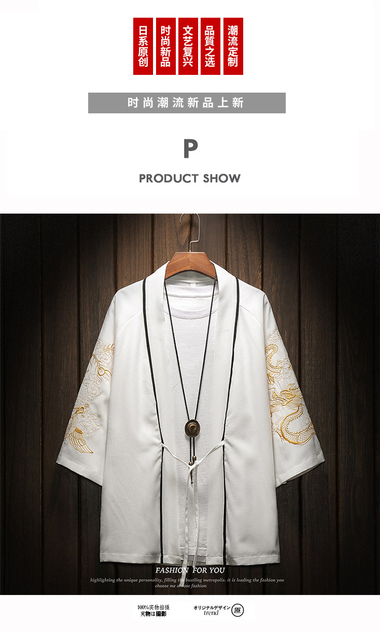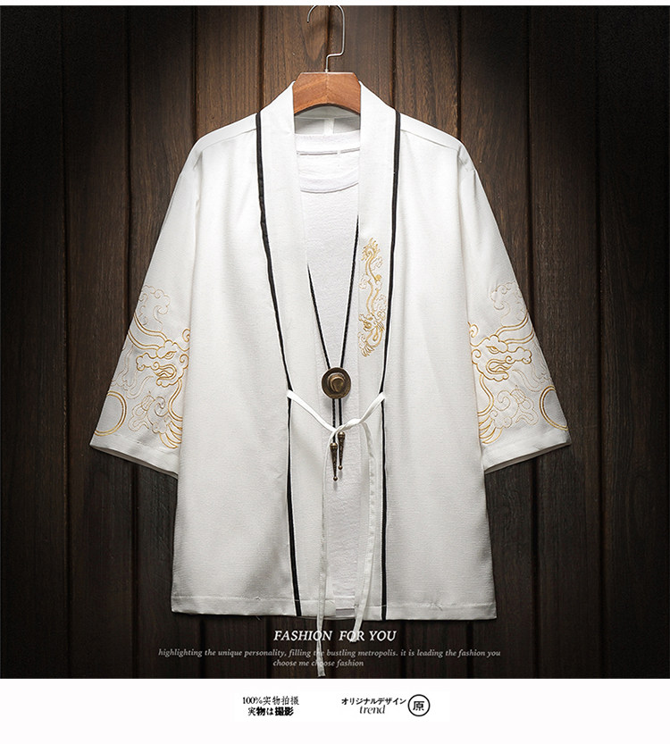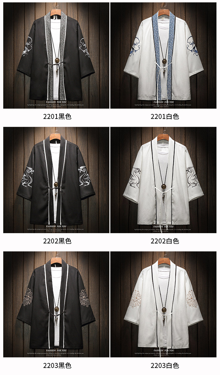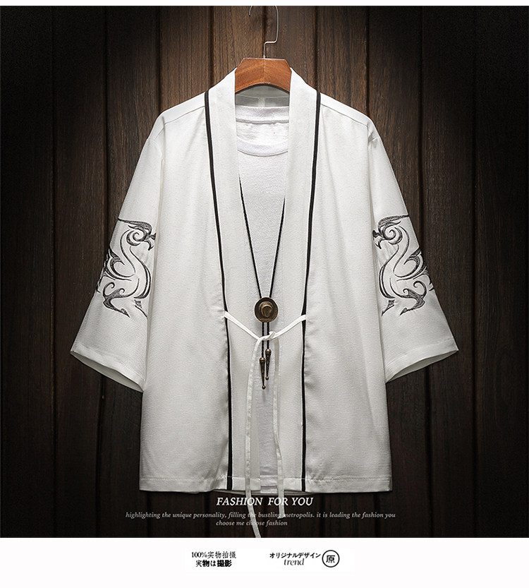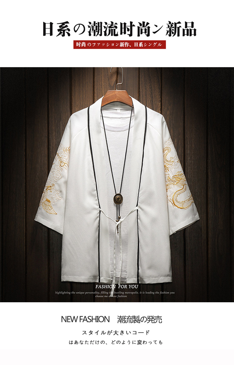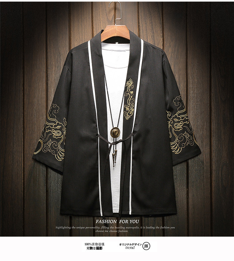 中国风刺绣龙袍开衫冰丝薄外套男夏季七分袖衬衫防晒衣服大码汉服