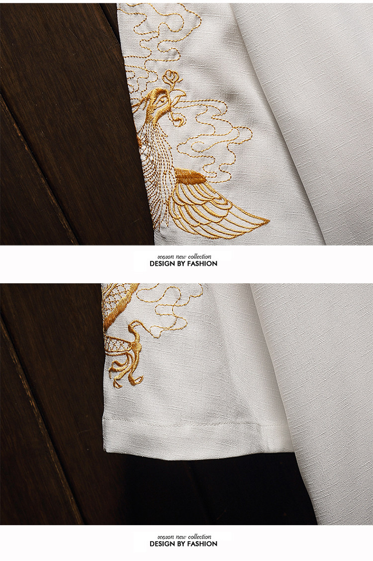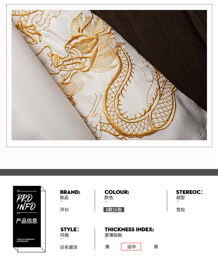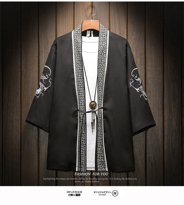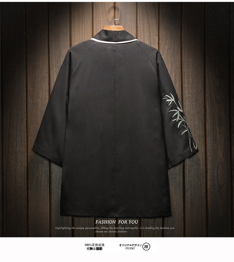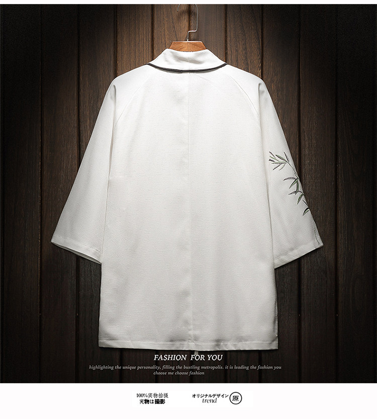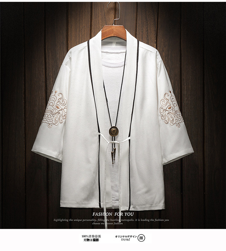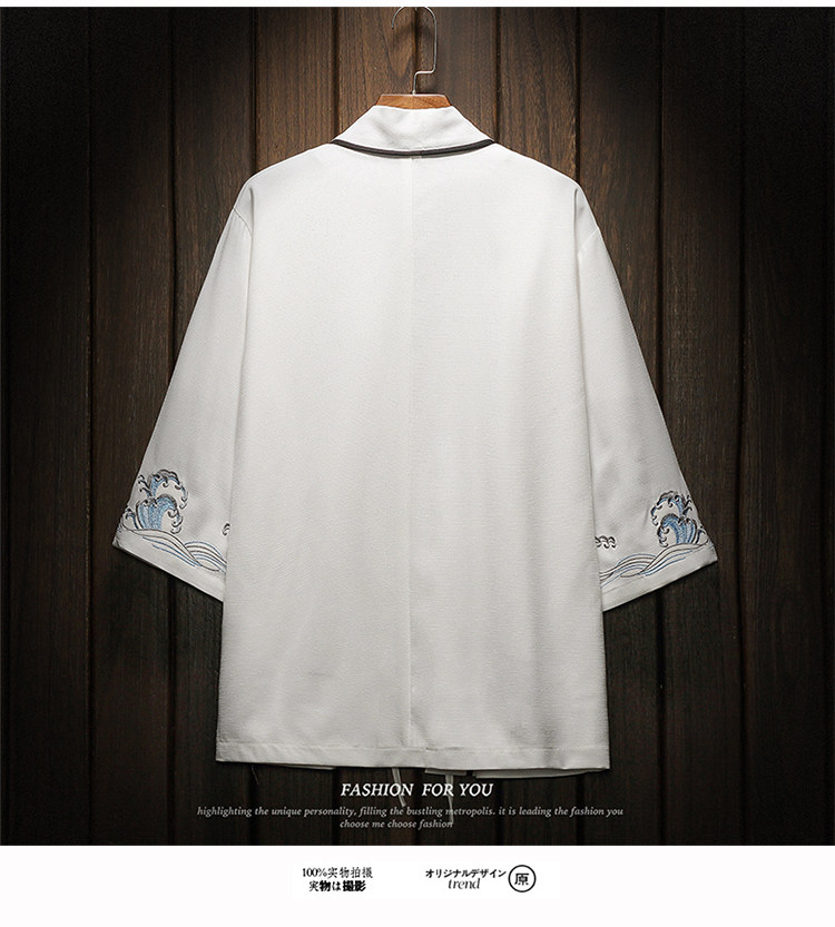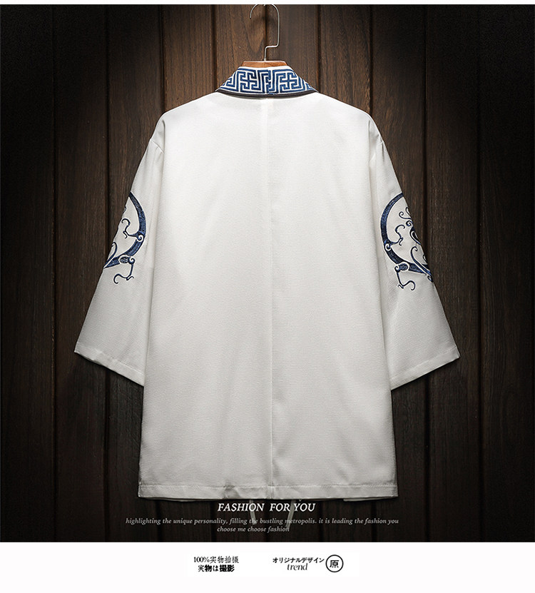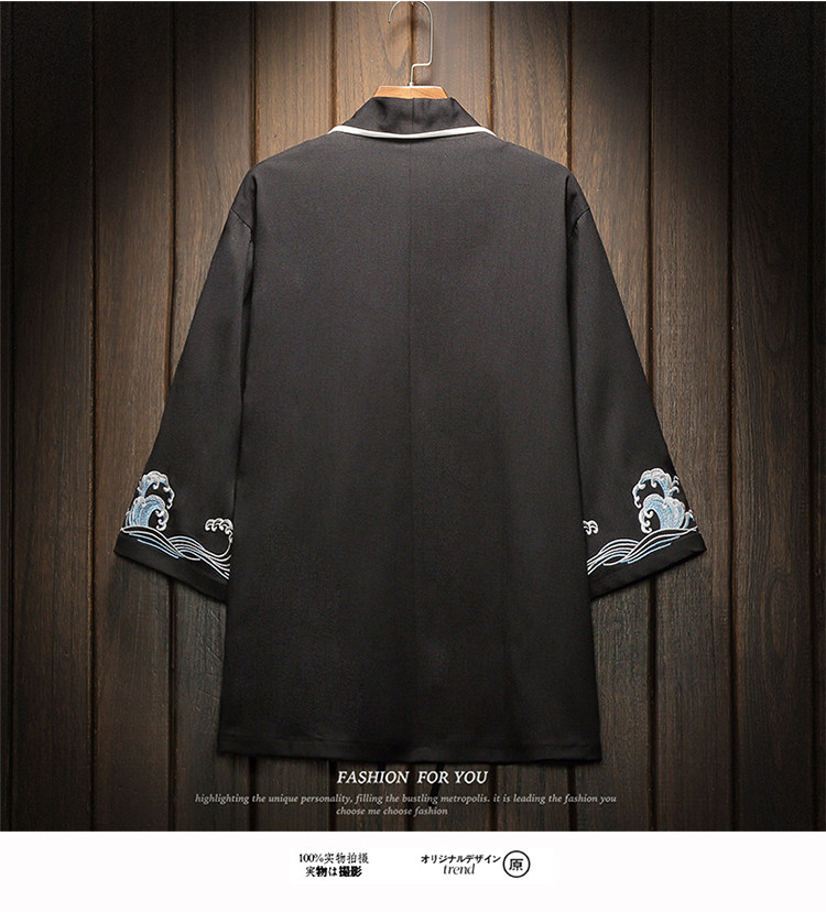 中国风刺绣龙袍开衫冰丝薄外套男夏季七分袖衬衫防晒衣服大码汉服
