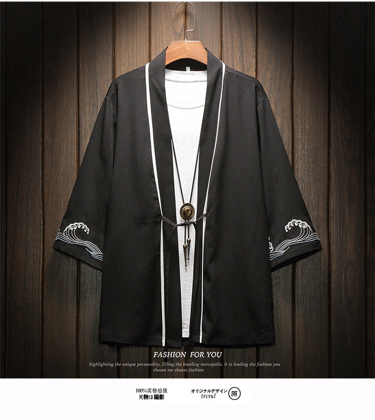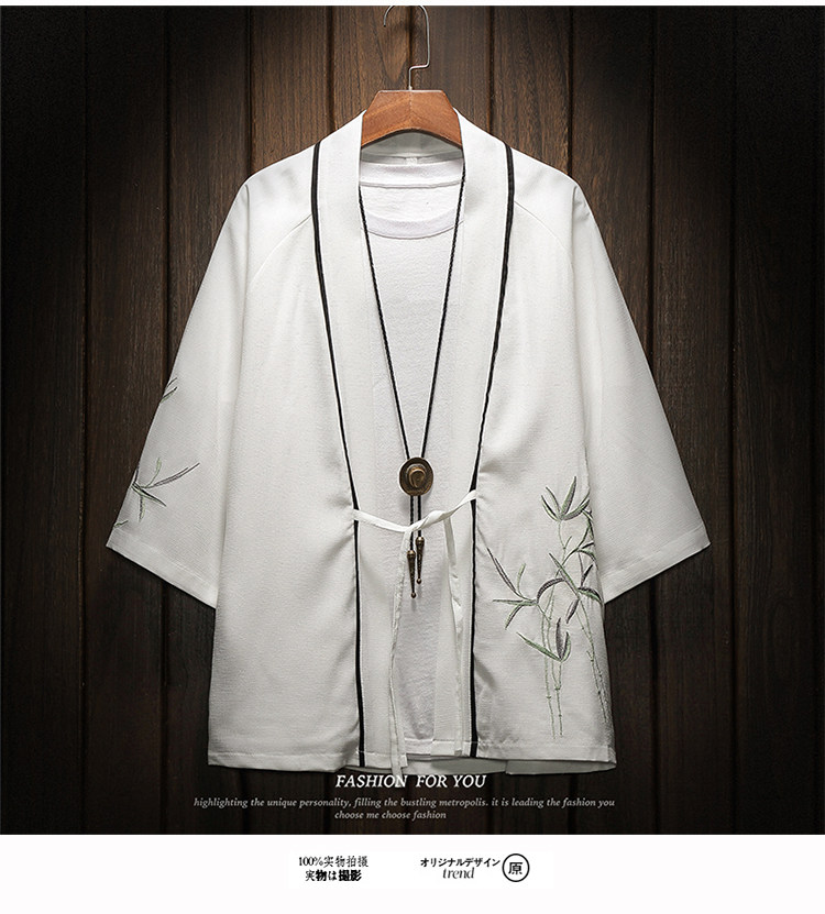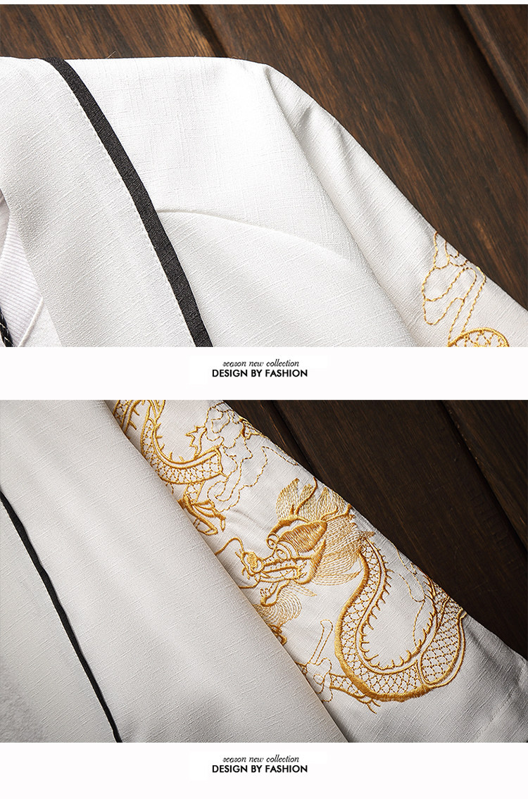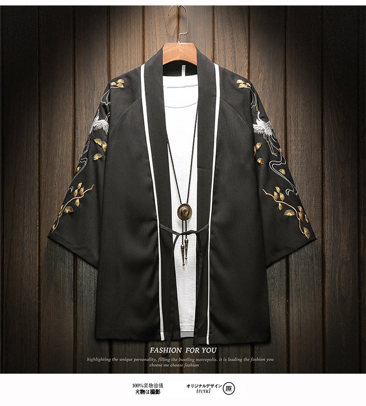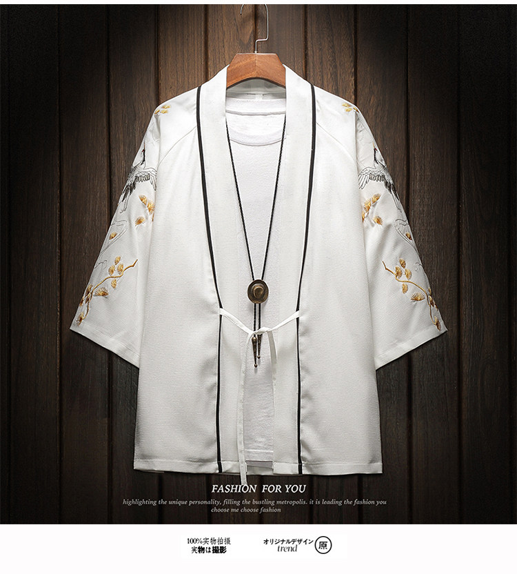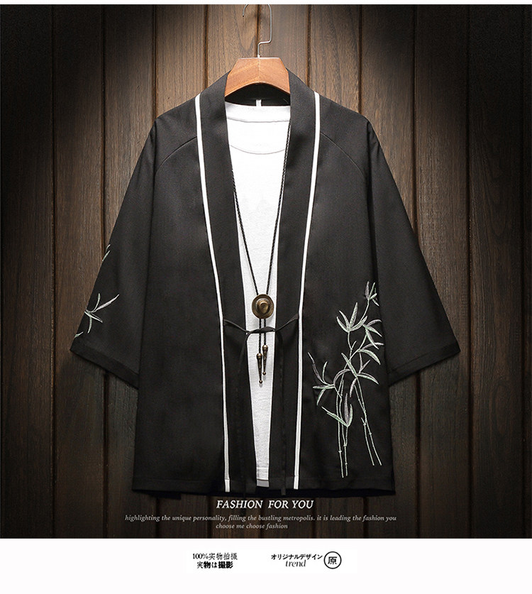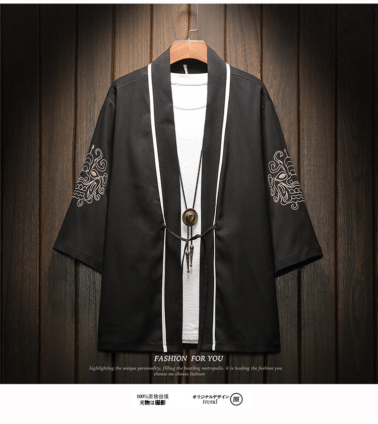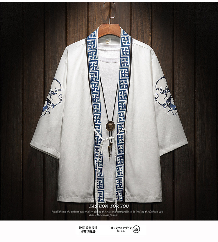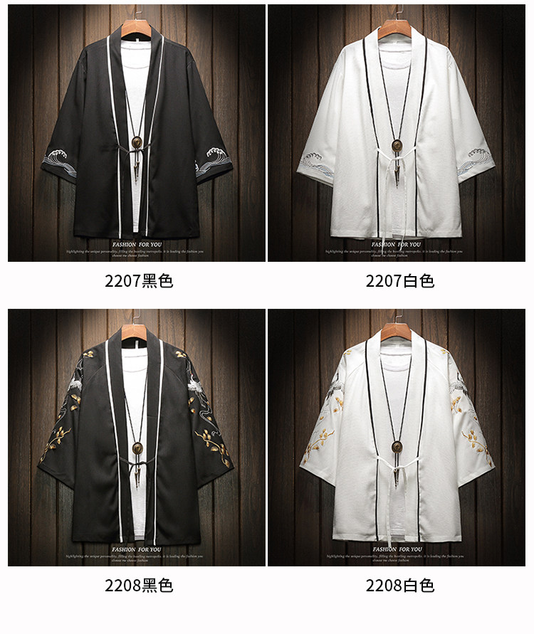 中国风刺绣龙袍开衫冰丝薄外套男夏季七分袖衬衫防晒衣服大码汉服