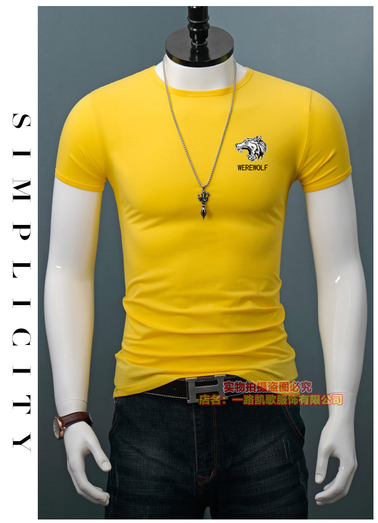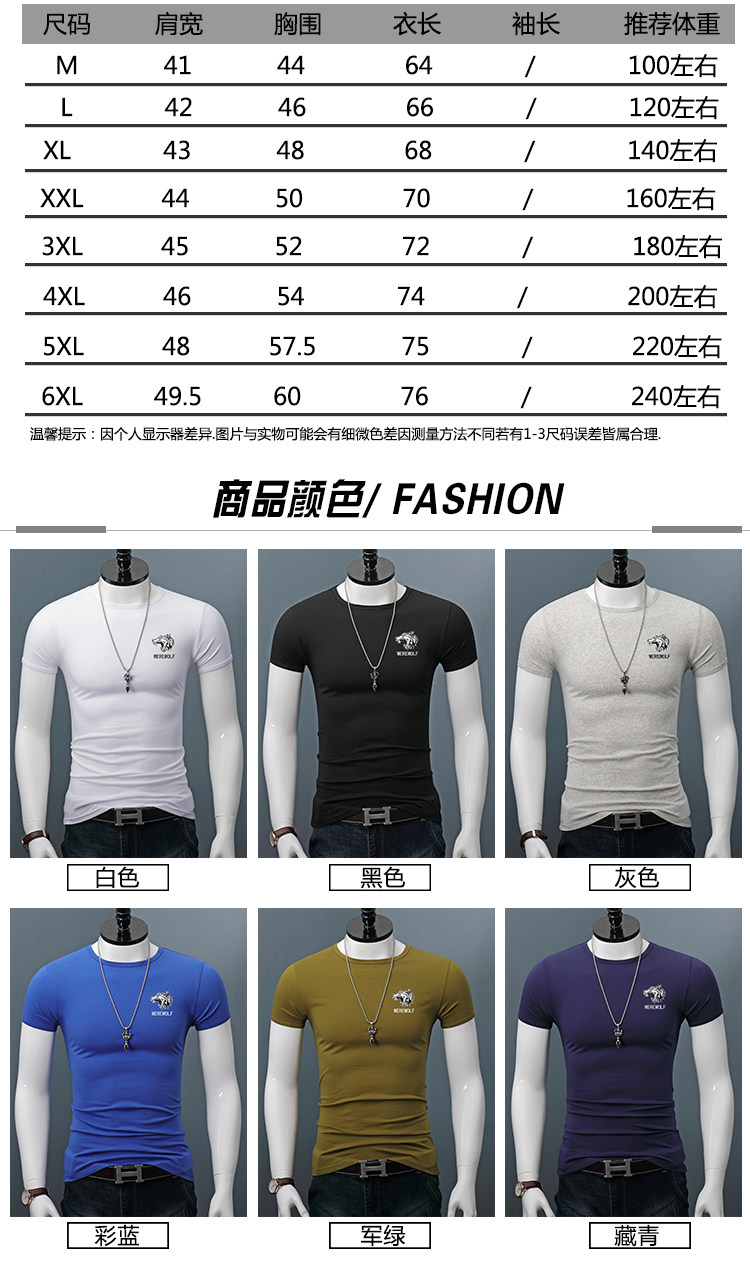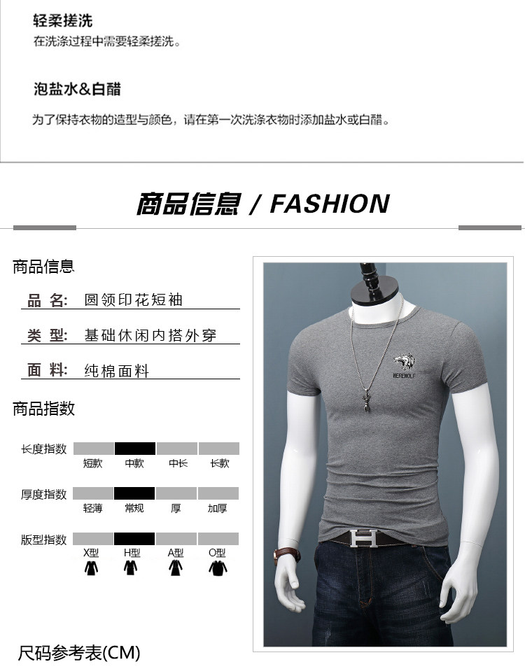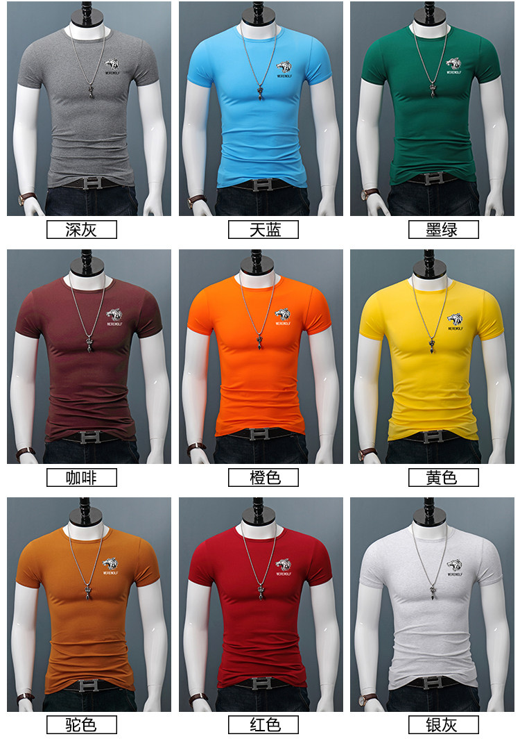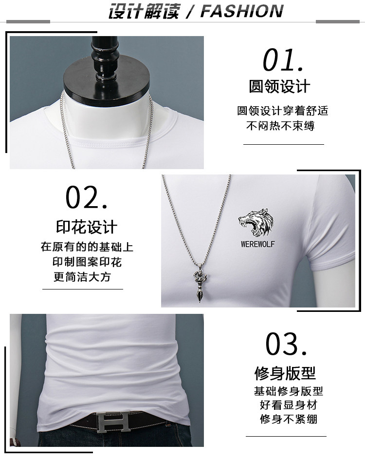 印花短袖T恤男士修身夏季圆领半袖百搭紧身休闲上衣体恤打底衫潮