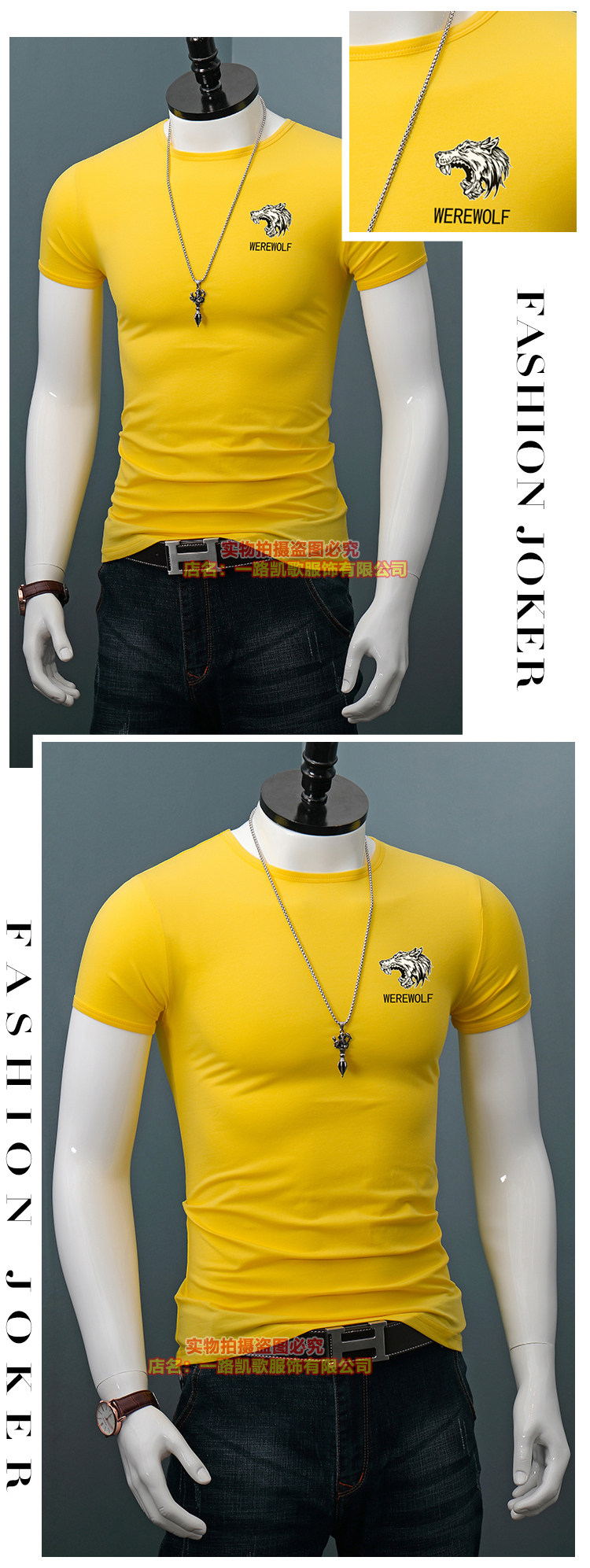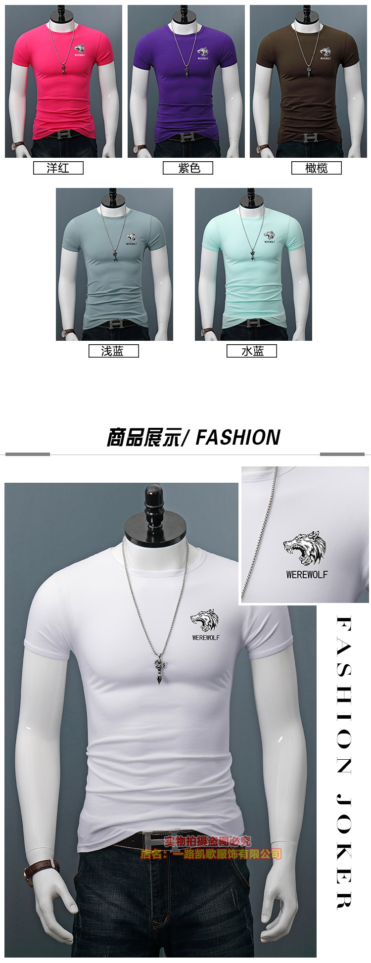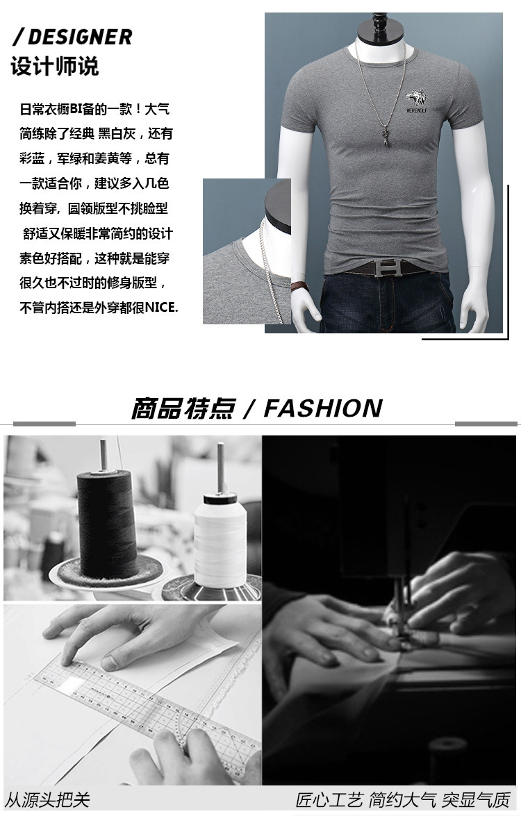 印花短袖T恤男士修身夏季圆领半袖百搭紧身休闲上衣体恤打底衫潮