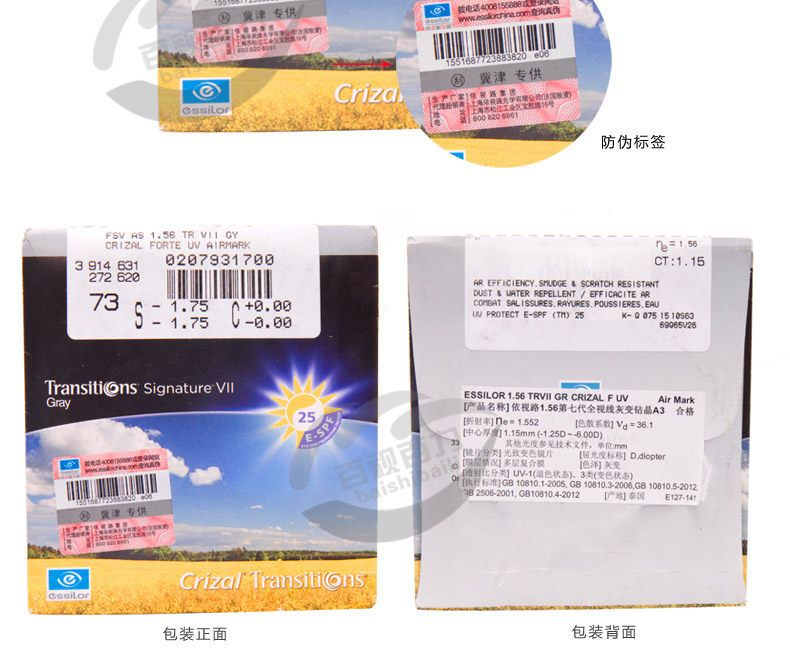 正品依视路1.56/1.60/1.67全视线第八代变色灰变非球钻晶A+镜片