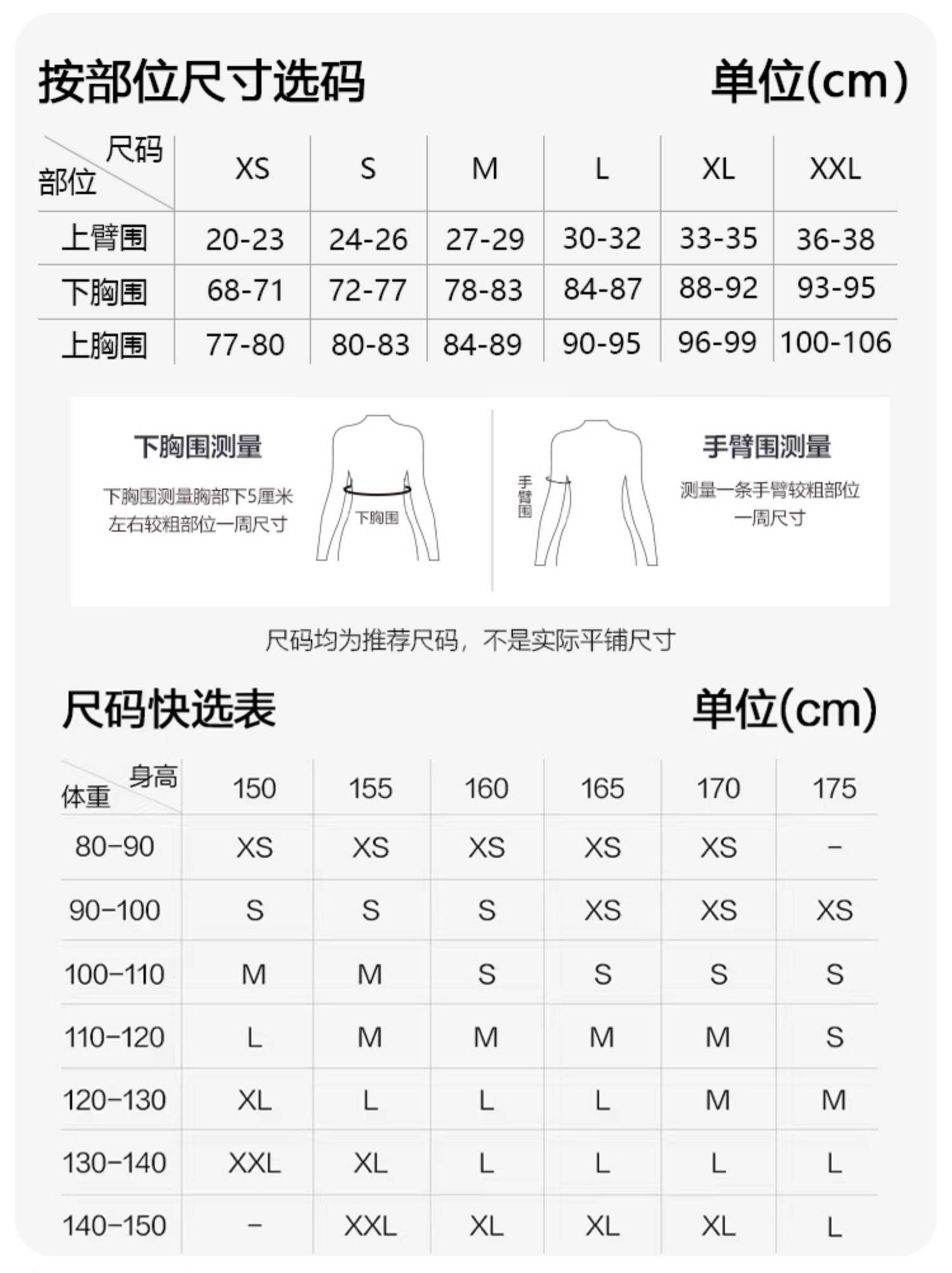 China (cm) 160-165/84-86 165-170 / 88-90 167-172 / 92-96 168-173 / 98-102 170-176 / 106-110