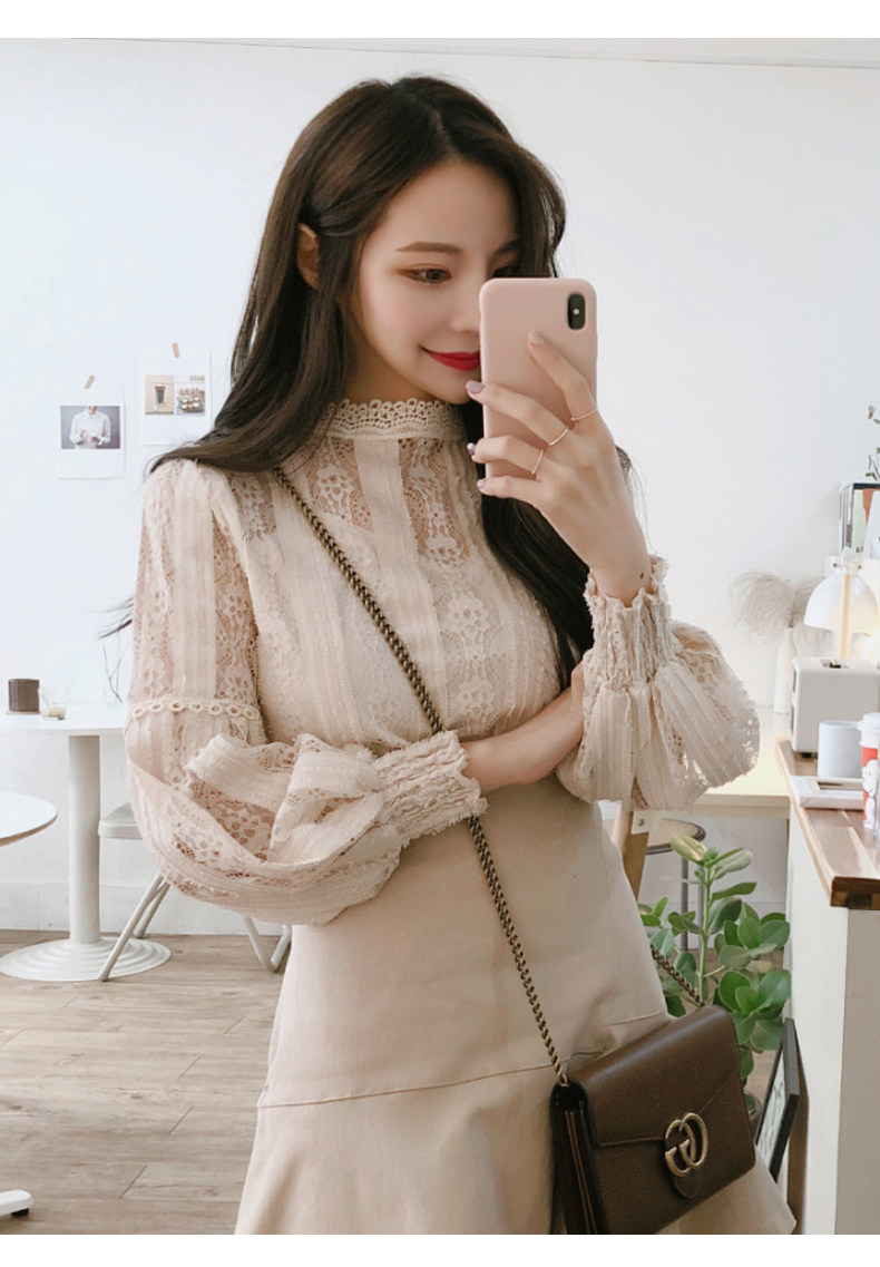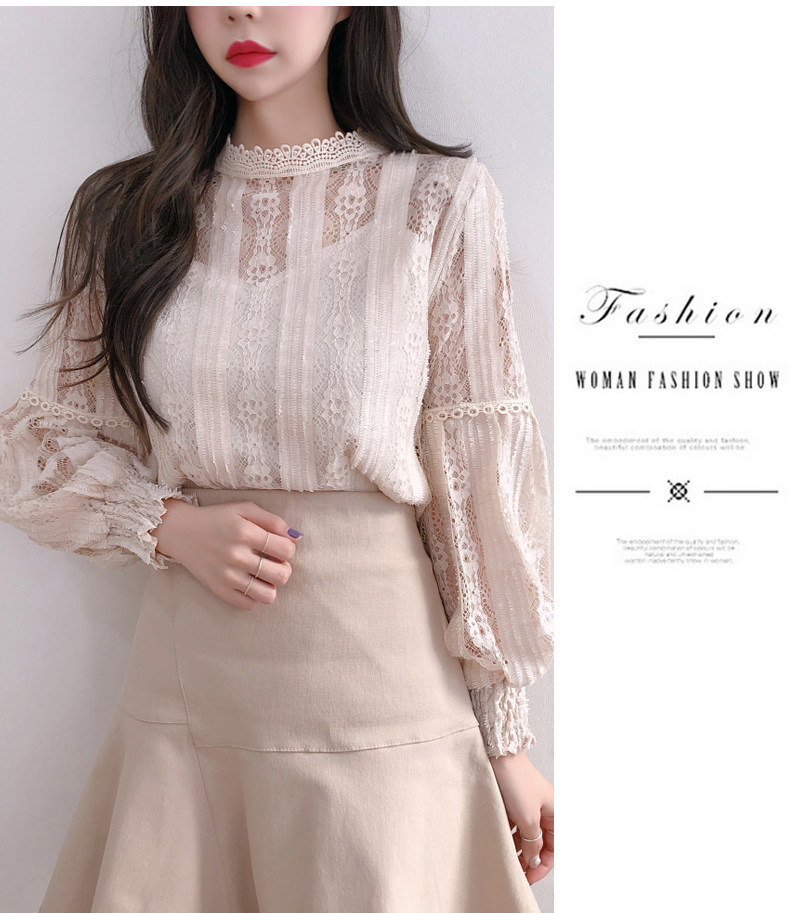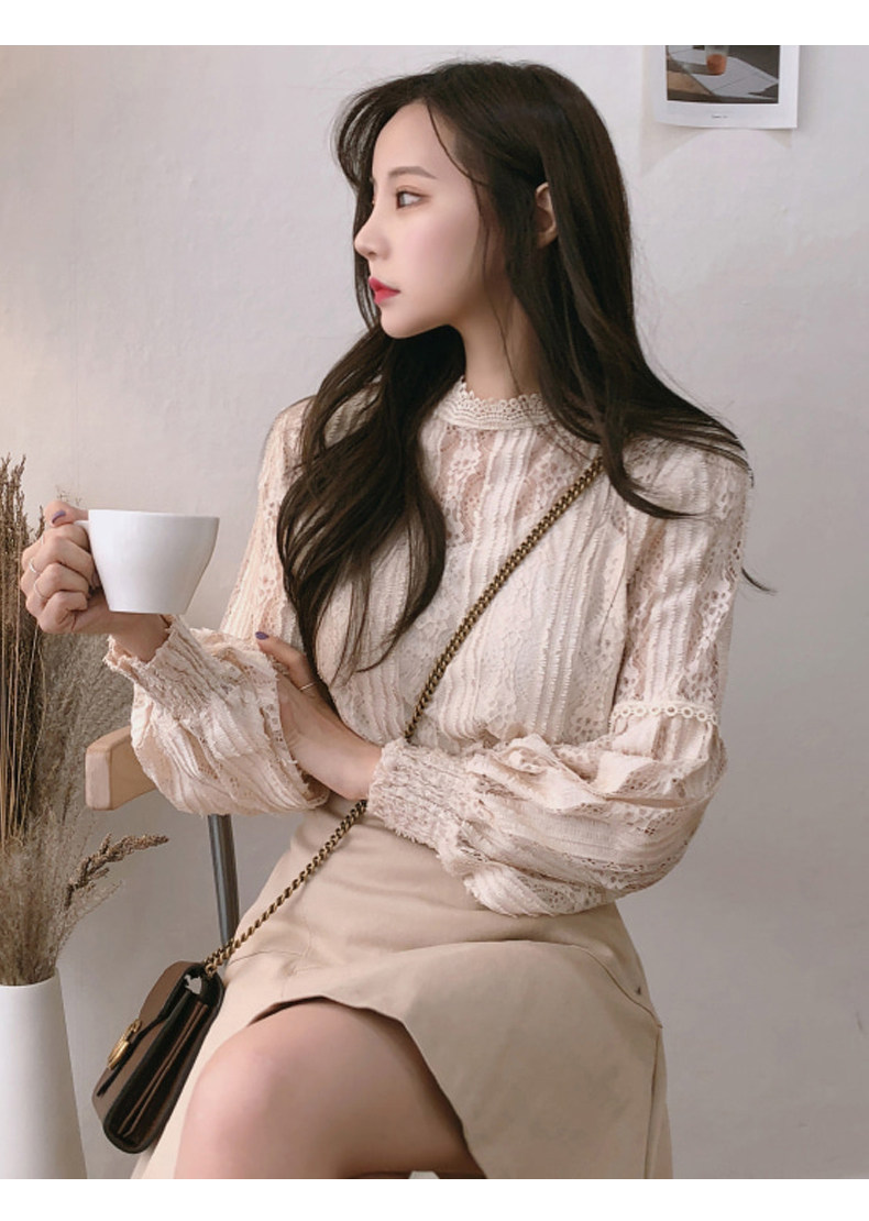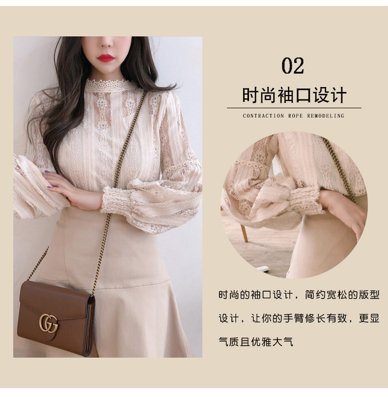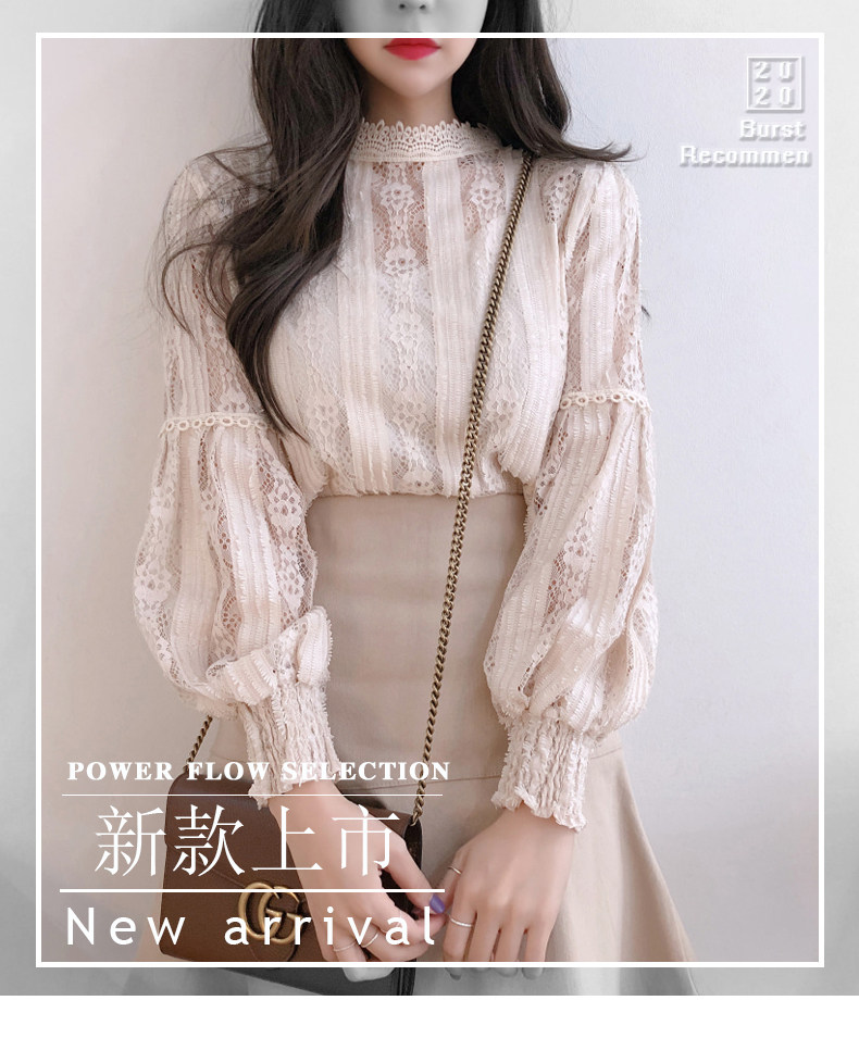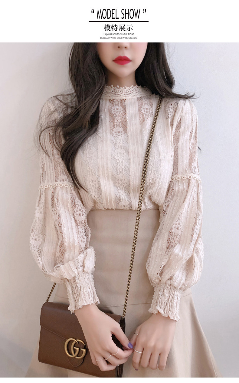 Lace Base Shirt for Women, Long-Sleeved, Super Fairy-Like, 2025 Spring Inner Shirt, Stylish Lantern Sleeves, Tummy-Covering Mesh Top