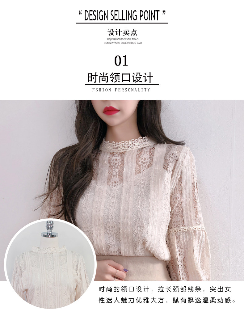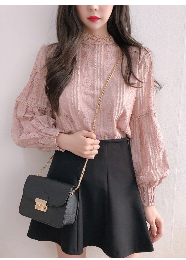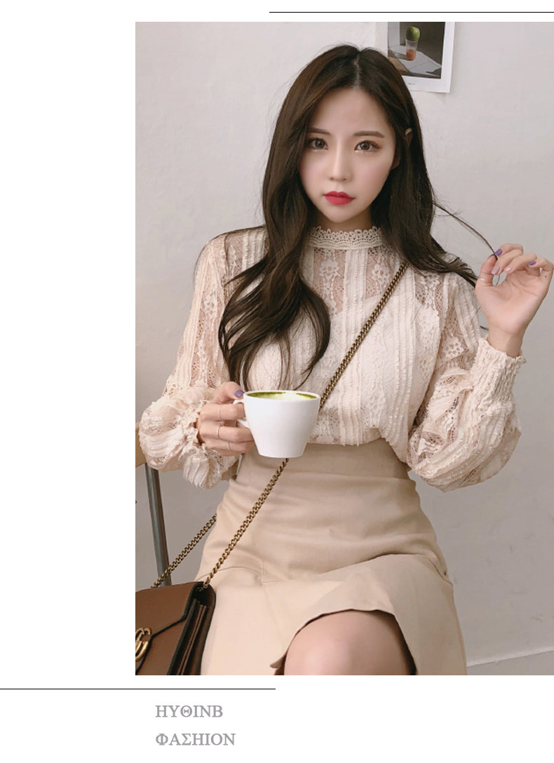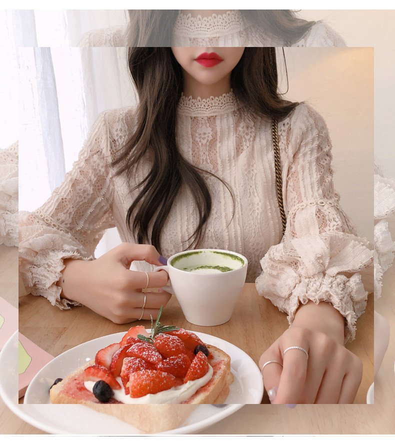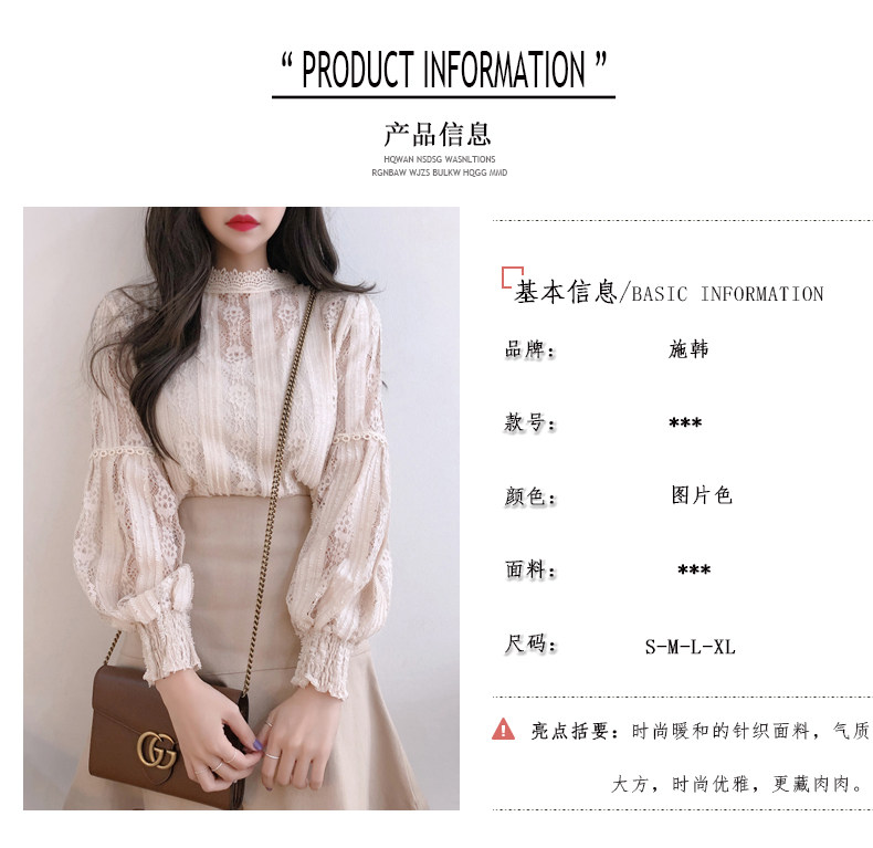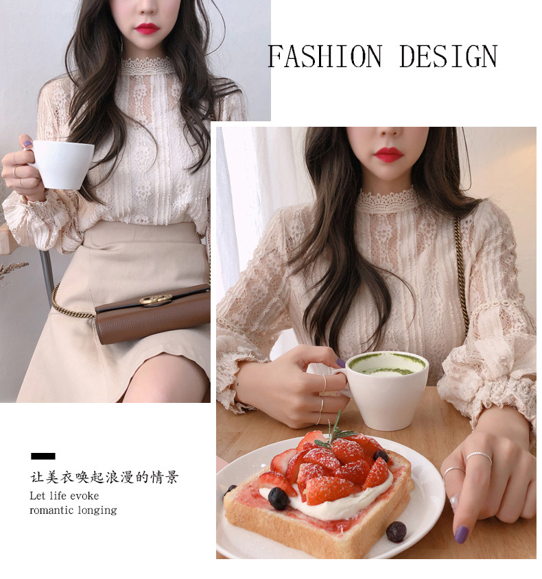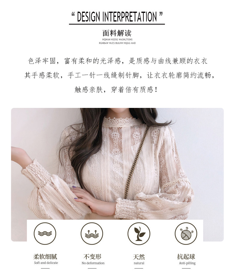 Lace Base Shirt for Women, Long-Sleeved, Super Fairy-Like, 2025 Spring Inner Shirt, Stylish Lantern Sleeves, Tummy-Covering Mesh Top