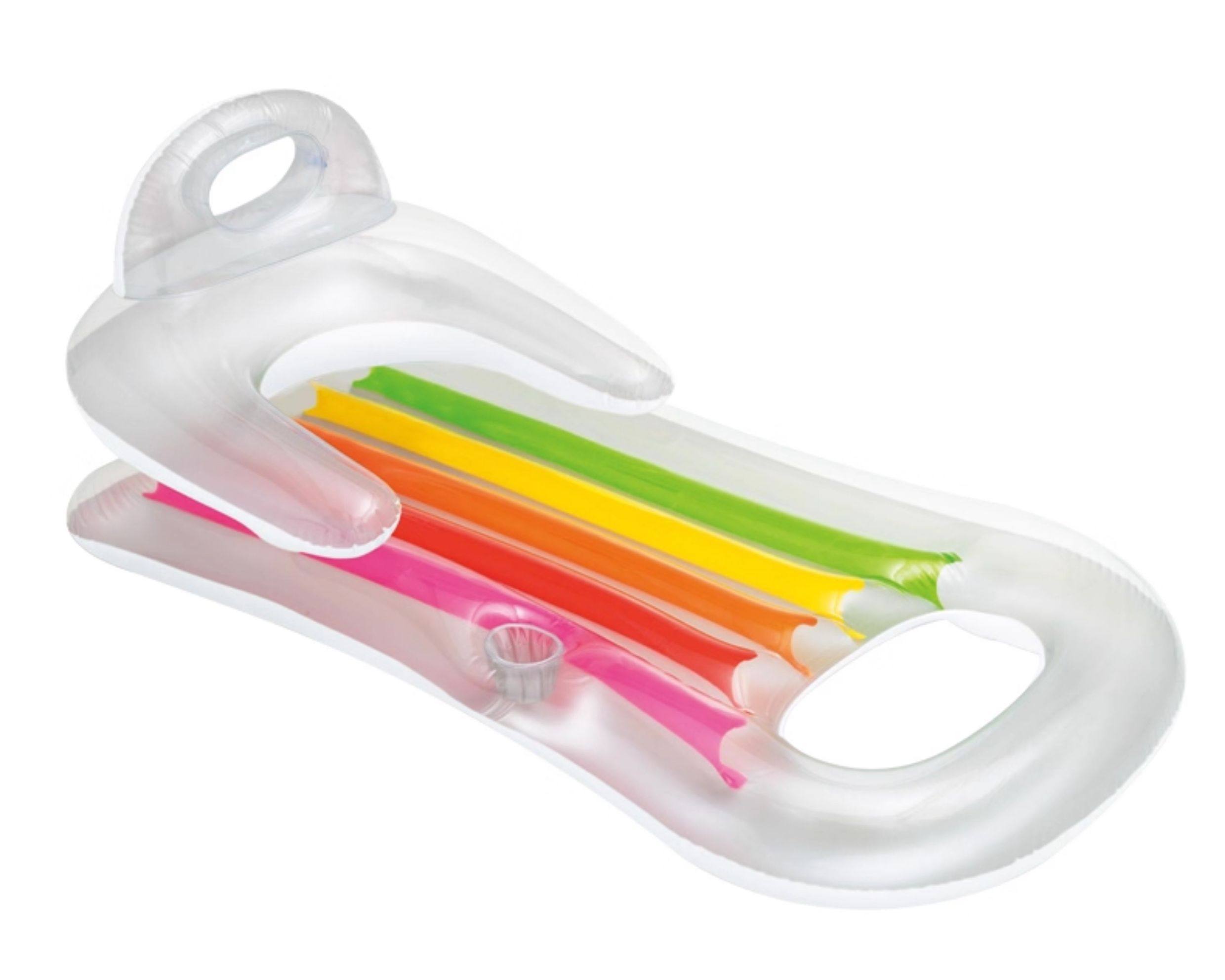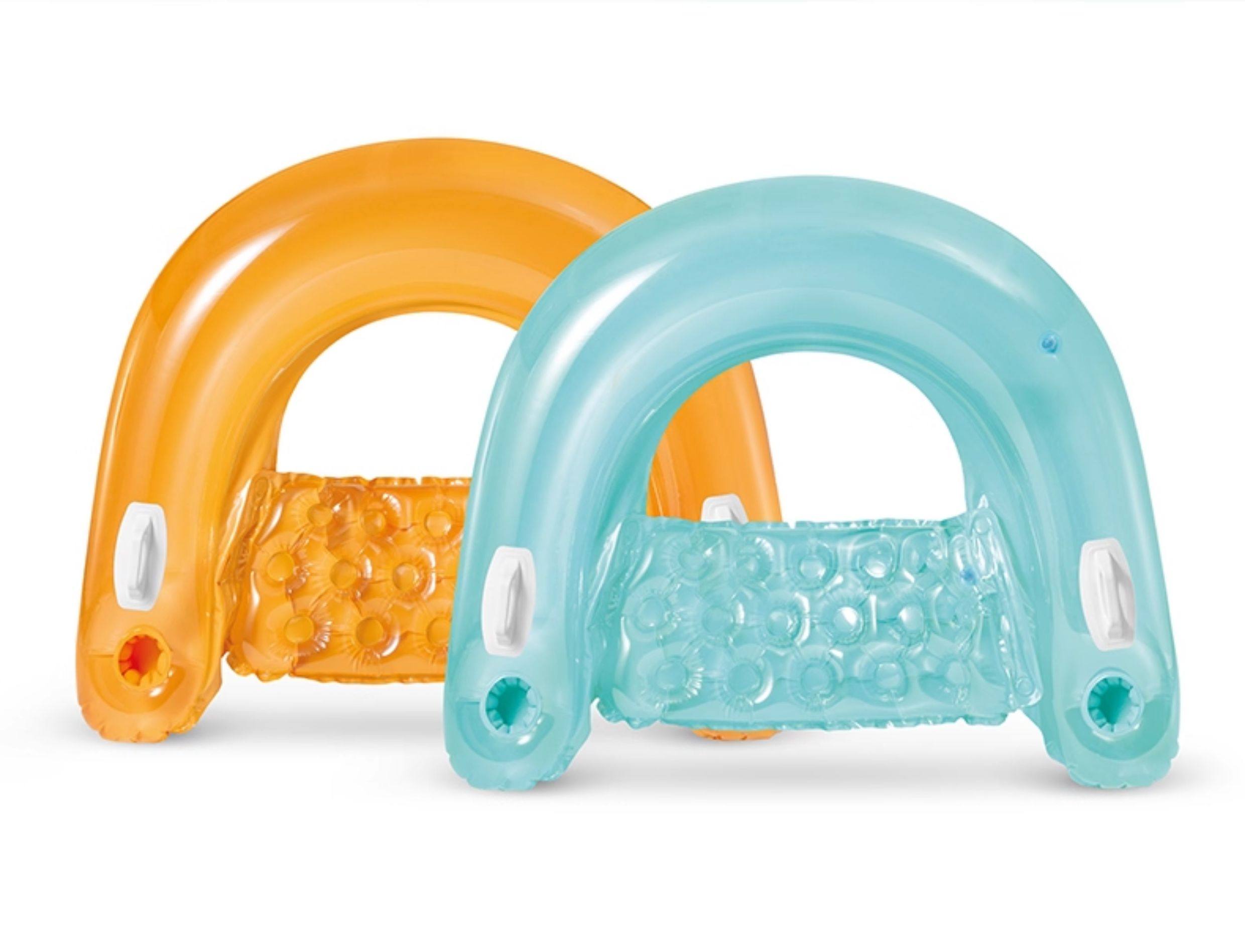 Sort by color Special offer: chair with handle - pink, foot pump included,Seat with handle-orange with foot pump,Seat with handle-blue with foot pump,Recliner with armrests-Blue Rainbow with foot pump,Recliner with armrests-transparent rainbow with foot pump