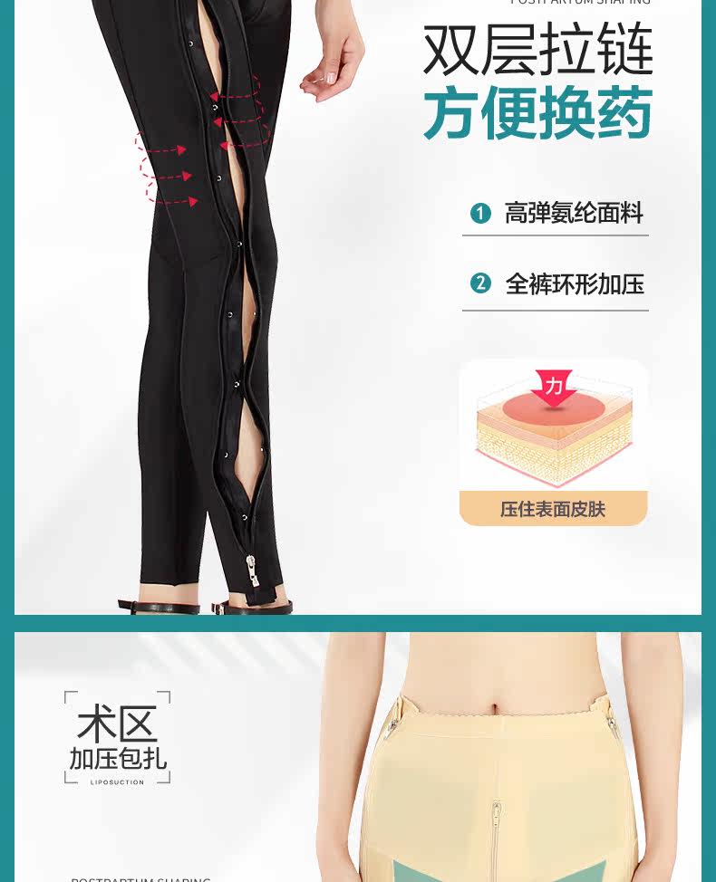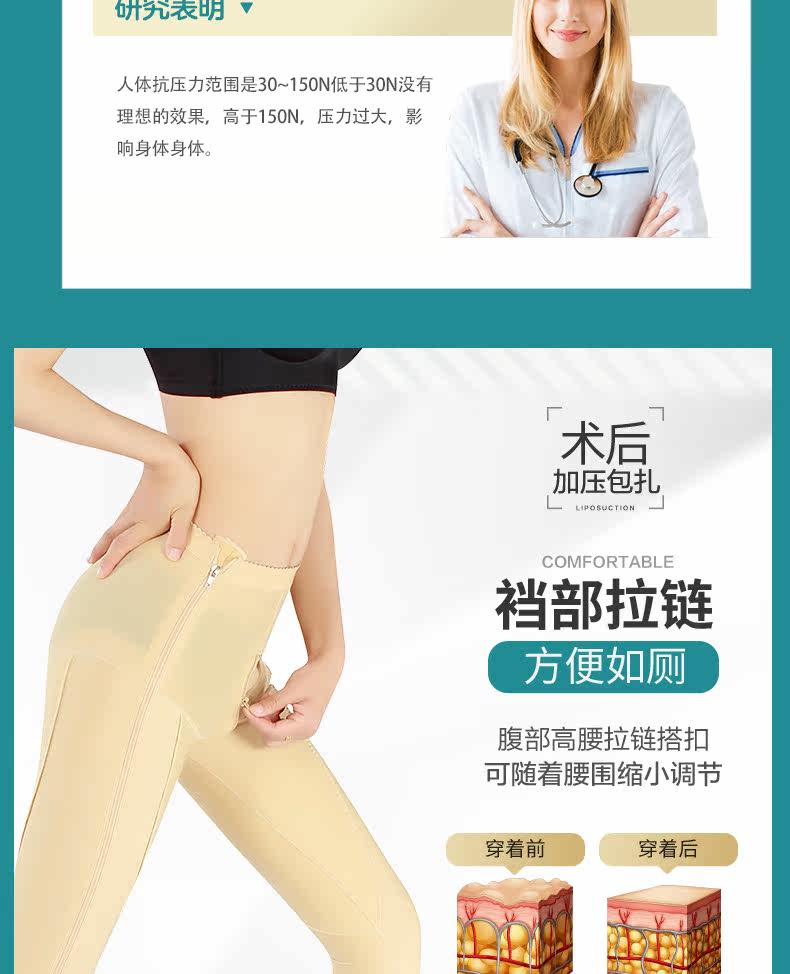Yiqian Phase-I-Fettabsaugung, körperformende Hose nach der Operation, Fettabsaugung, formende Hose, Bauchkontrolle, Gesäßstraffung, doppelter Reißverschluss, verstärkte Beinhose