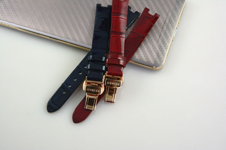 Оригинальный ремешок для часов Leimai 6163 для женщин, 14 мм, застежка-бабочка, блестящая кожа, темно-красный, бордовый, синий, вогнутый профиль, натуральная кожа.