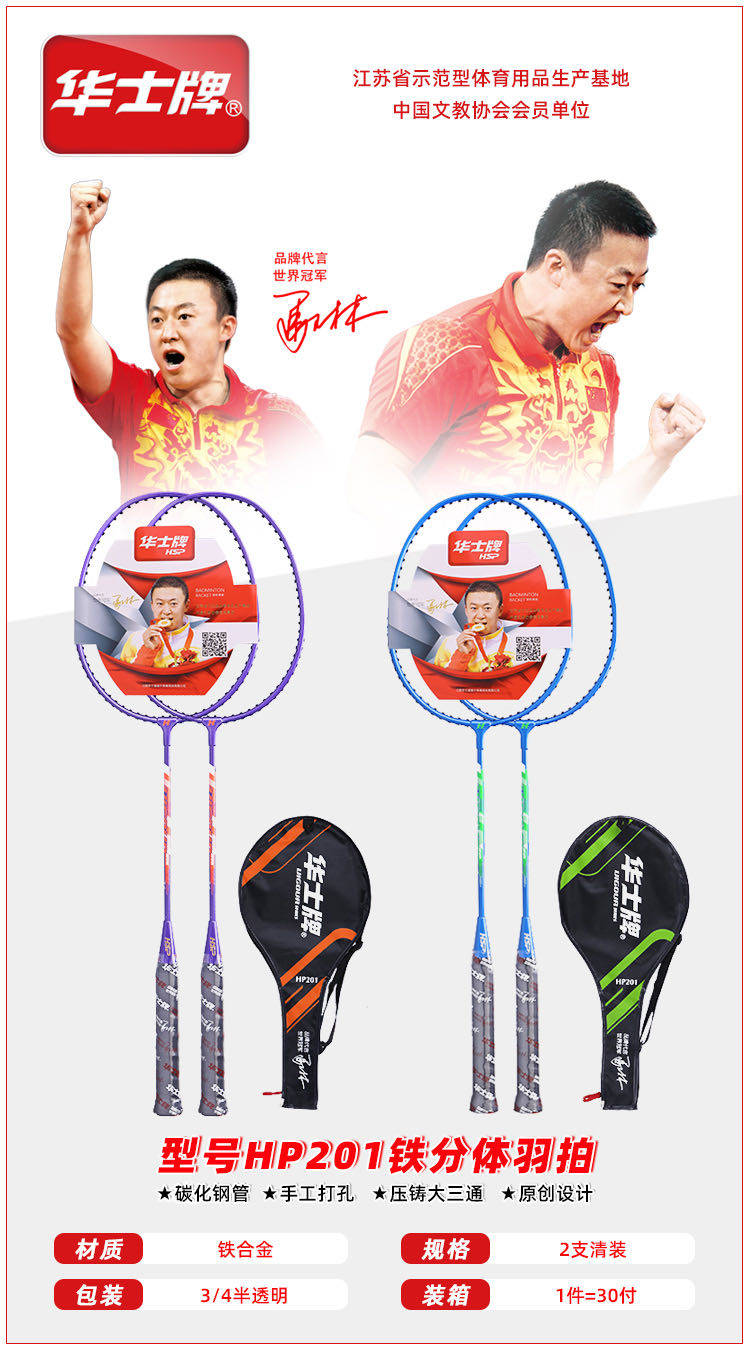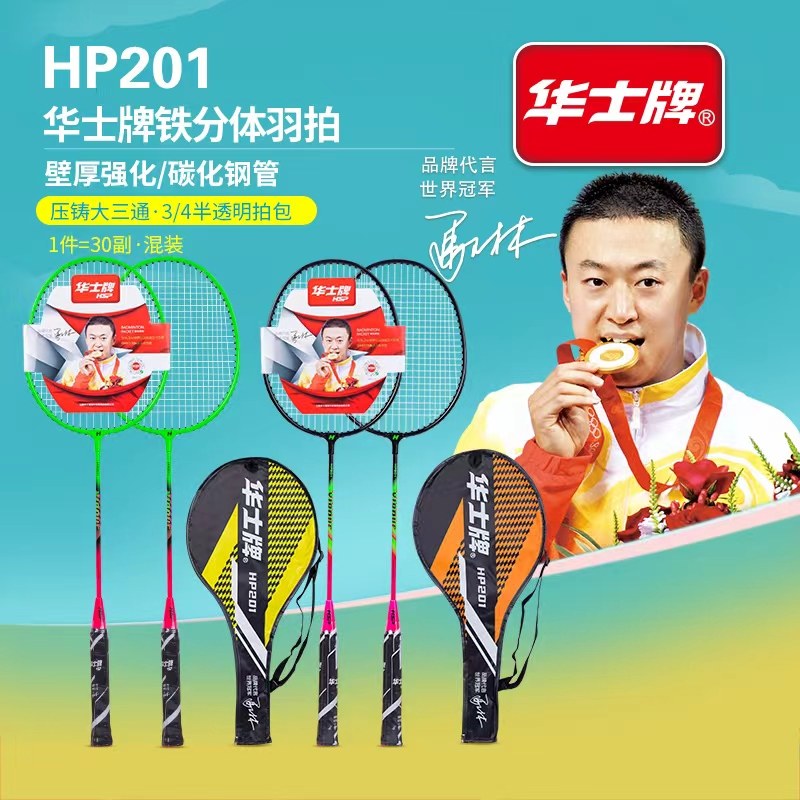 华士HP201羽毛球拍 家庭情侣训练初级练习专用羽拍2只装三球手胶