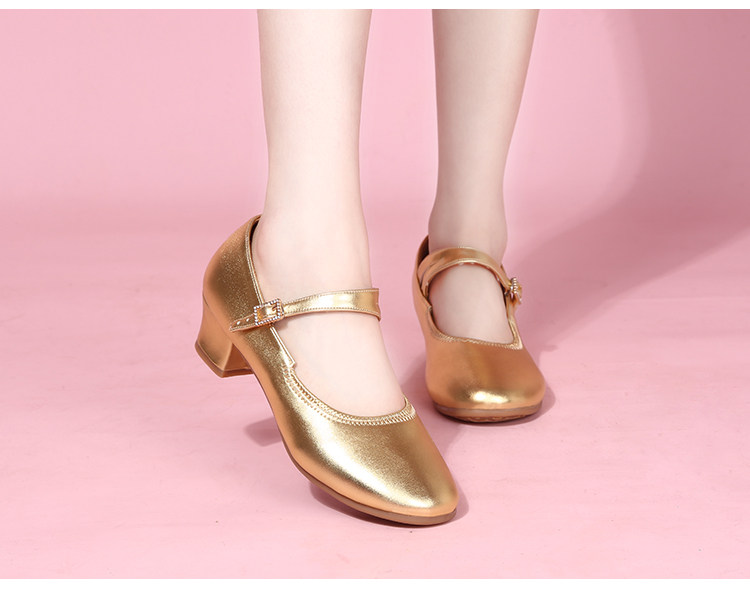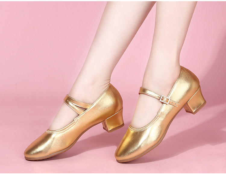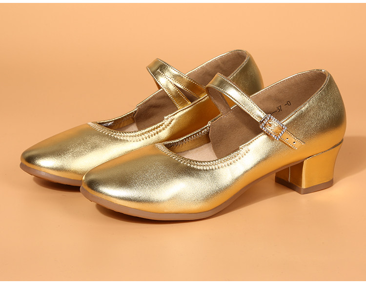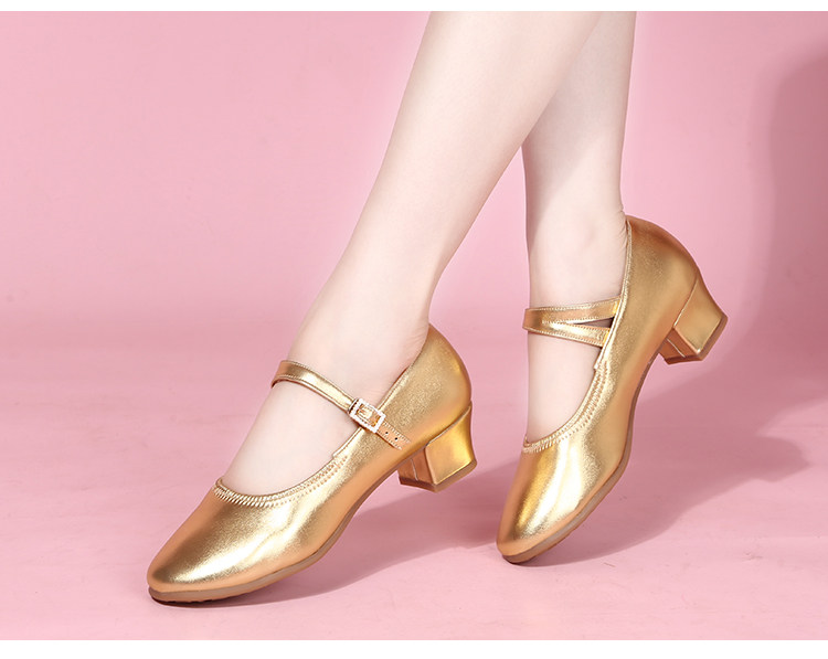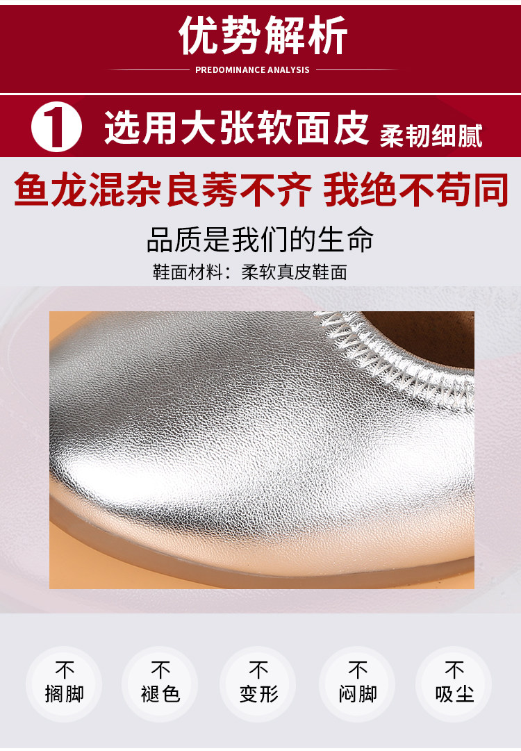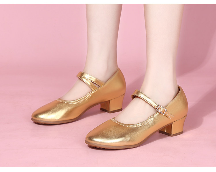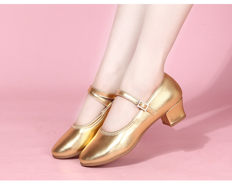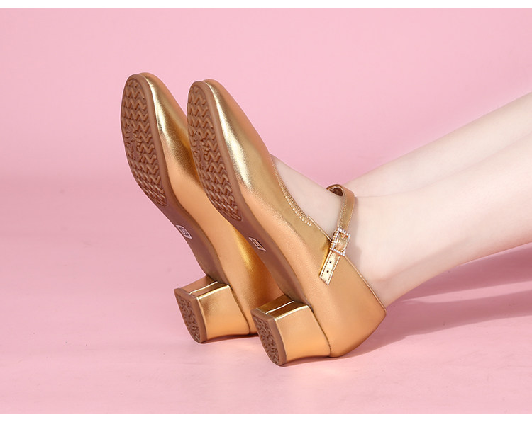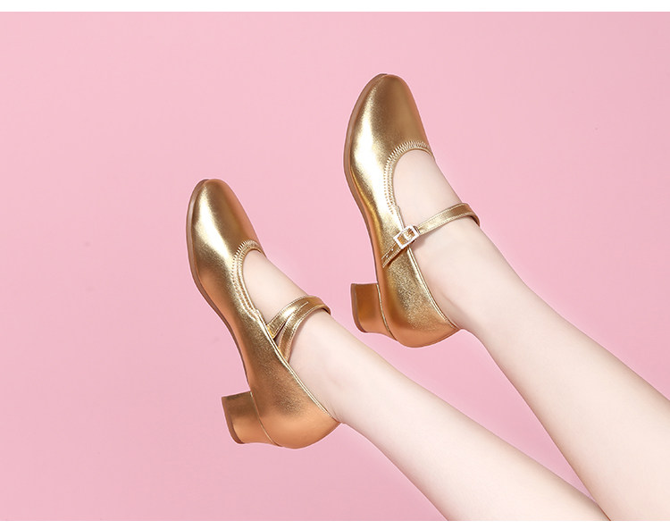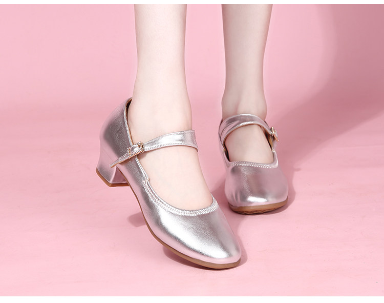 真皮四季牛筋底跳舞女鞋中跟软底广场舞夏天鞋跳舞单鞋银色演出鞋