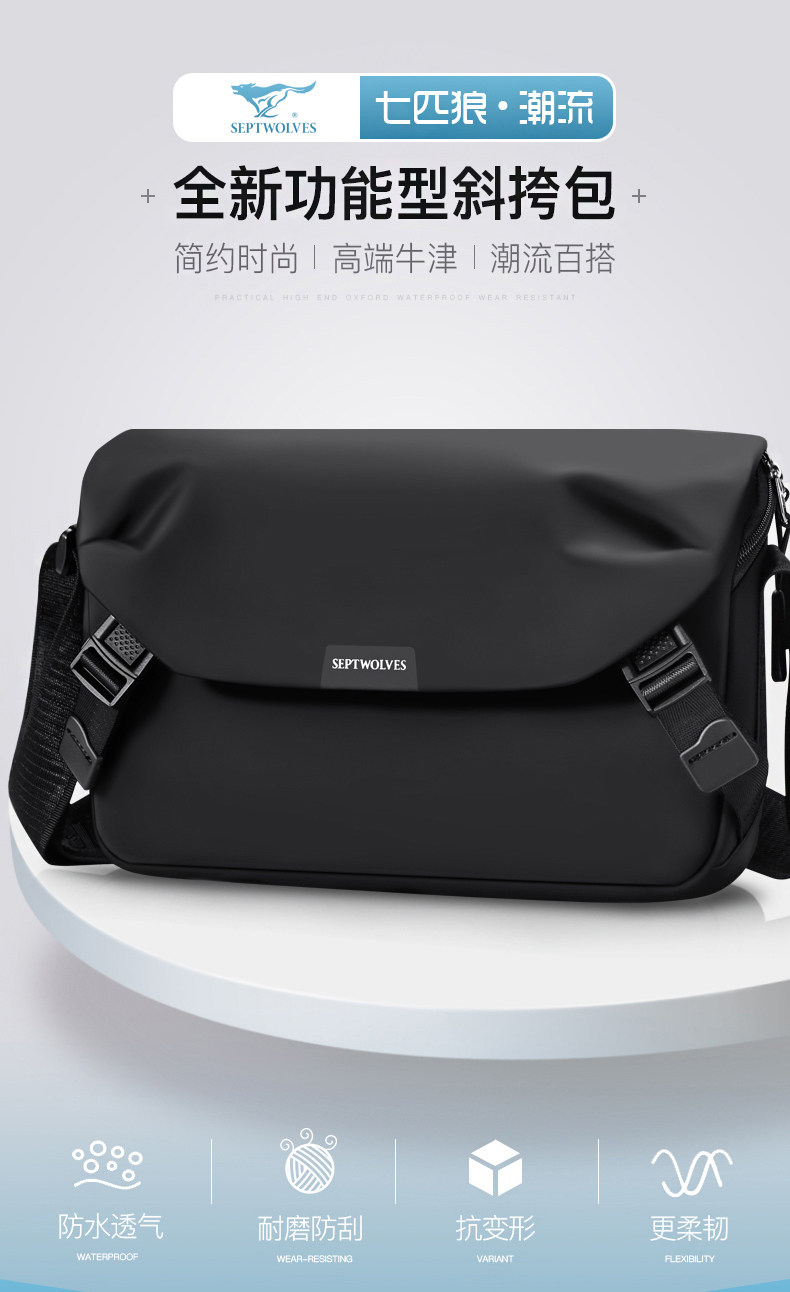 七匹狼斜挎包男款单肩包男士包包2025新款时尚男包邮差包骑行背包