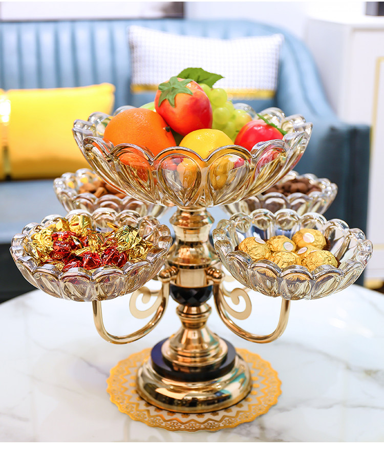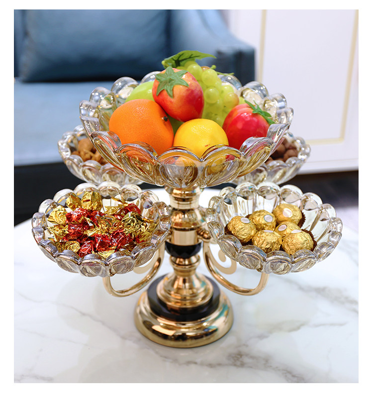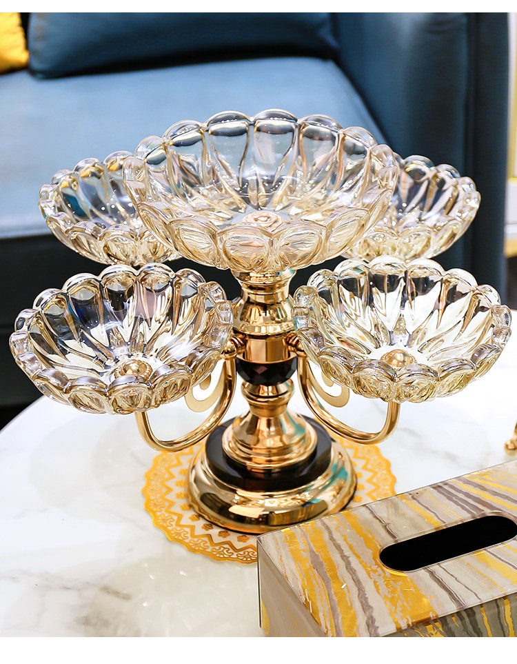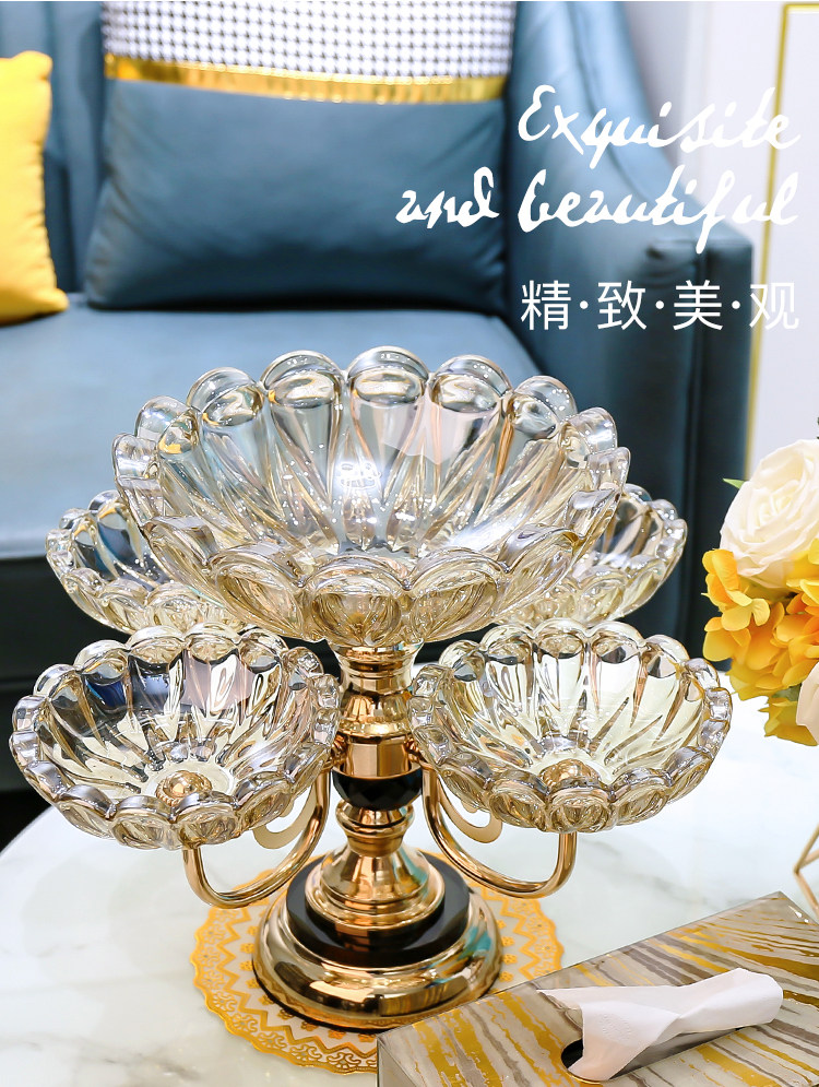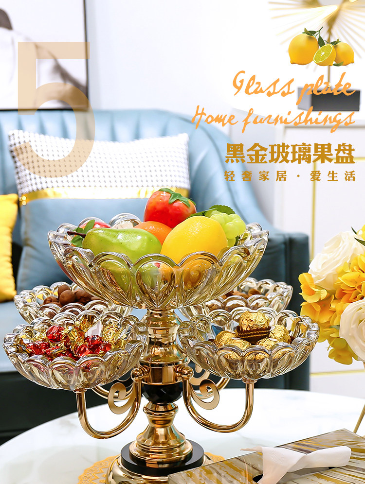 Plato de fruta de múltiples capas de vidrio simple y moderno, mesa de café para sala de estar en casa, bocadillos ligeros de lujo para celebridades de Internet, plato de frutas secas con tapa
