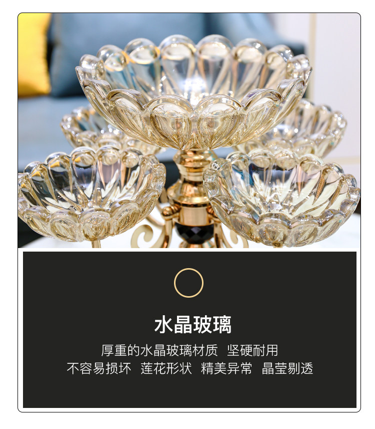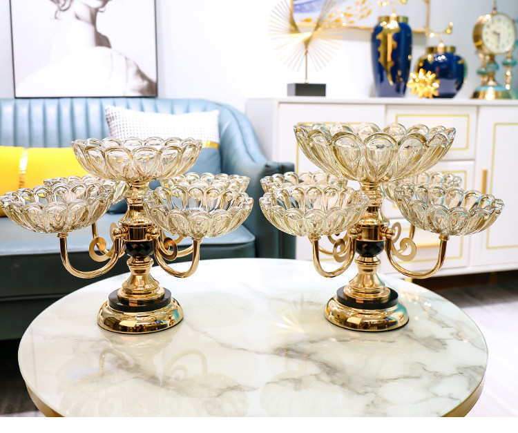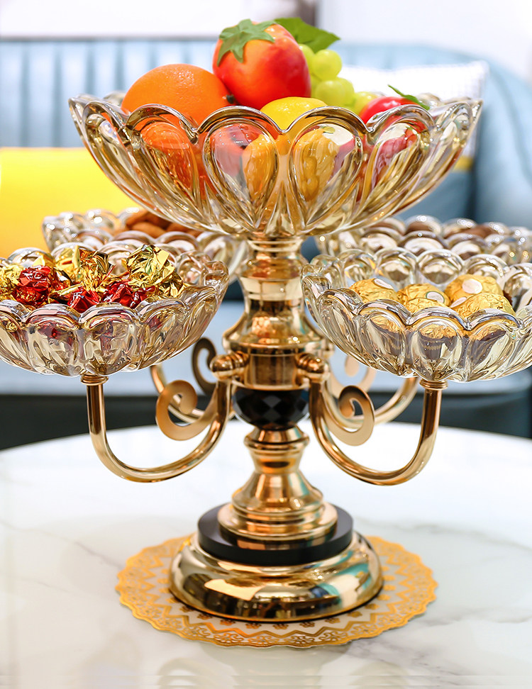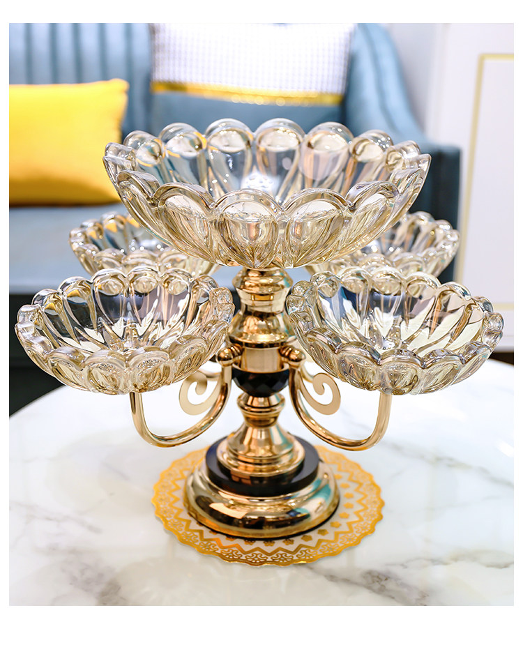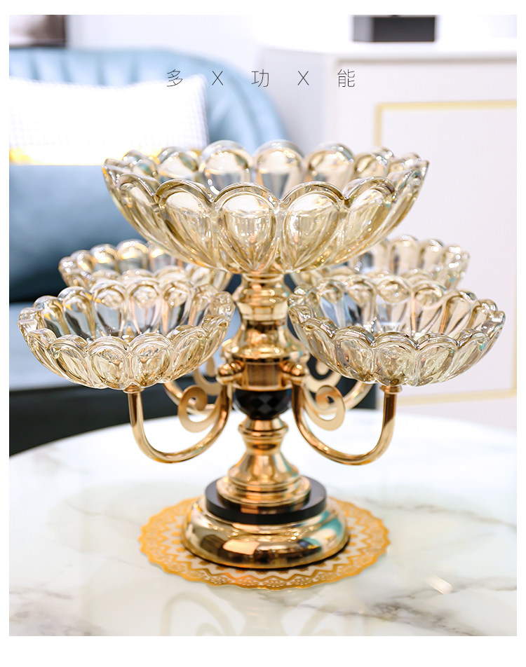Plato de fruta de múltiples capas de vidrio simple y moderno, mesa de café para sala de estar en casa, bocadillos ligeros de lujo para celebridades de Internet, plato de frutas secas con tapa