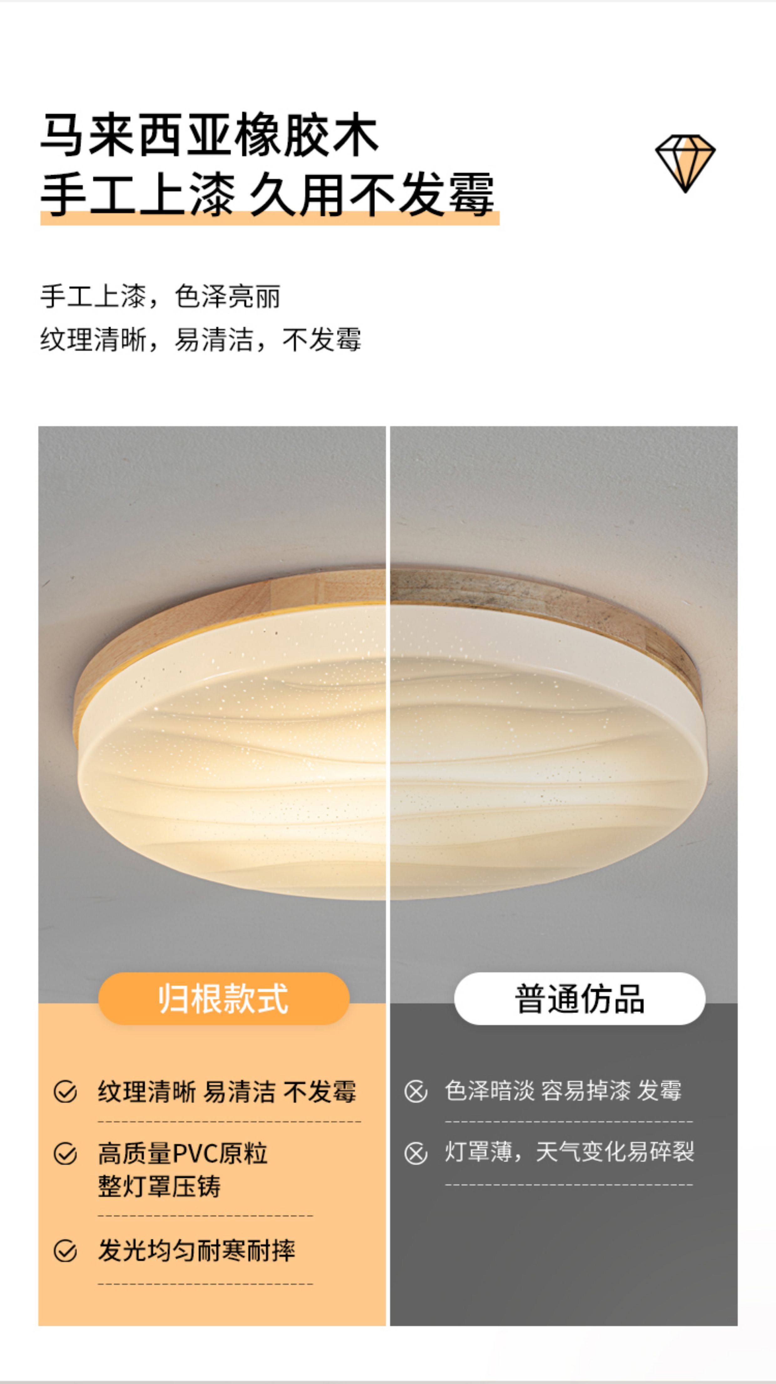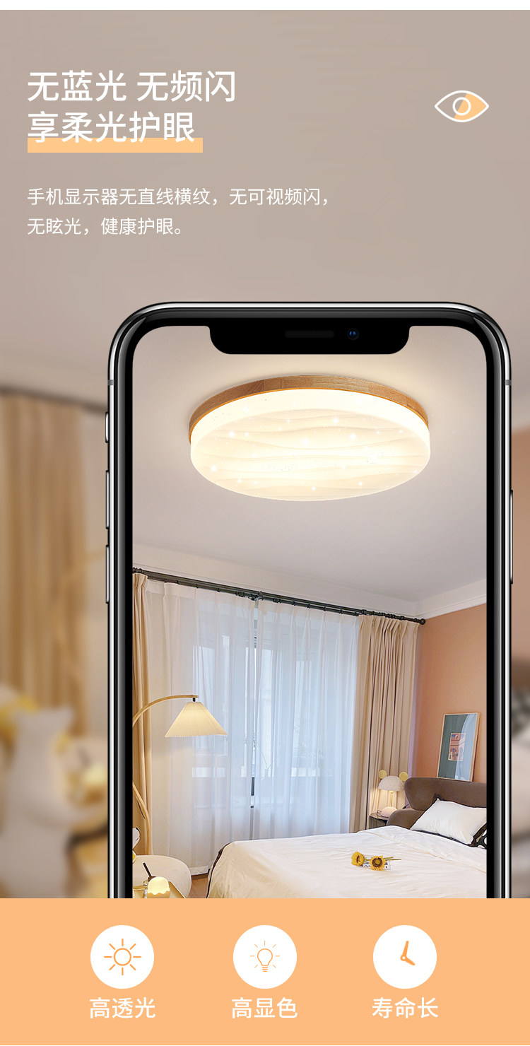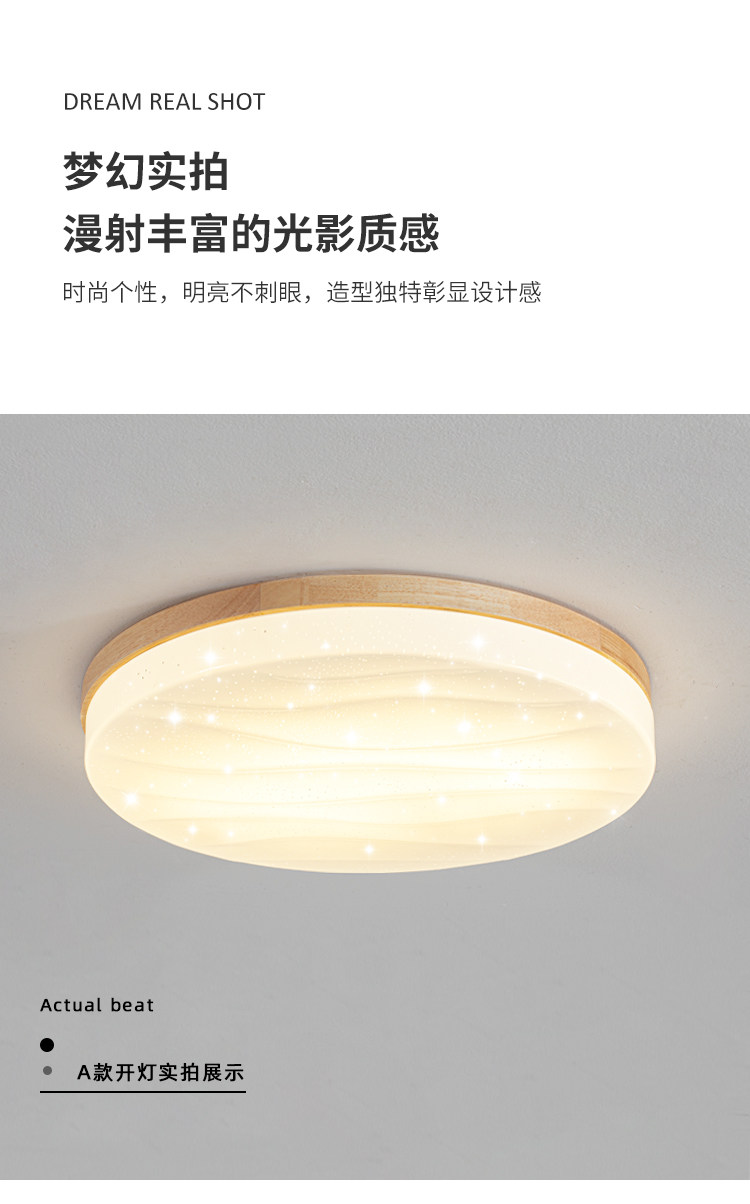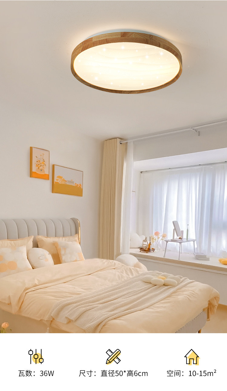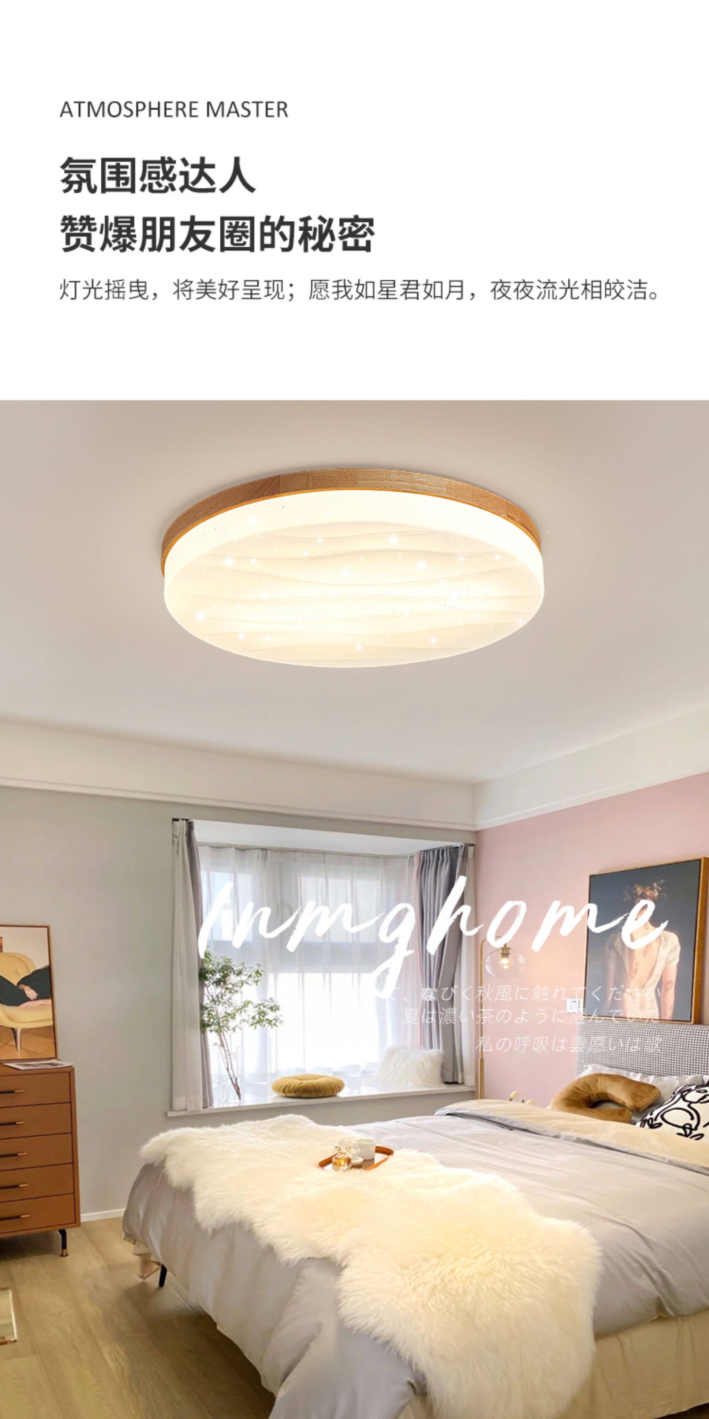 房间卧室灯主卧2026新款日式原木风奶油儿童房吸顶灯星空实木灯具