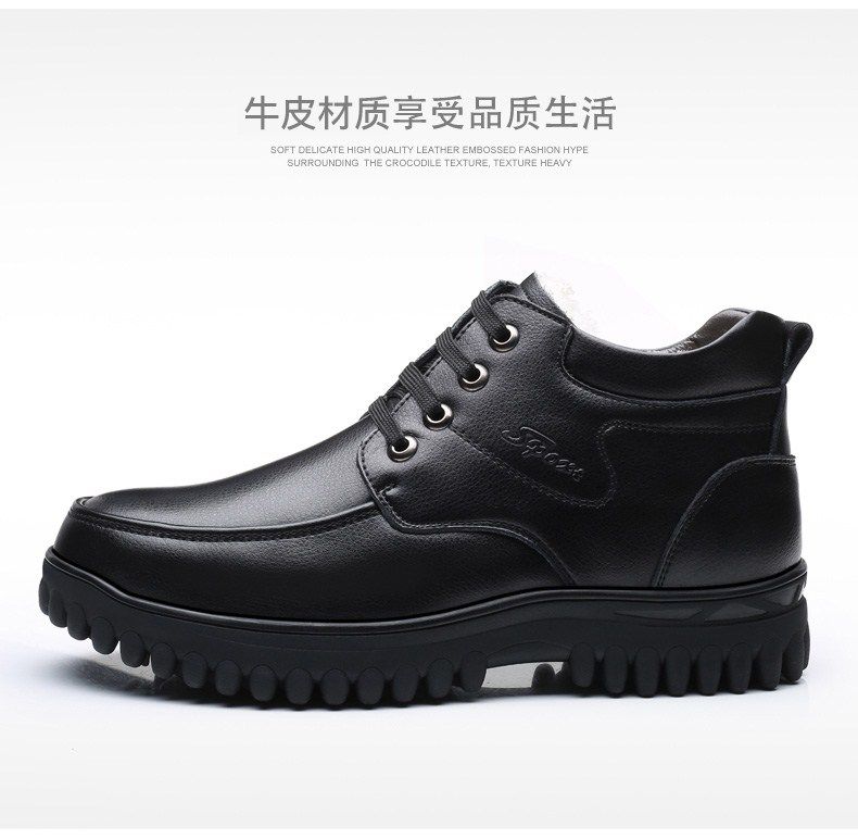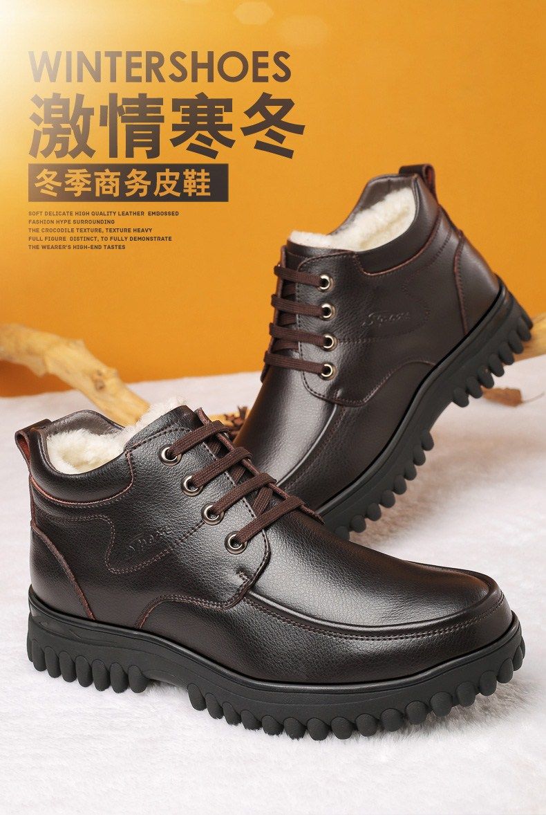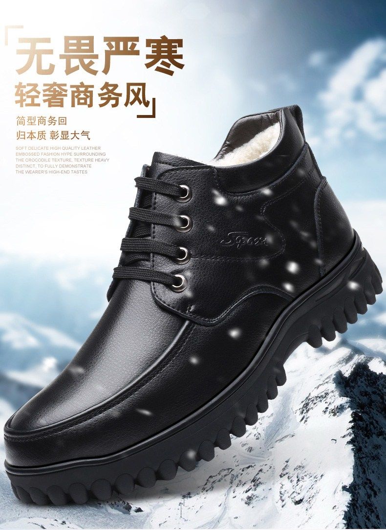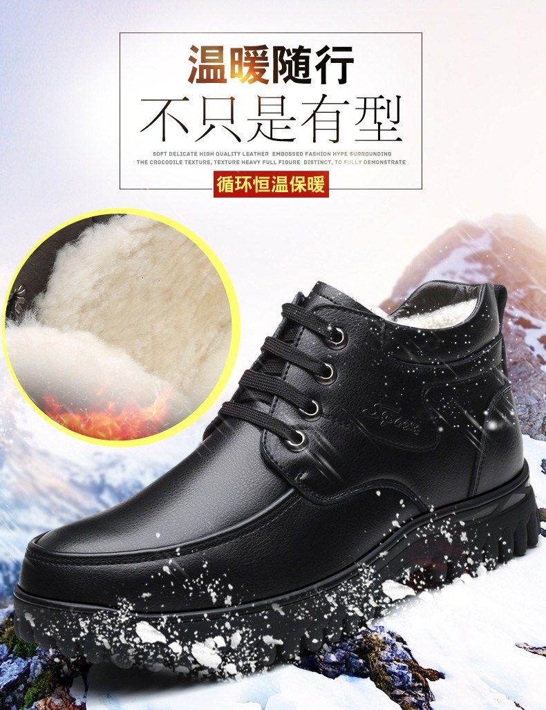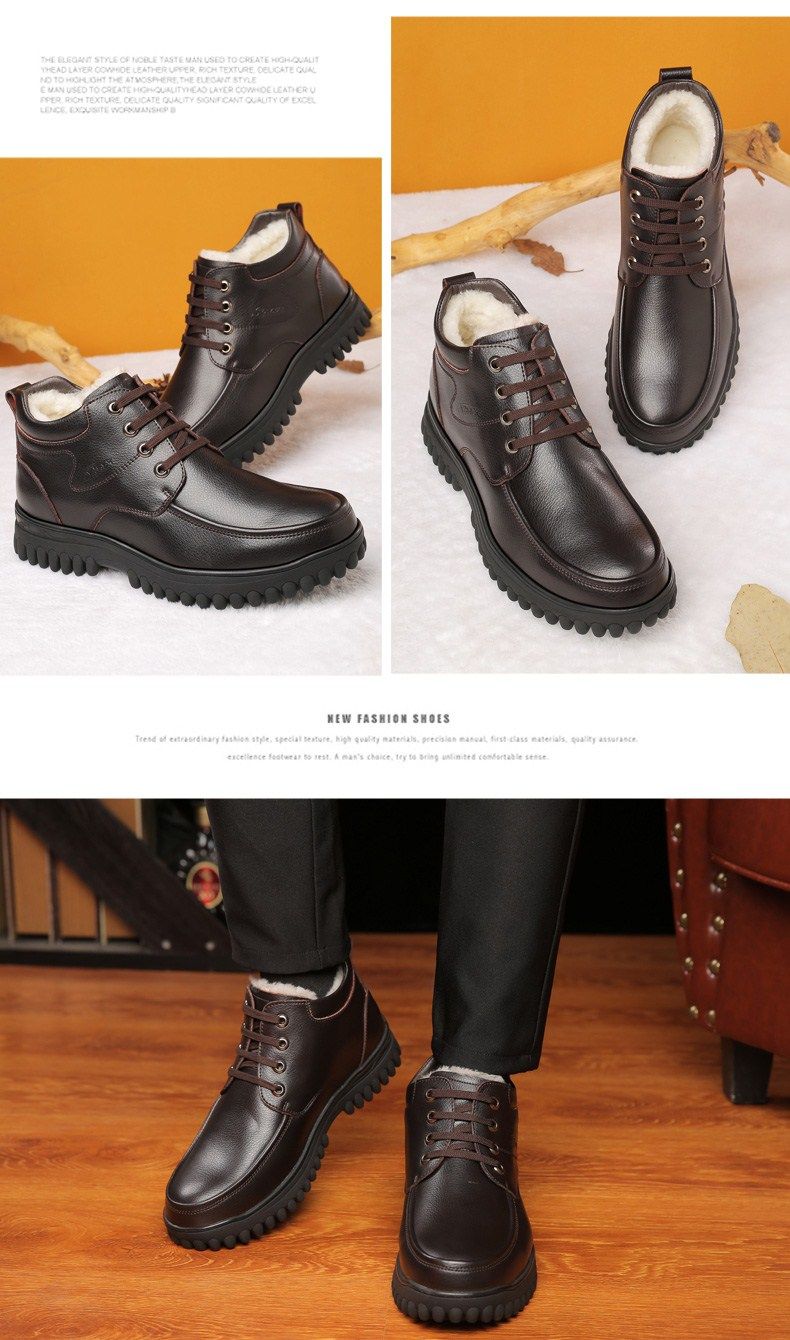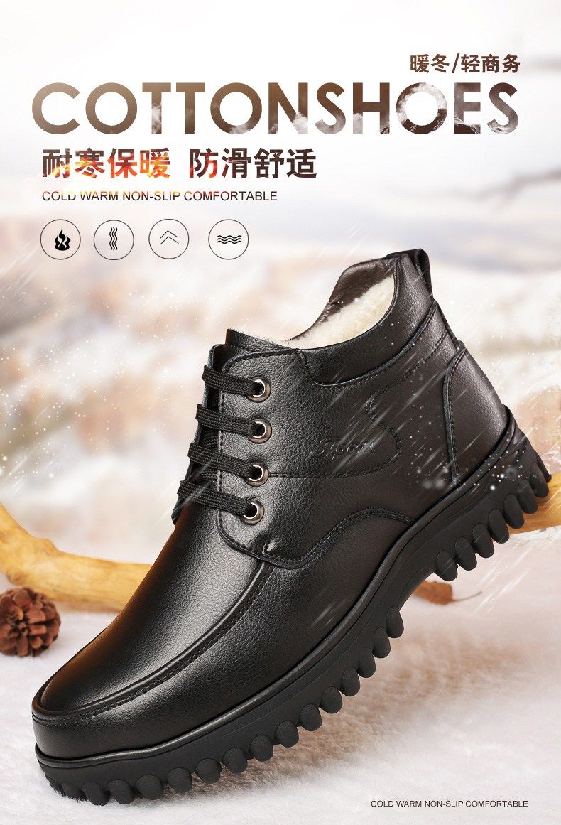 Мужские зимние хлопковые ботинки 2025 года с флисом и толстой шерстью для тепла, мужские кожаные ботинки для мужчин среднего возраста, нескользящие.